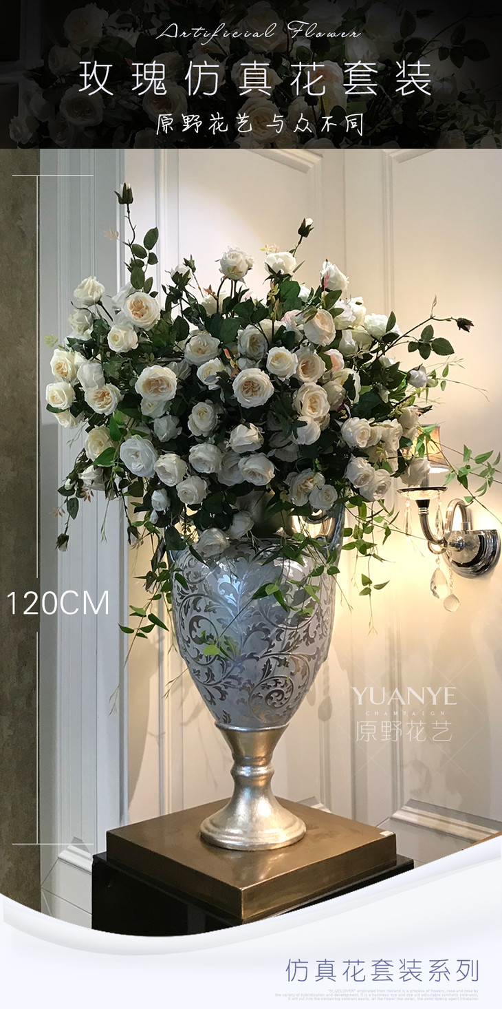 花瓶花艺罗马仿真花装饰花复古玫瑰落地式客厅欧式风格花器套装 玫瑰整体花艺套装
