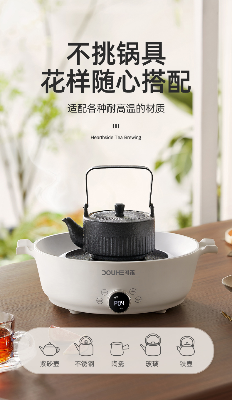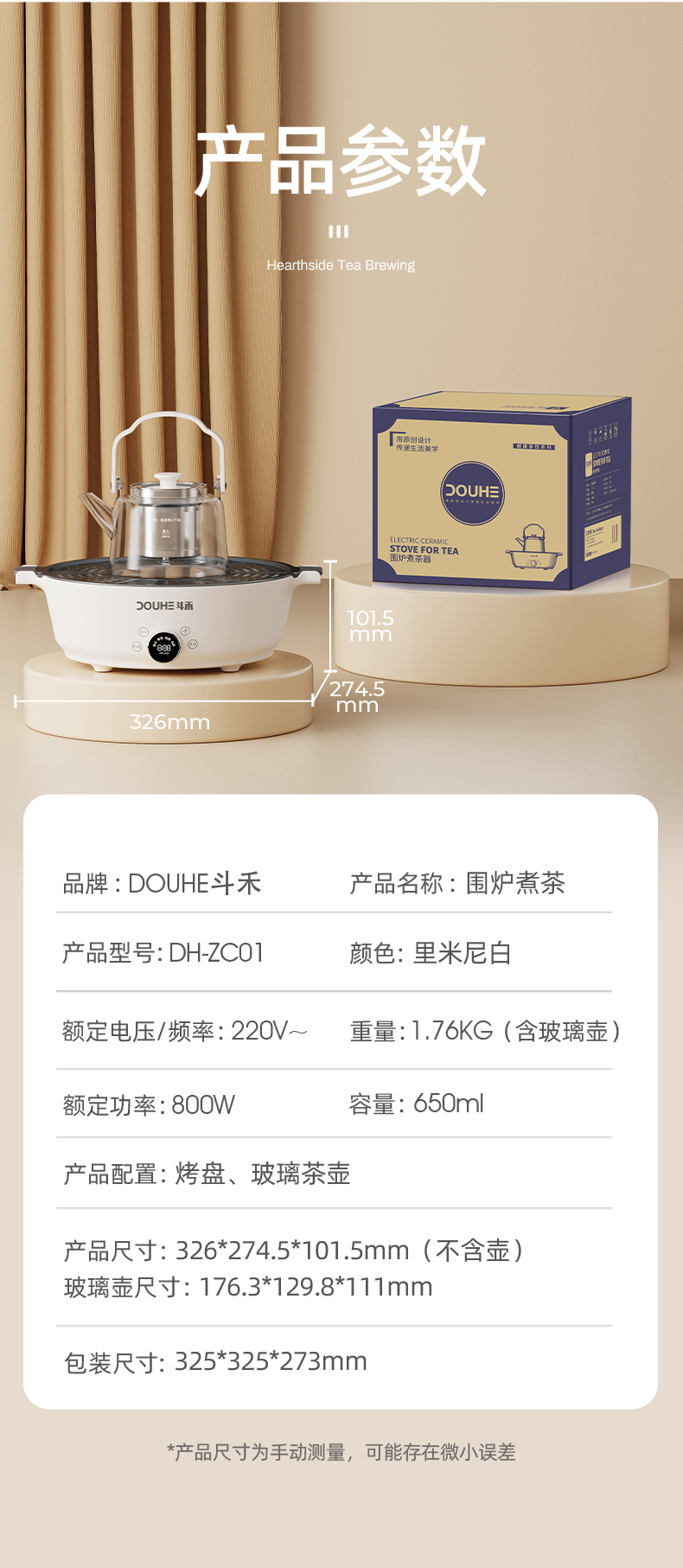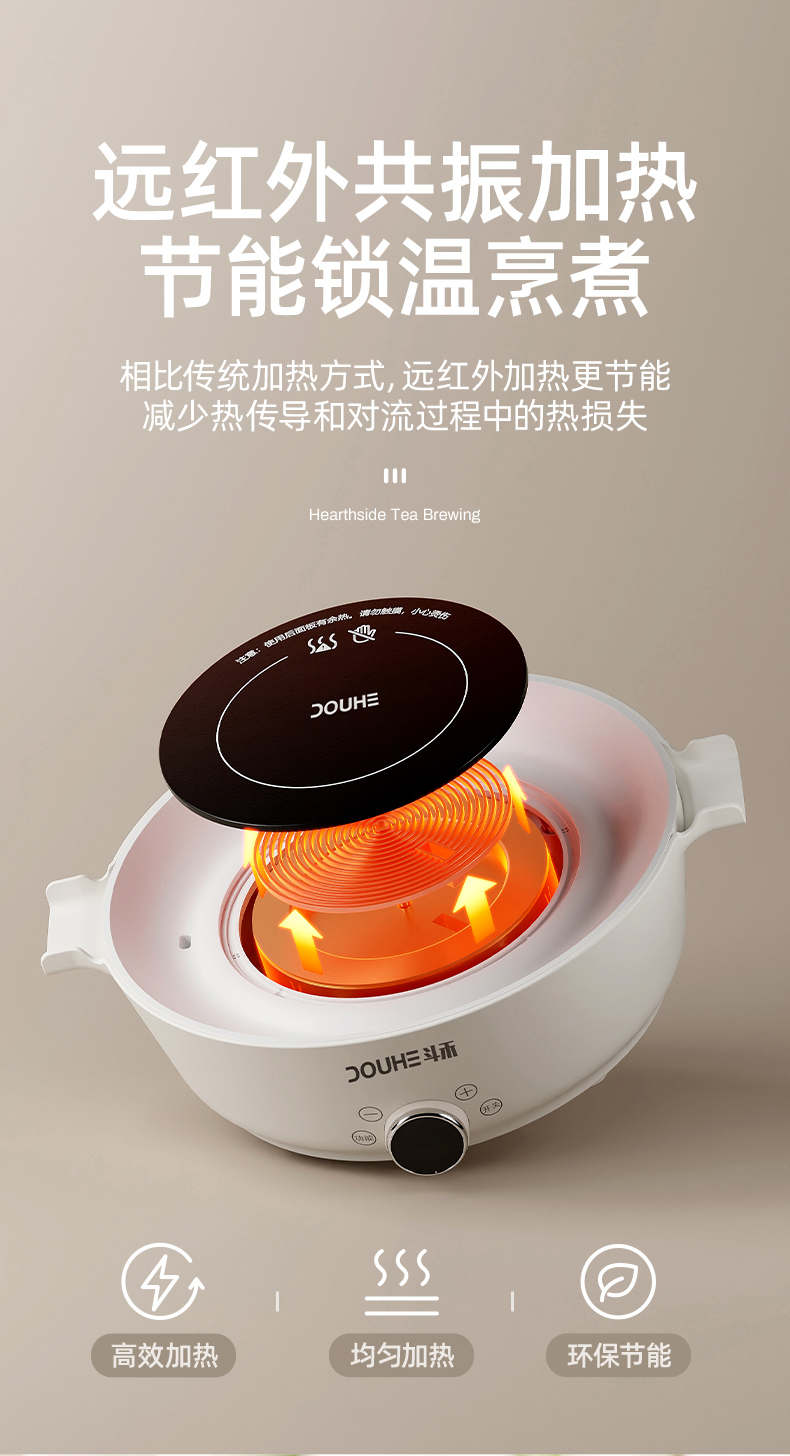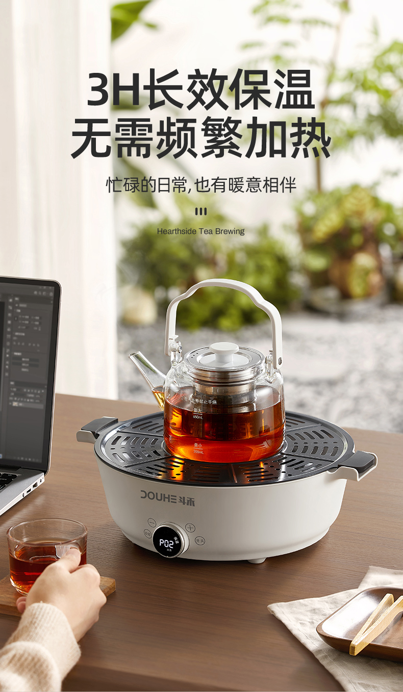[屁侠推荐]斗禾围炉煮茶器DH-ZC01 无烟煮茶烤果 远红外加热 27cm烤盘可煮可烤 不挑器具含650ml玻璃壶 3H长效保温
