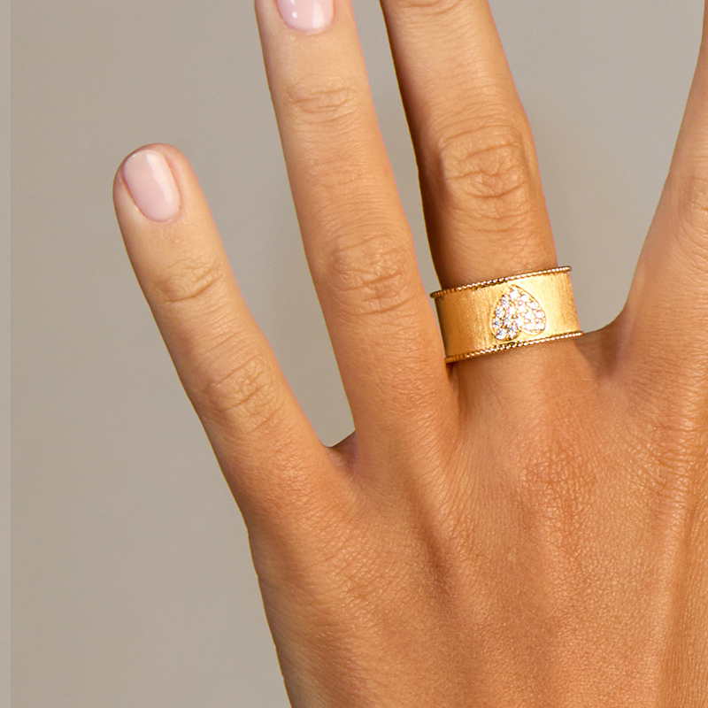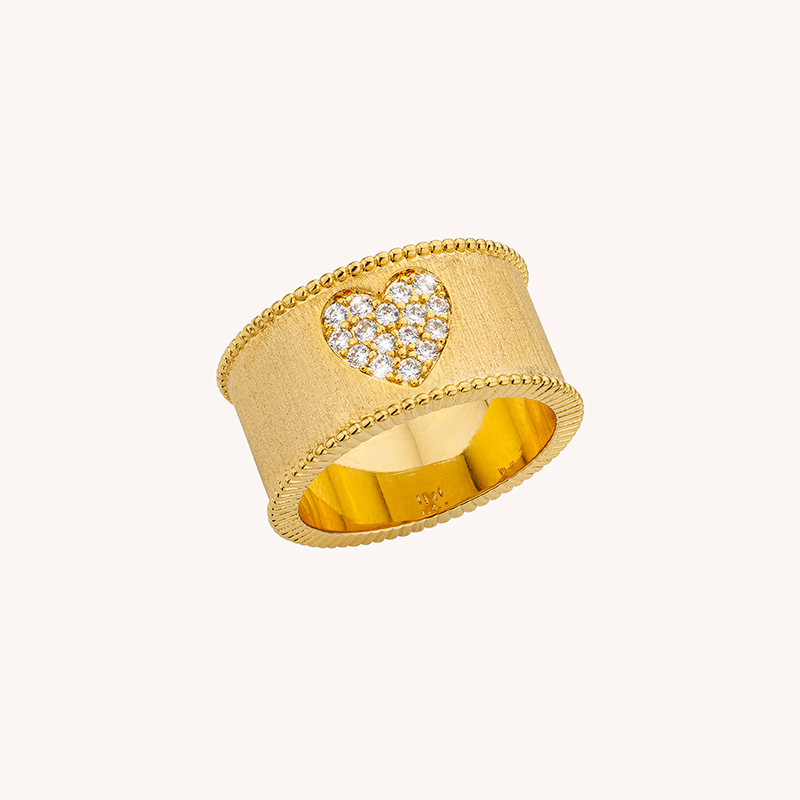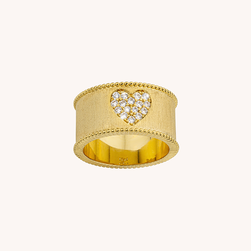 北京仓|MYA-BAY-HEART CROWN-金色 宽面 心形 锆石 戒指[比利时设计师]