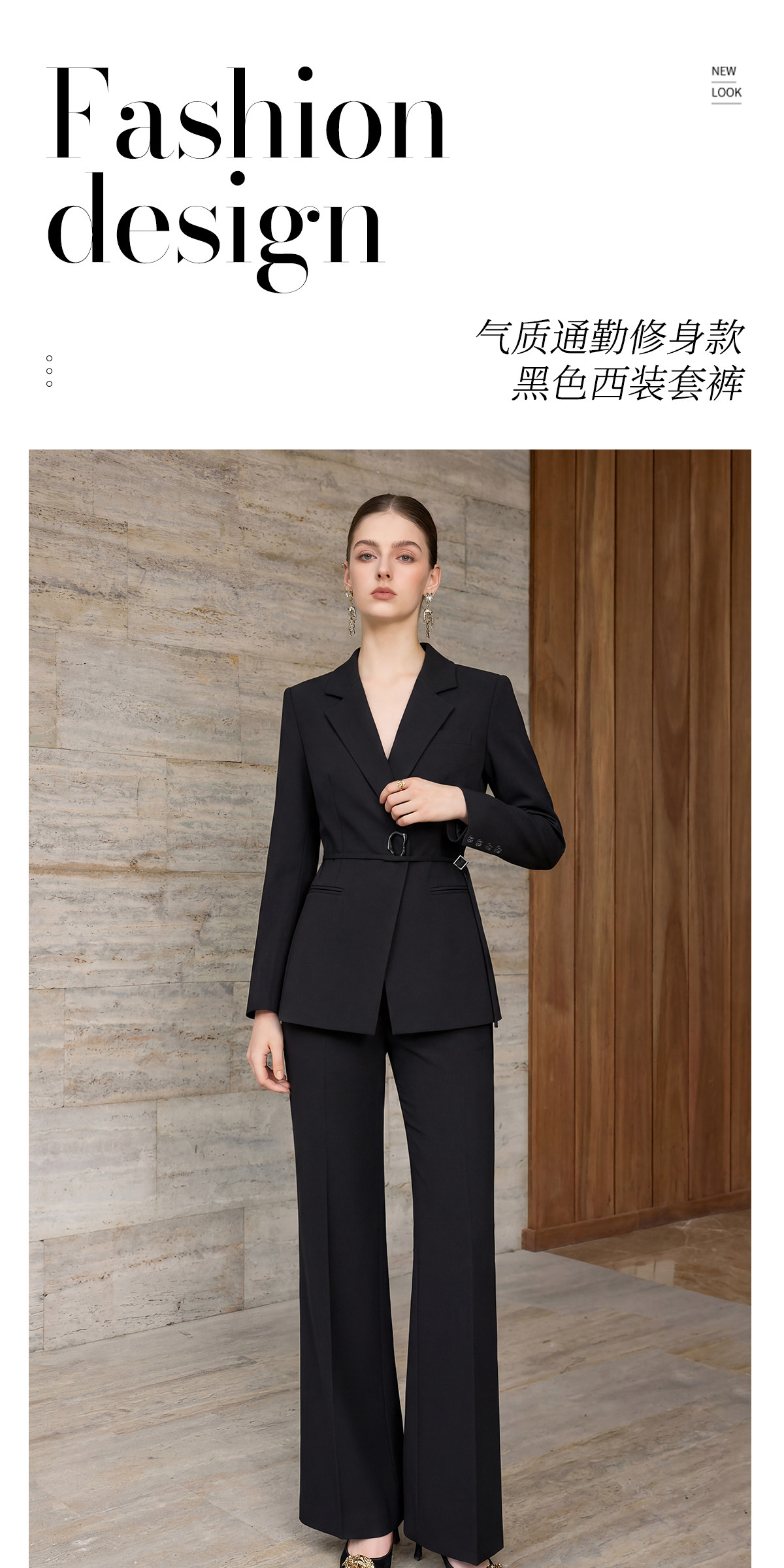 艾尚臣黑色西装套装女商务风修身长袖西服两件套高级感通勤正装春