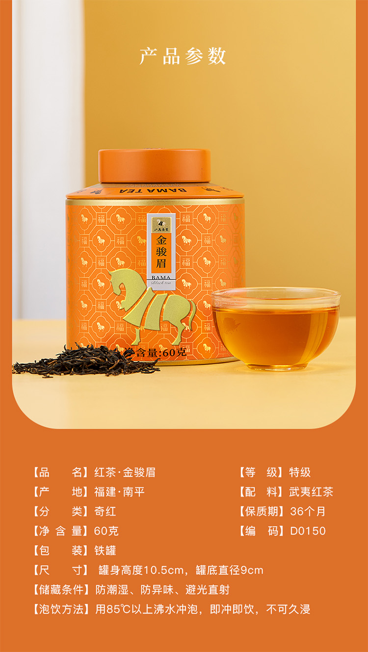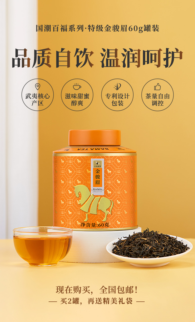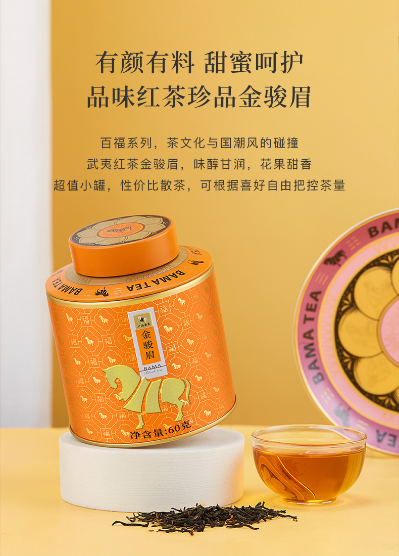 【99元任选2罐】八马茶叶丨 武夷特级金骏眉红茶百福1号罐红茶自饮装60g