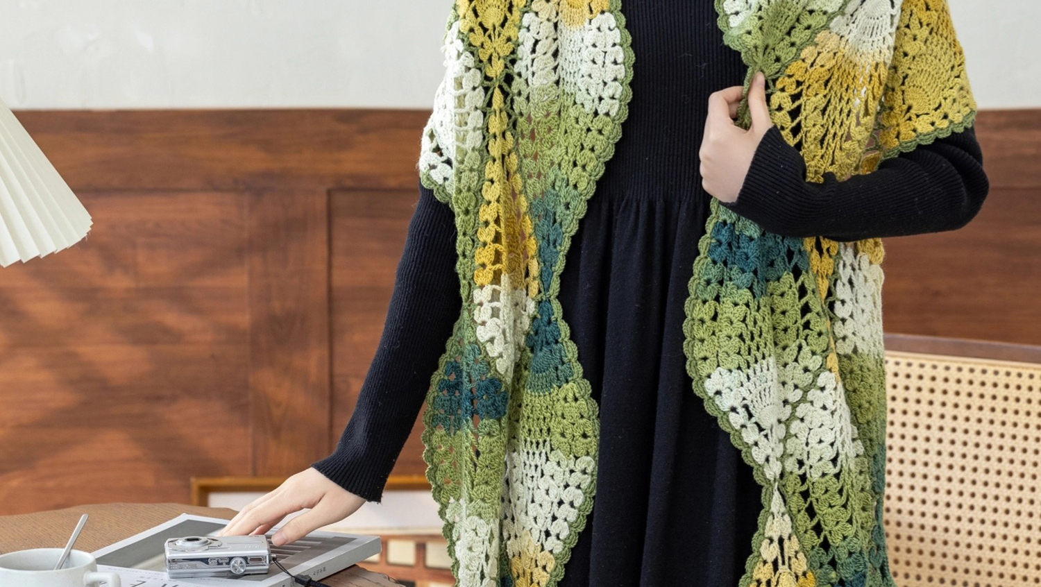苏苏姐家菠菠披肩手工diy钩针编织段染羊毛线毛线团材料包