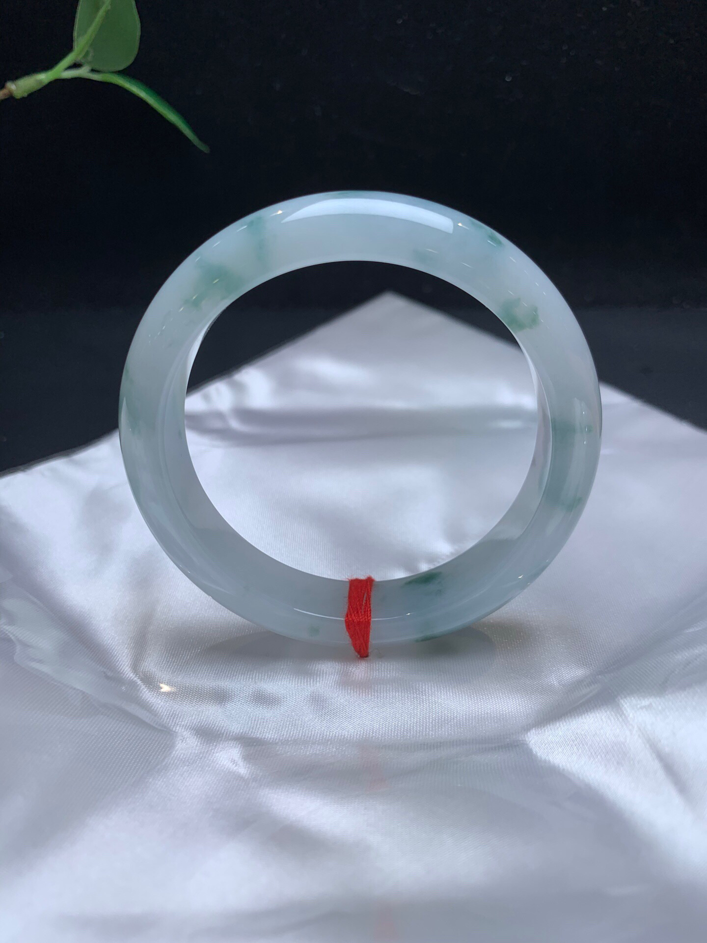612816,54.8细糯飘花手镯,12.6-8mm,整体干净秀气,飘清新灵动蓝花,完美的,超值价💰17900 #优石客珠宝#香玉荟萃