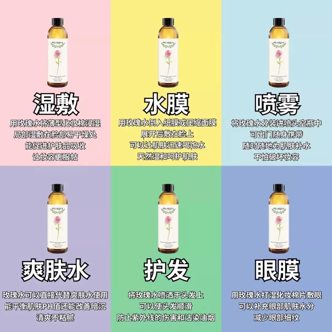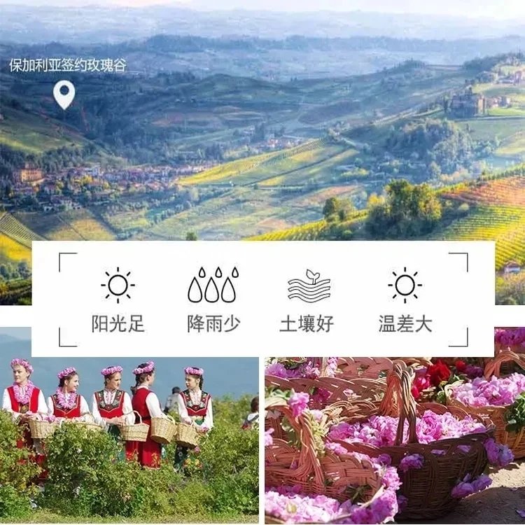 采用传统古法蒸馏,凝练出高浓度玫瑰精华,快速渗透至肌肤,清爽吸收。