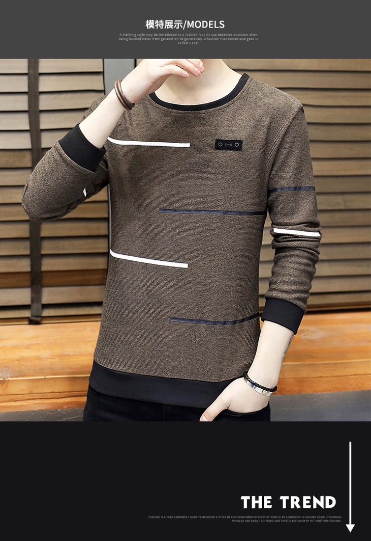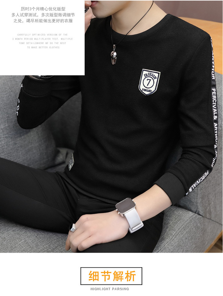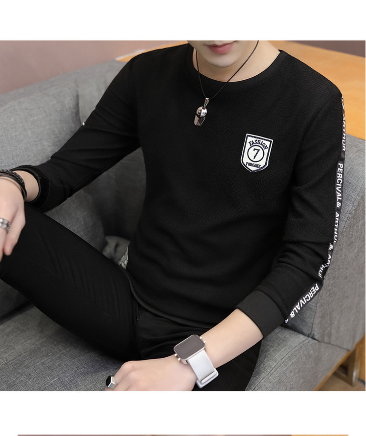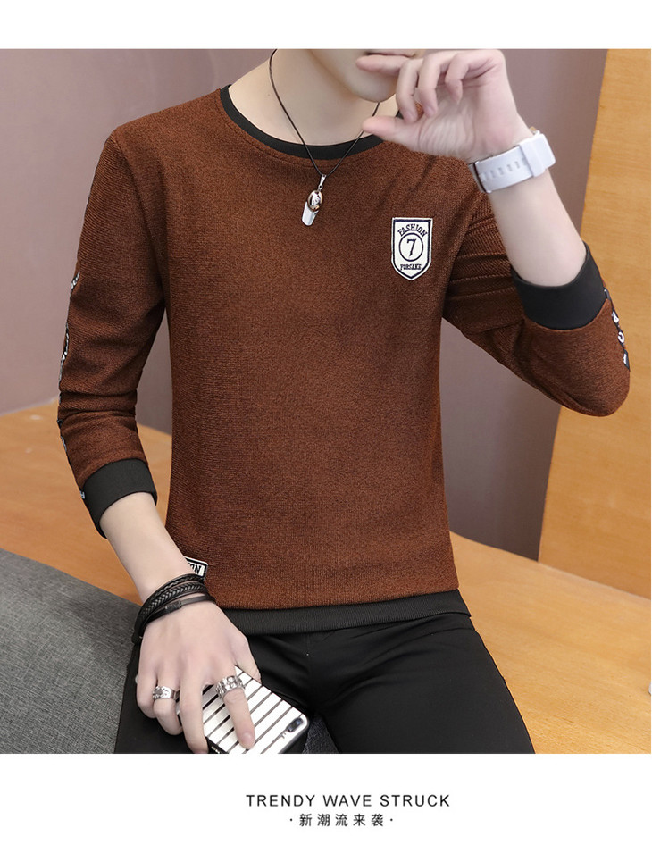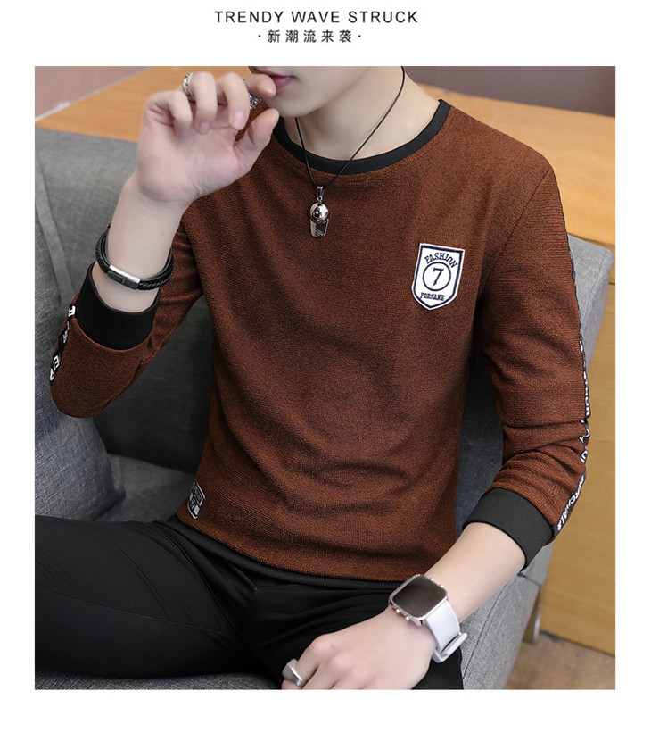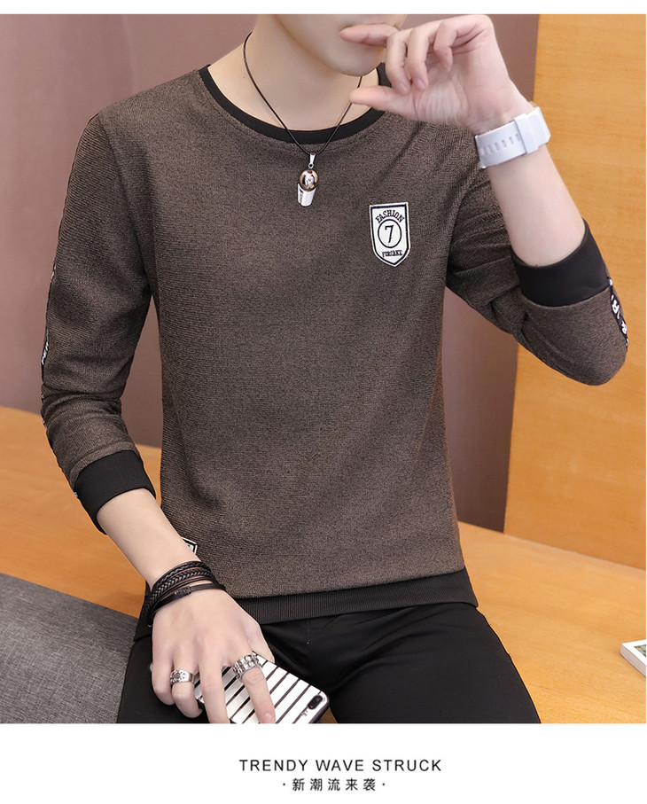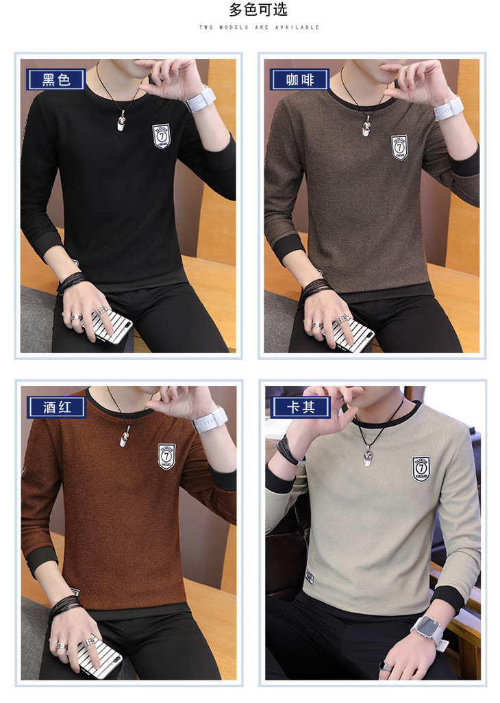 【卫衣男】秋季男式长袖t恤新款韩版圆领休闲卫衣男修身打底衣男装潮