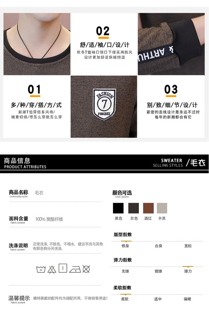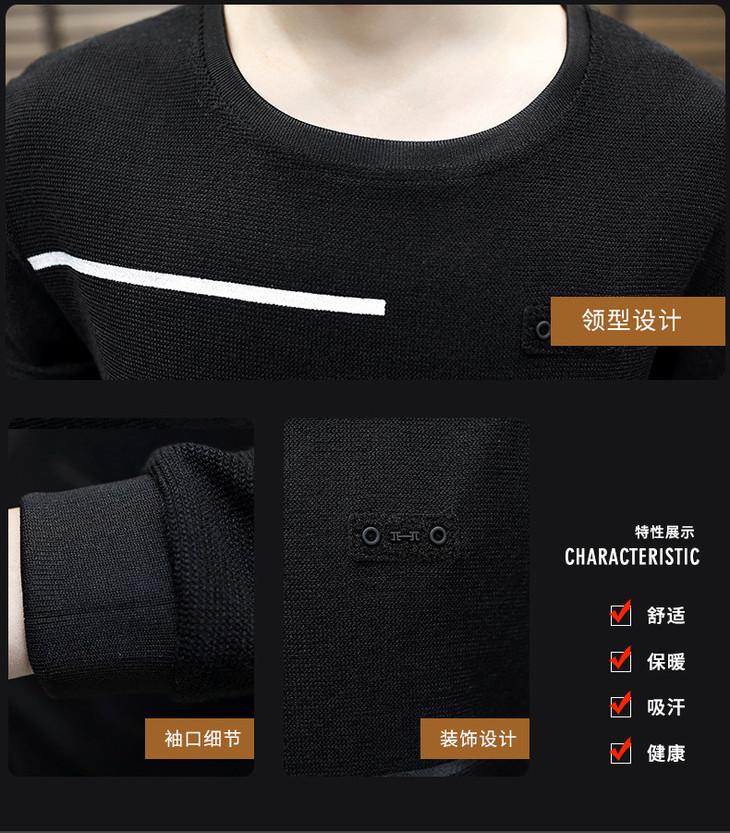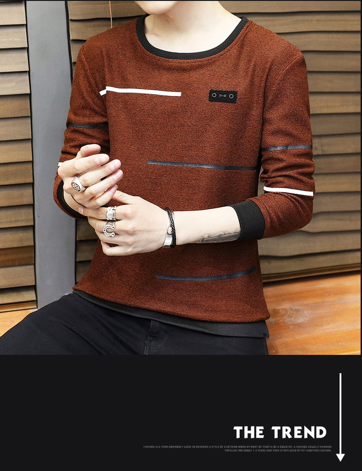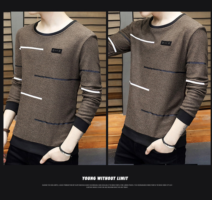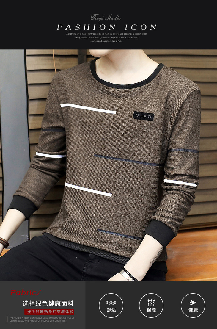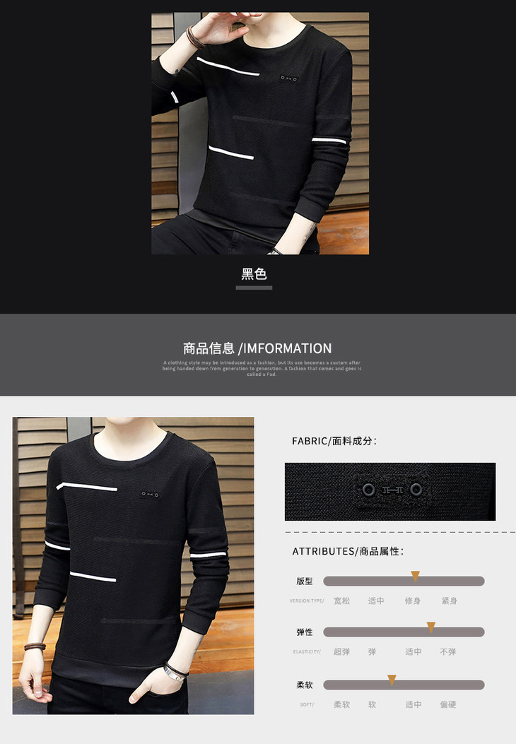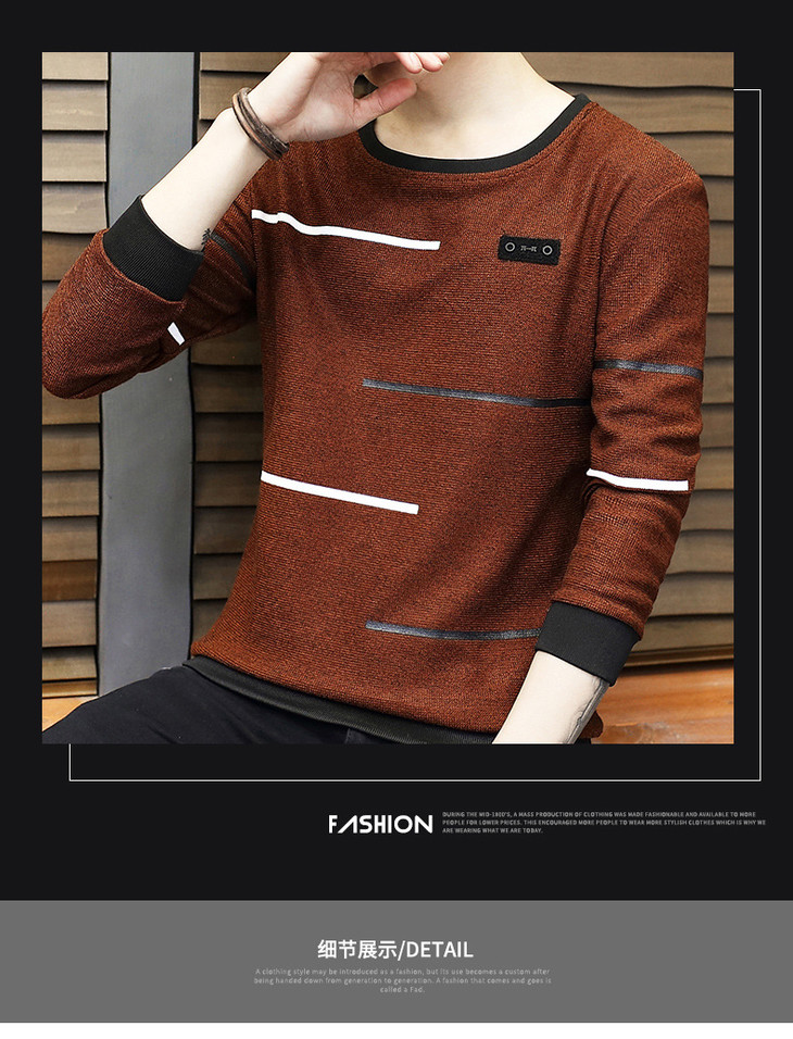 【卫衣男】秋季男式长袖t恤新款韩版圆领休闲卫衣男修身打底衣男装潮