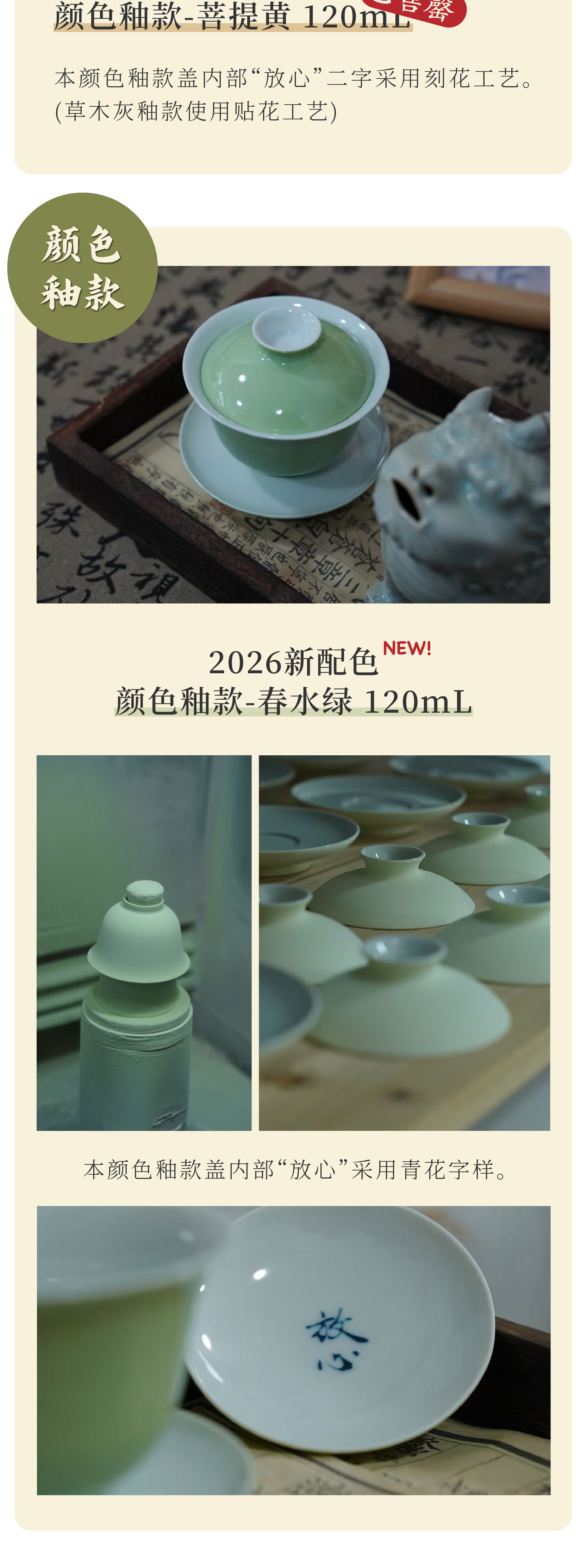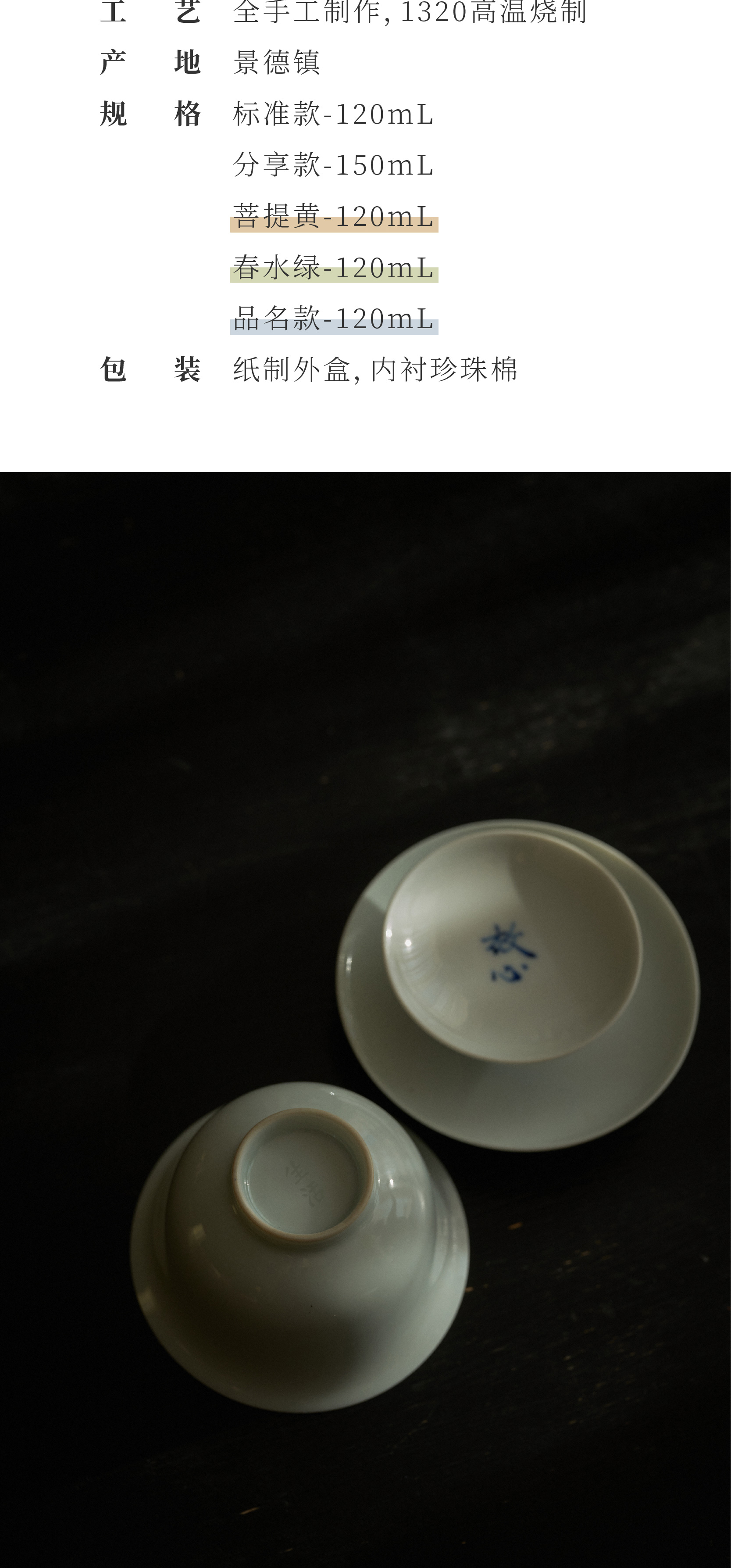 季节限定「春水绿色釉款」放心盖碗 · 专为泡茶定制的盖碗(120ml/150ml)景德镇手工制三才盖碗(三联出品)