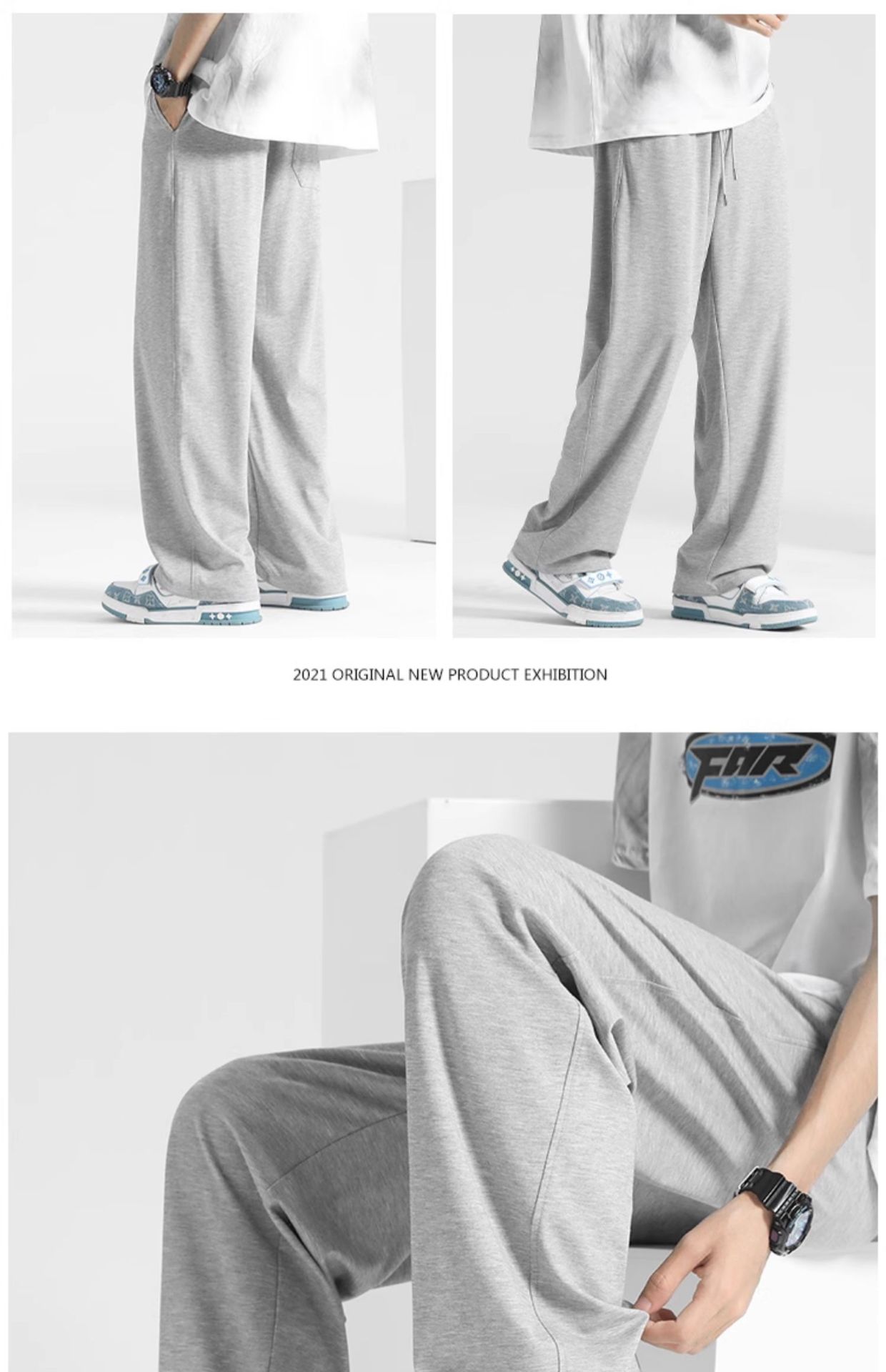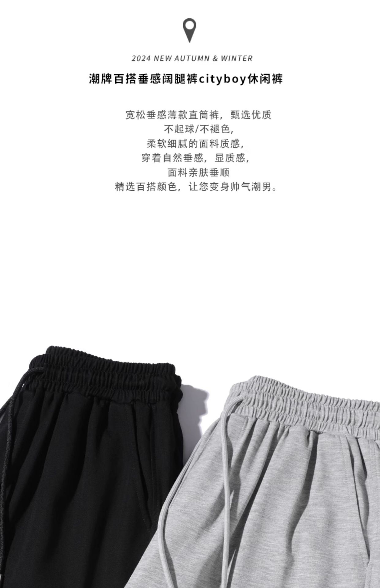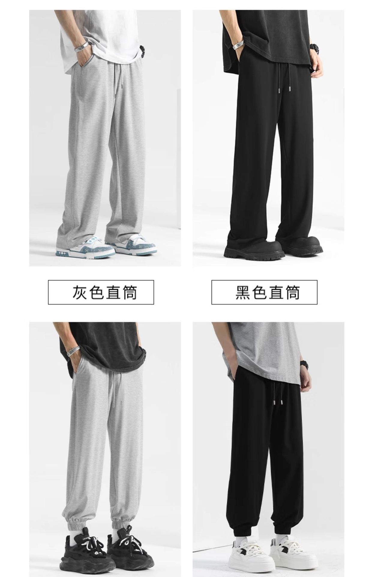 春季垂感裤子男春秋男士直筒休闲长裤宽松阔腿男裤运动裤卫裤