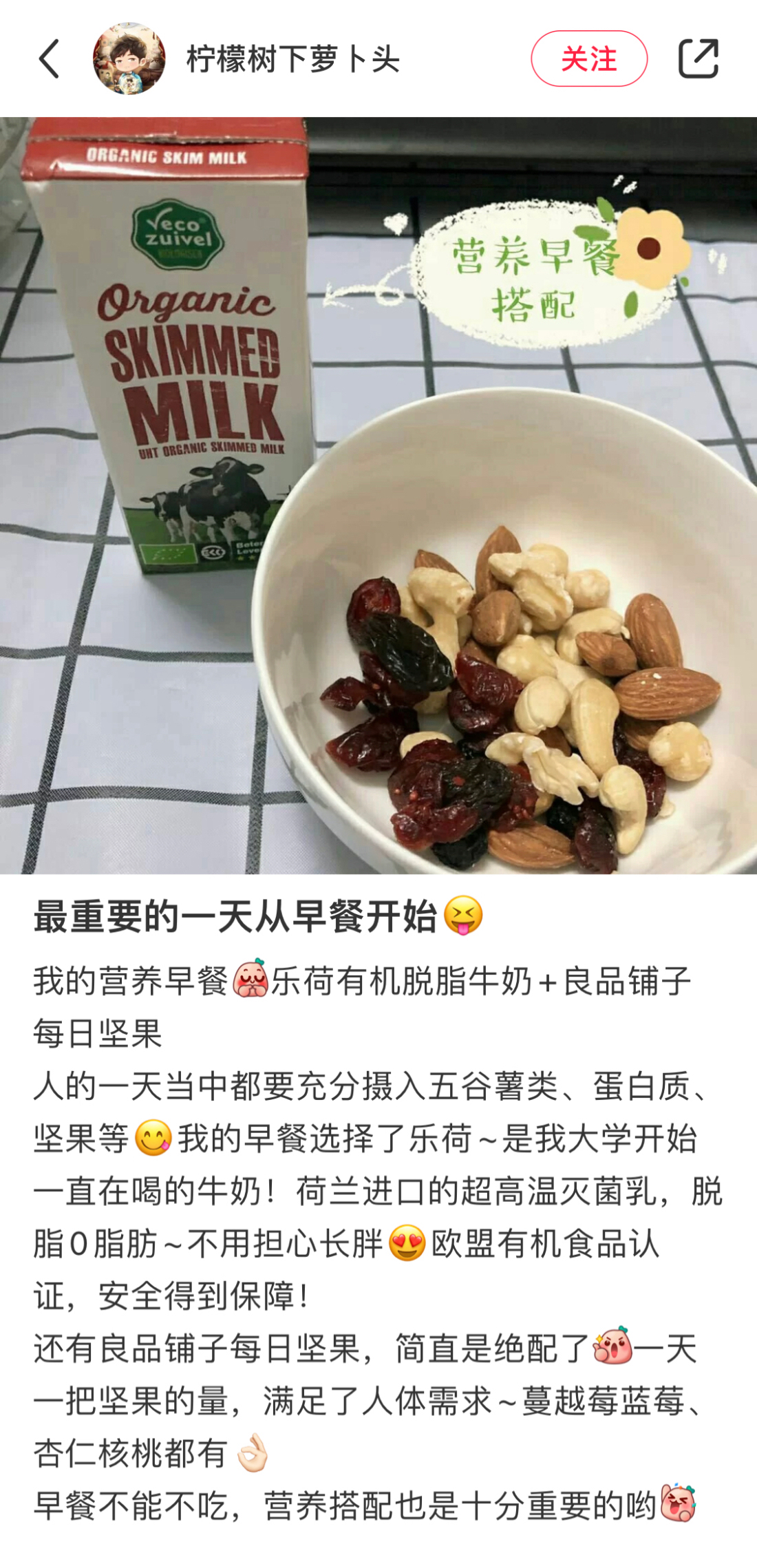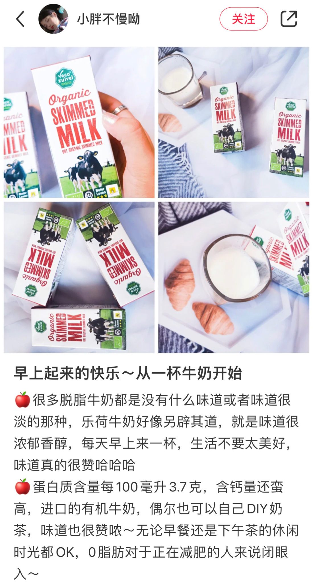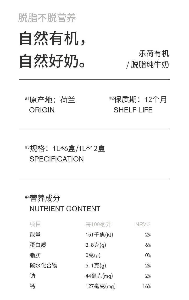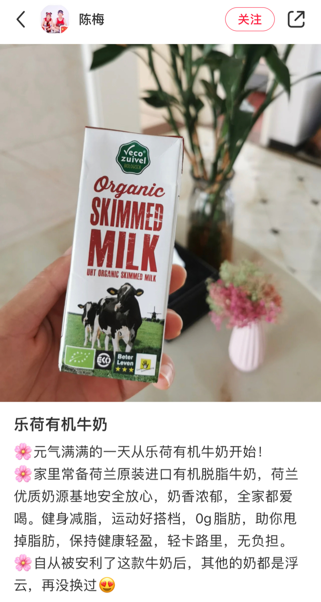 自从上了百菲酪,我几乎就没喝过普通牛奶了,所以一直也没再选新的。上周囤乐荷黄油的时候,品牌方按头推荐了他们家的有机脱脂奶,是产自google地图上都能看见的乐荷开放牧场,真有机,真0脂,真进口的荷兰牛奶!本着对乐荷黄油的爱,就也来上一上!特别适合减脂期喝喝!
