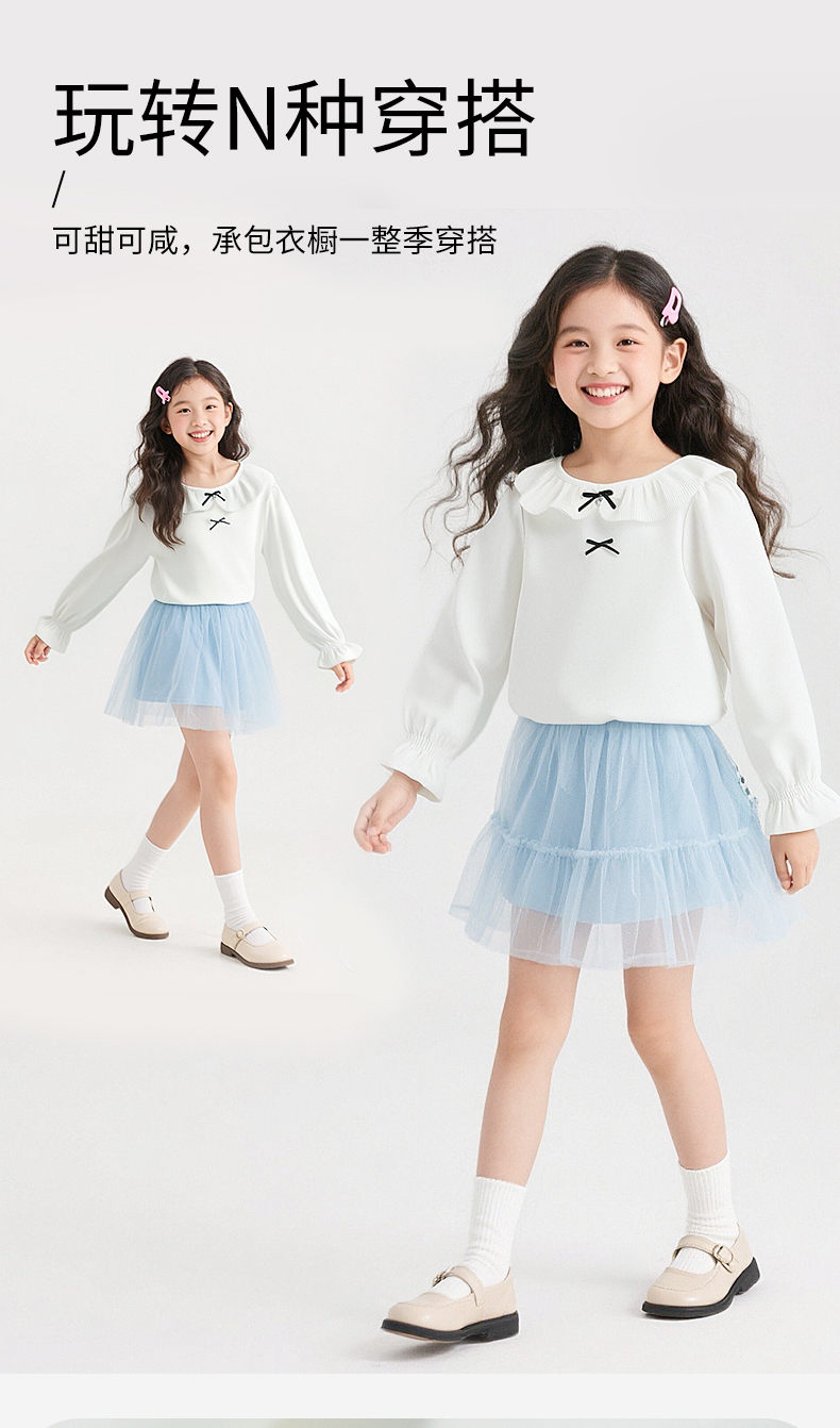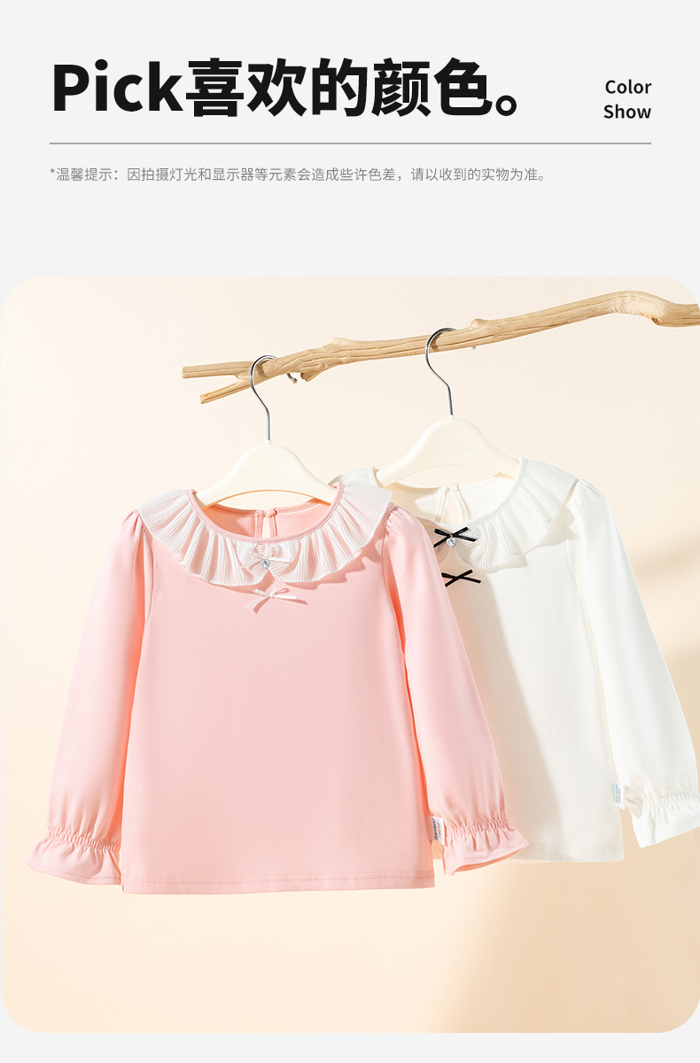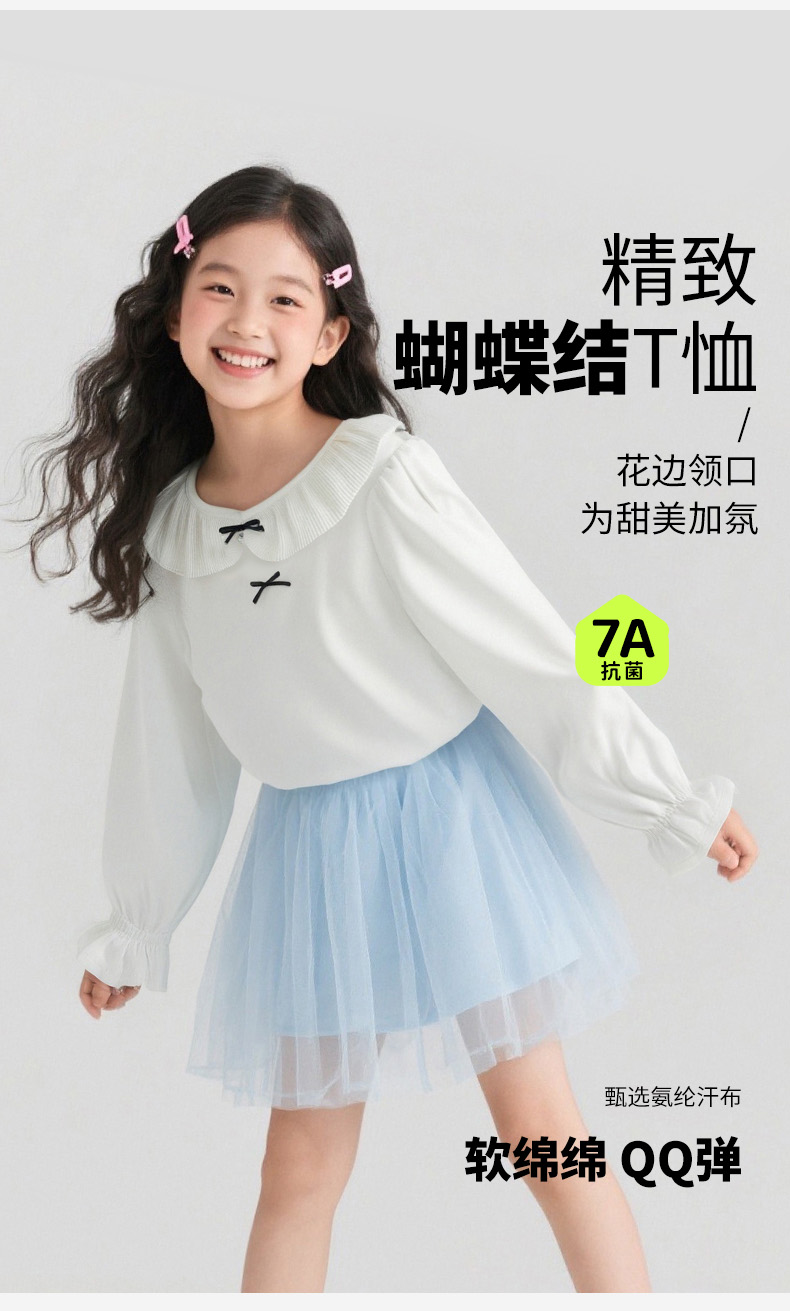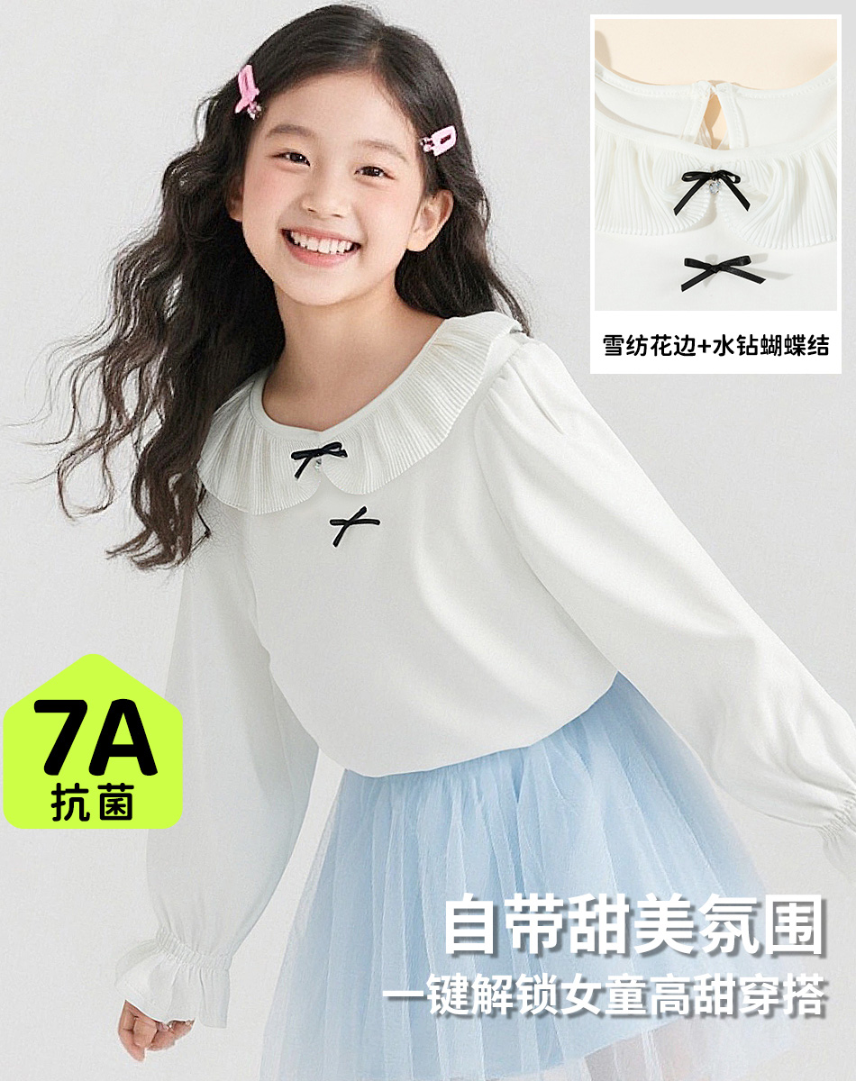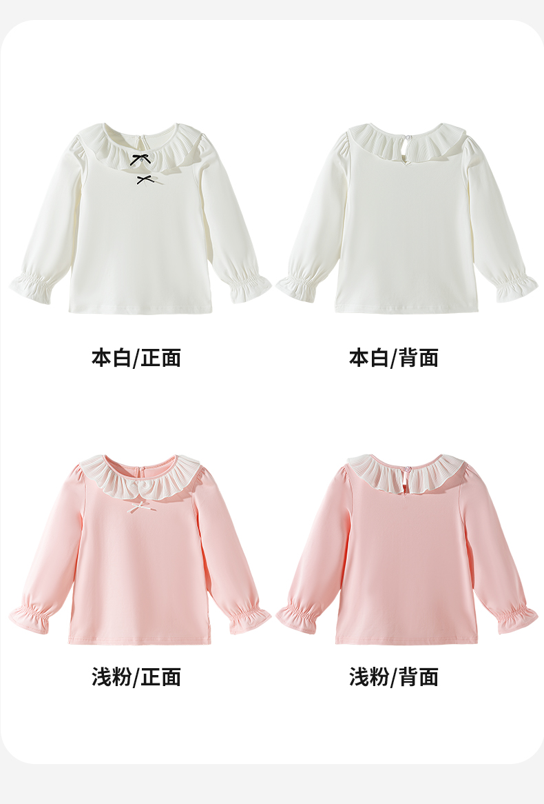 贝贝怡2025年春秋新款女童娃娃领T恤棉弹舒适泡泡袖甜美打底上衣ZB3ES026