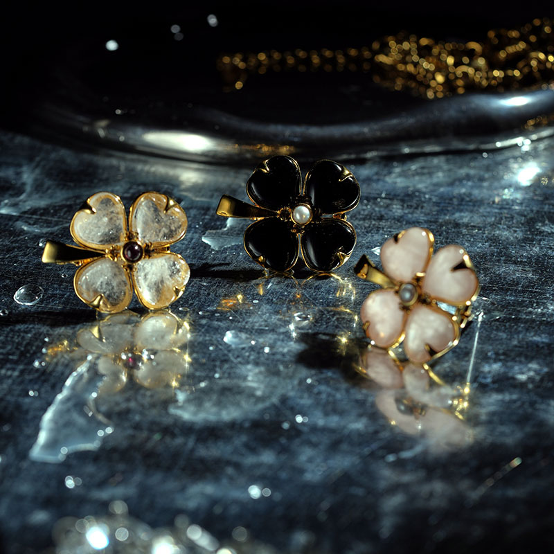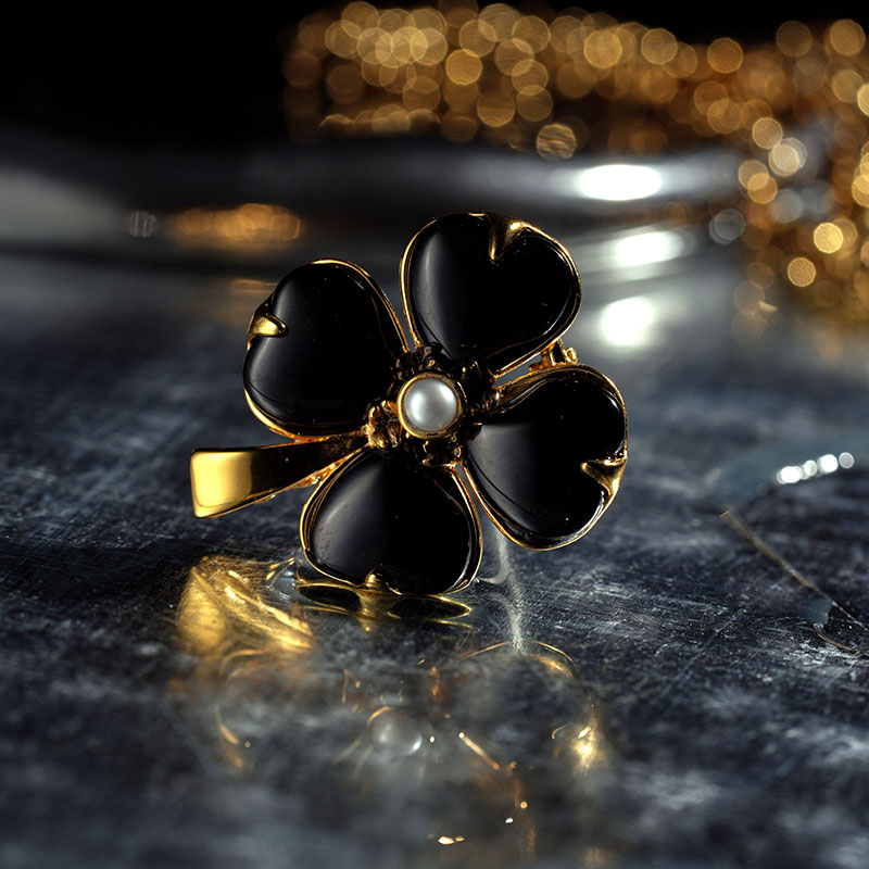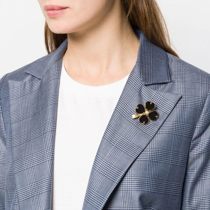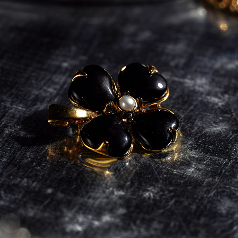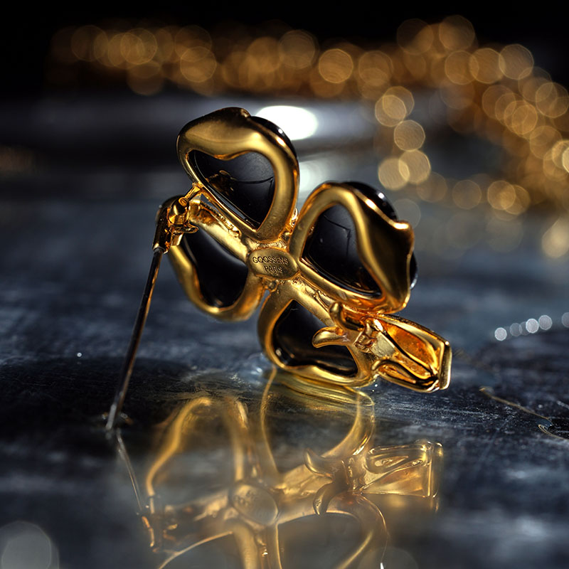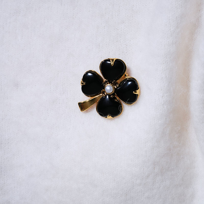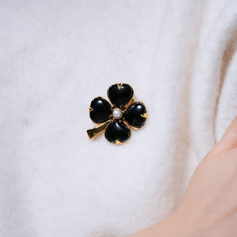 北京仓|Goossens Paris-Trefle-天然黑色玛瑙 珍珠 胸针[法国设计师]