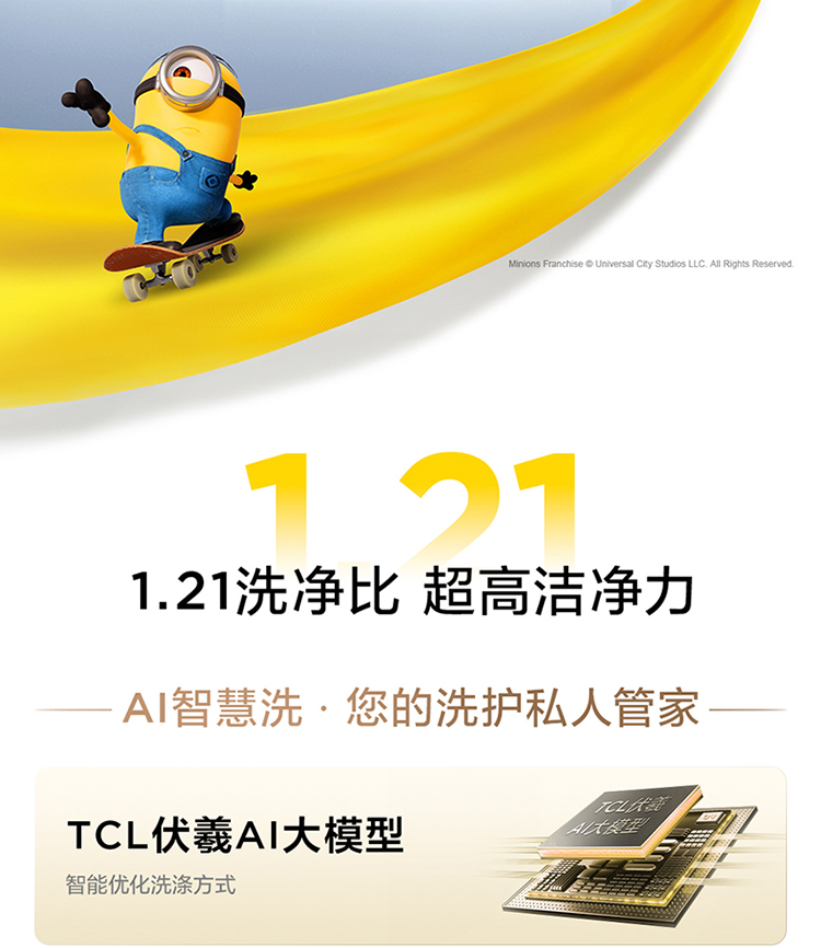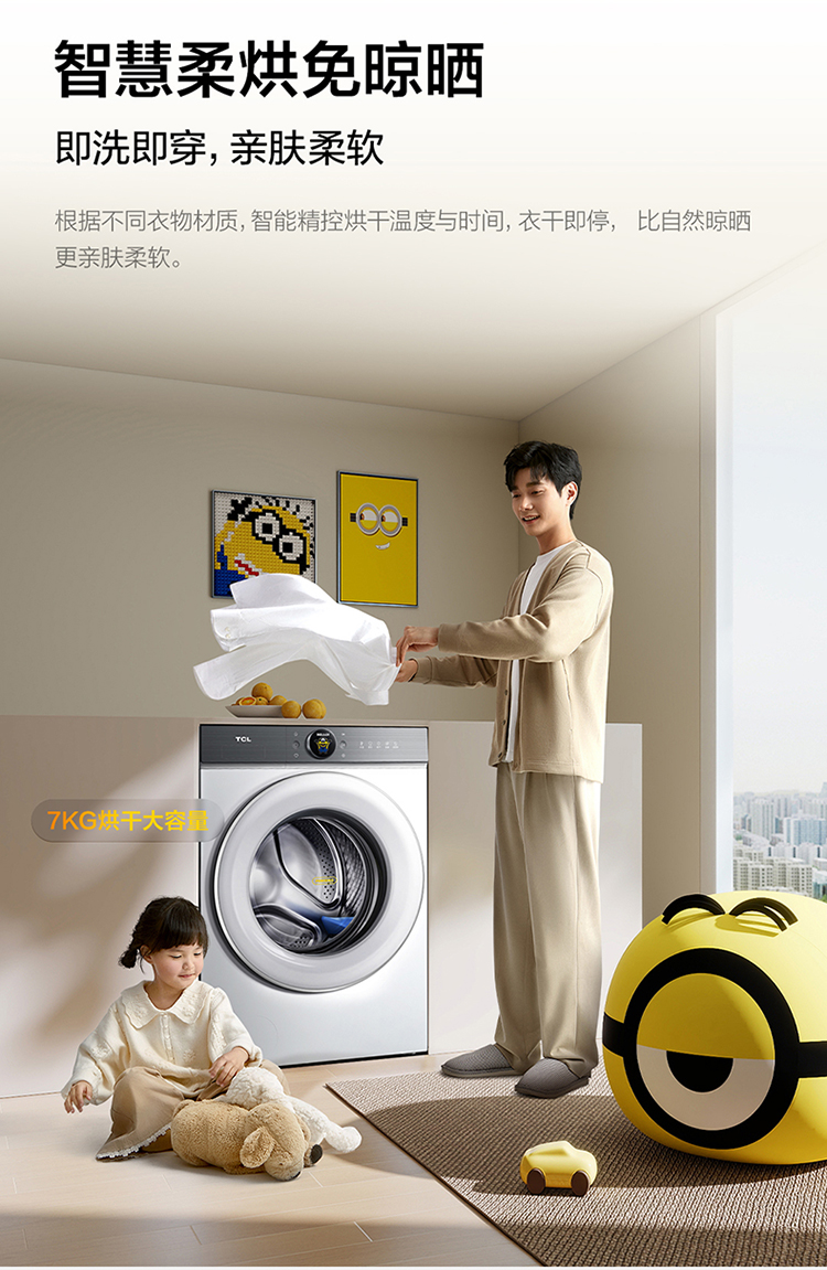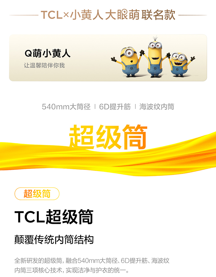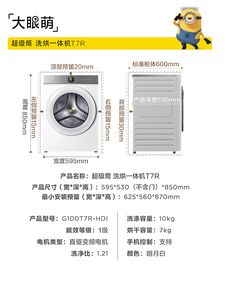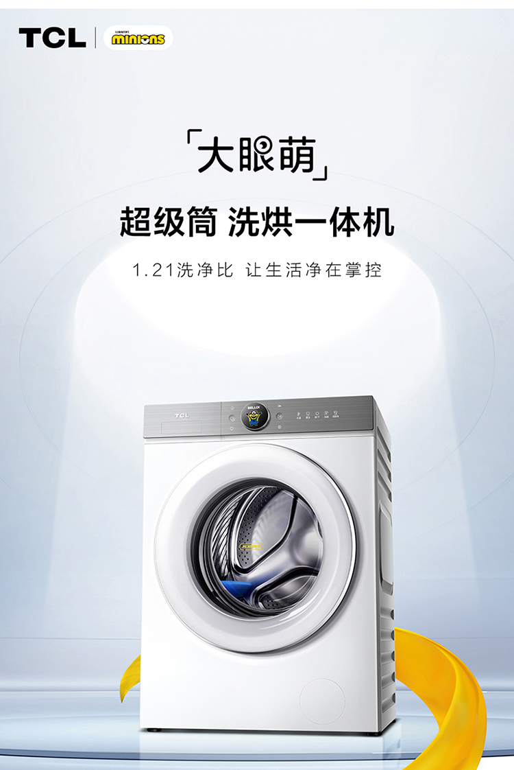TCL小黄人·大眼萌超级筒T7R 10公斤DD直驱洗烘一体 G100T7R-HDI