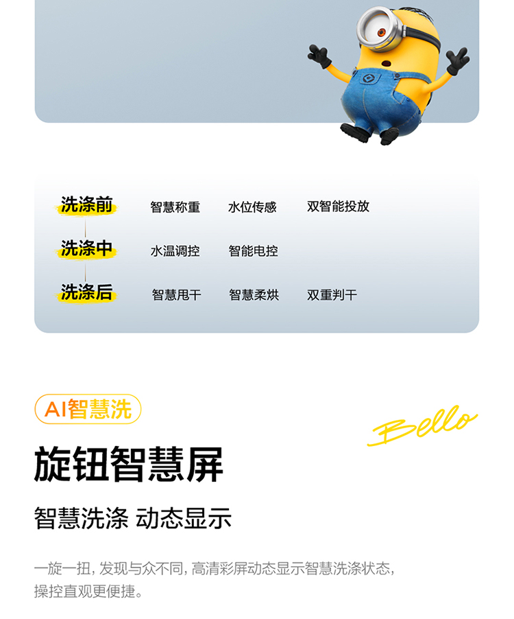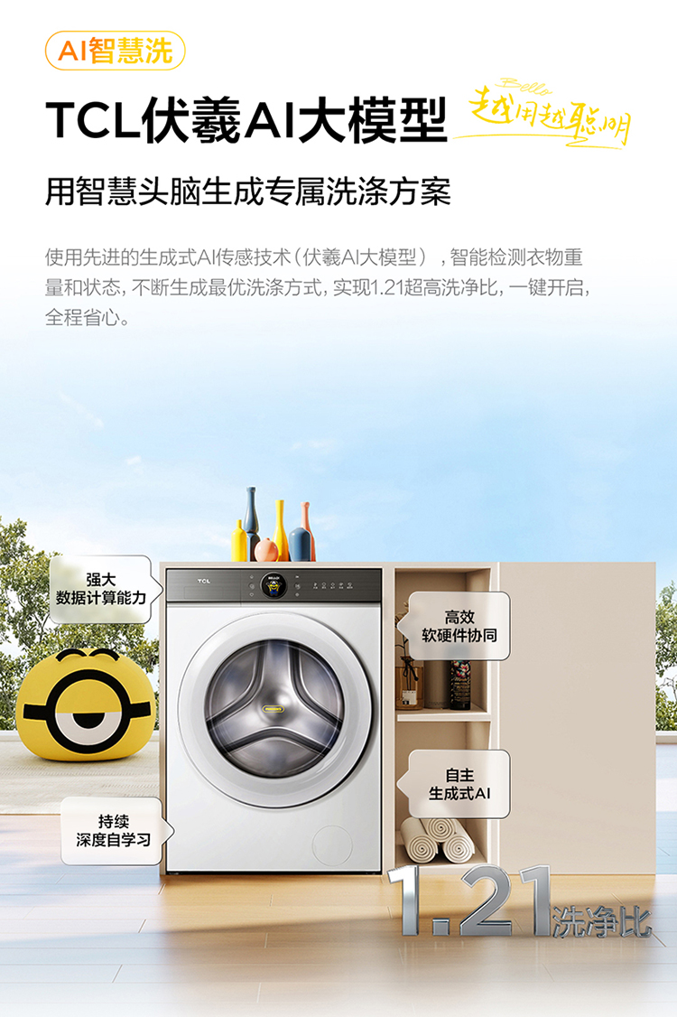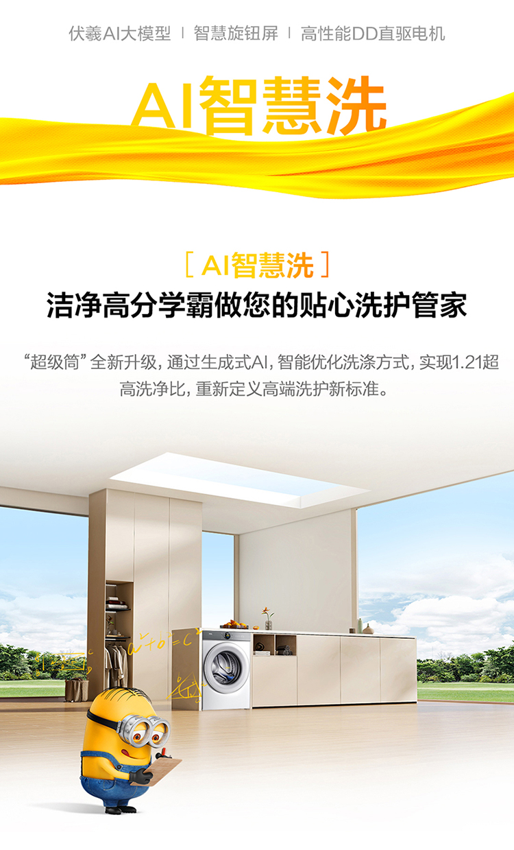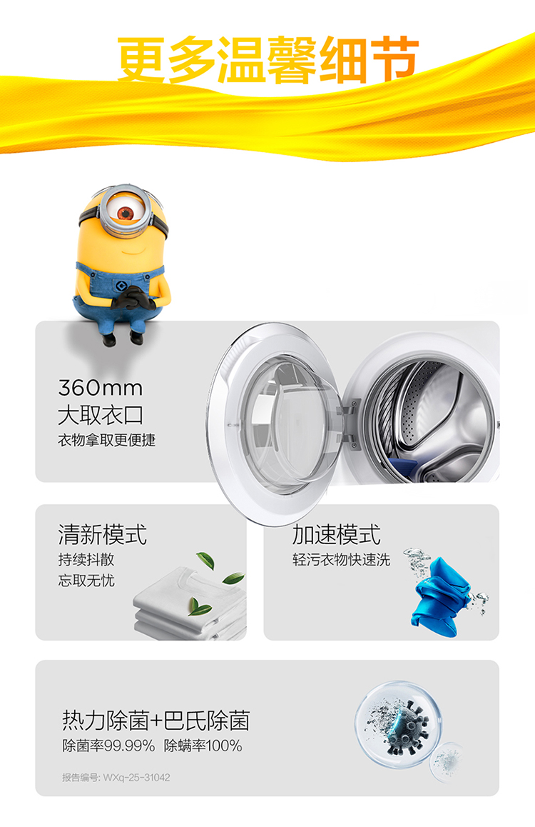 TCL小黄人·大眼萌超级筒T7R 10公斤DD直驱洗烘一体 G100T7R-HDI