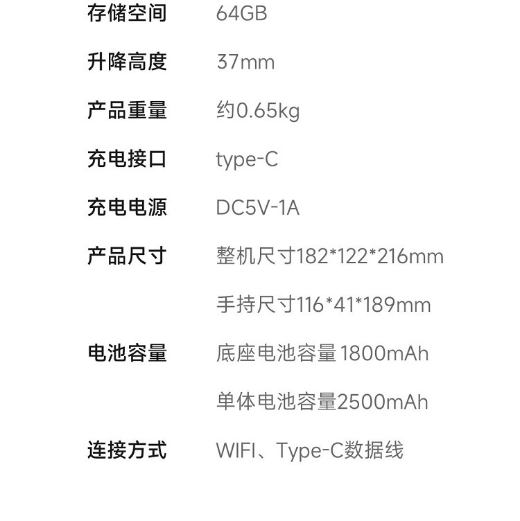电池容量:单体(2500mAh) 、底座 (1800mAh)