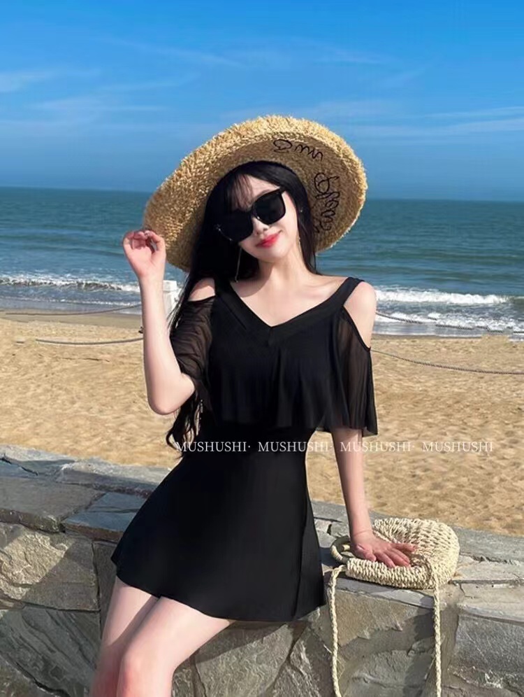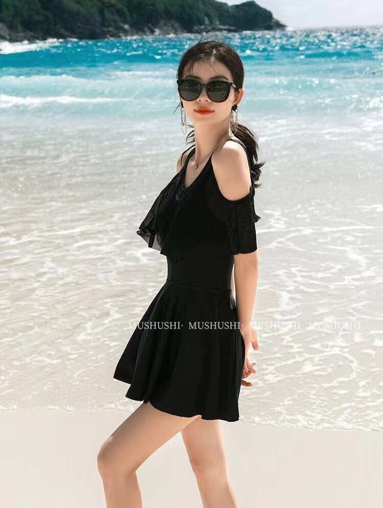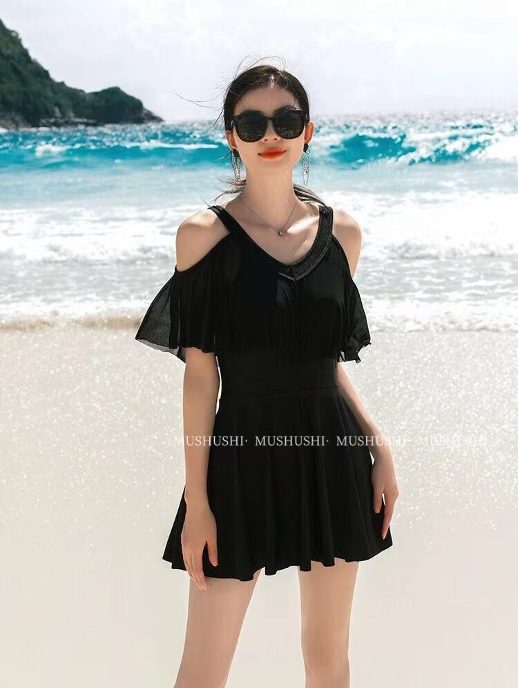 MUSHUSHI摩束师沙滩泳衣,简约不简单,保守又带点小性感肉肉姐妹本命~自带安全裤胸垫不走光!性感又gao级,收腰设计显得比例ju好,遮胯宽遮肚肚遮手臂肉肉