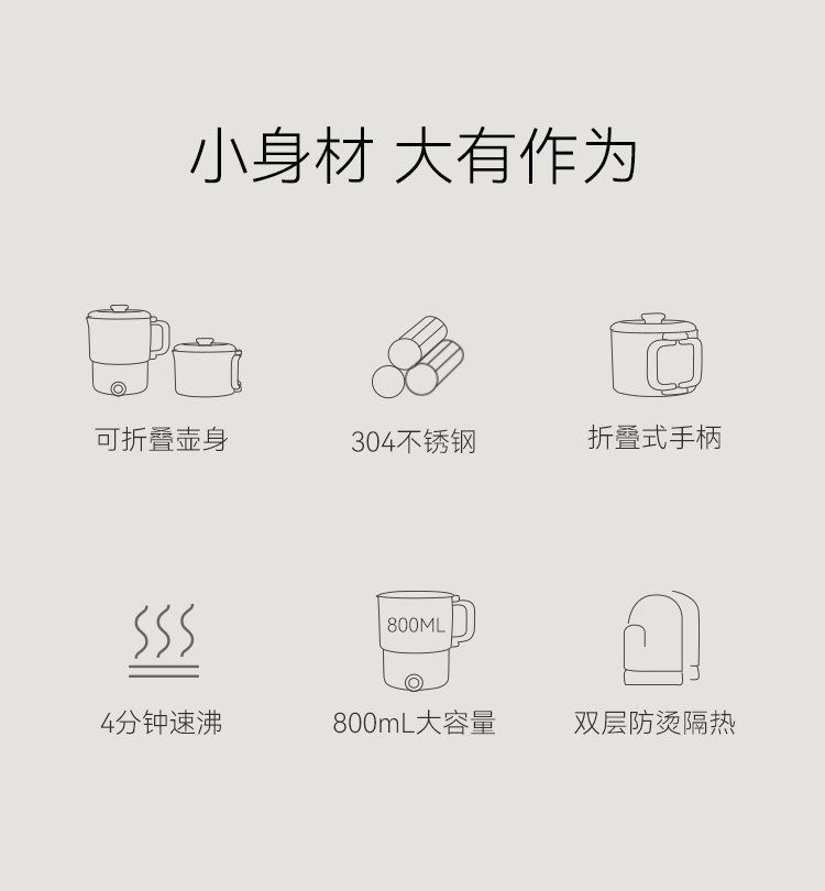 【文怡之选】七彩叮当 折叠电热水壶 旅行出差 便携烧水壶 不锈钢迷你加热烧水壶 电水杯