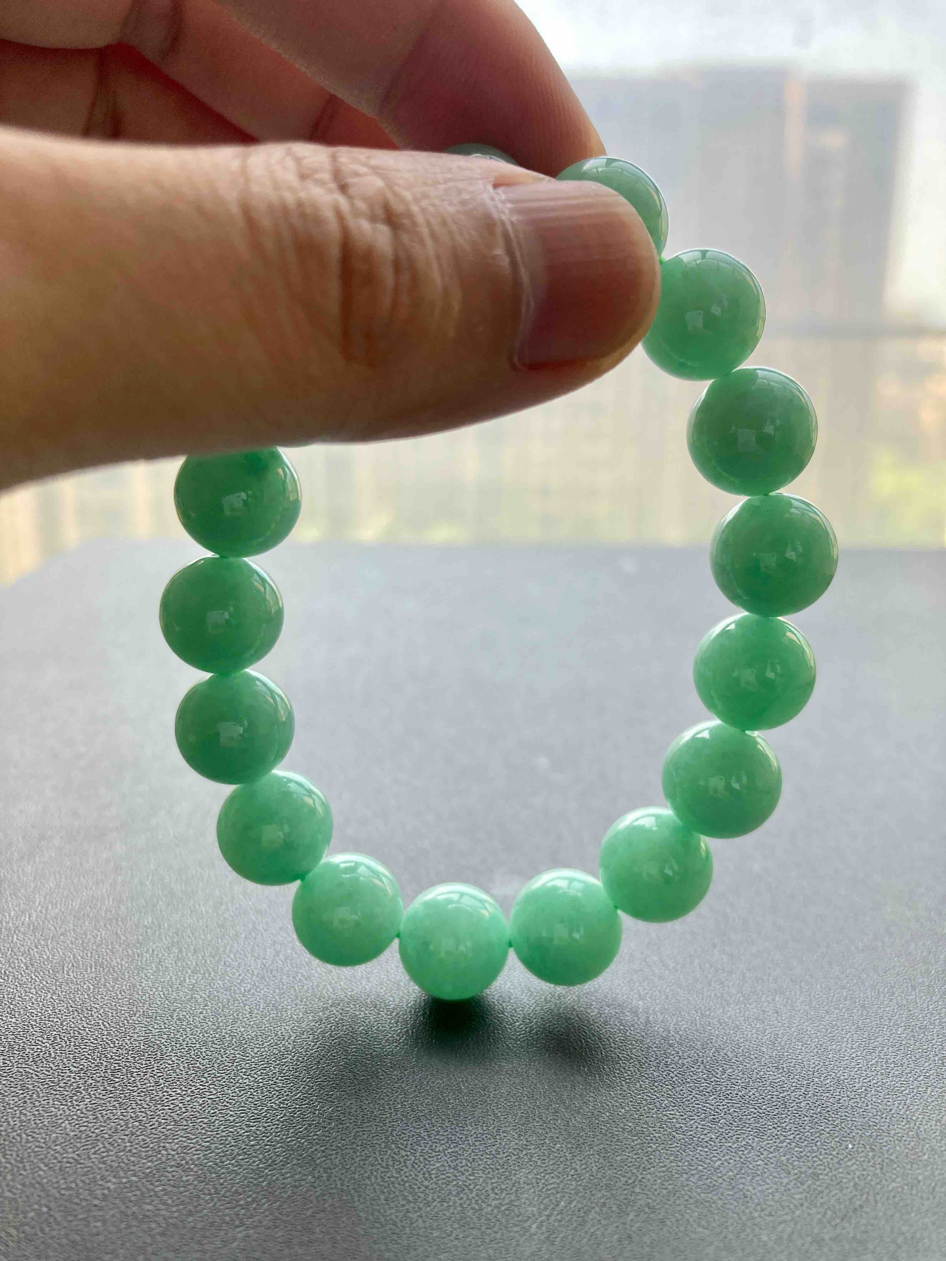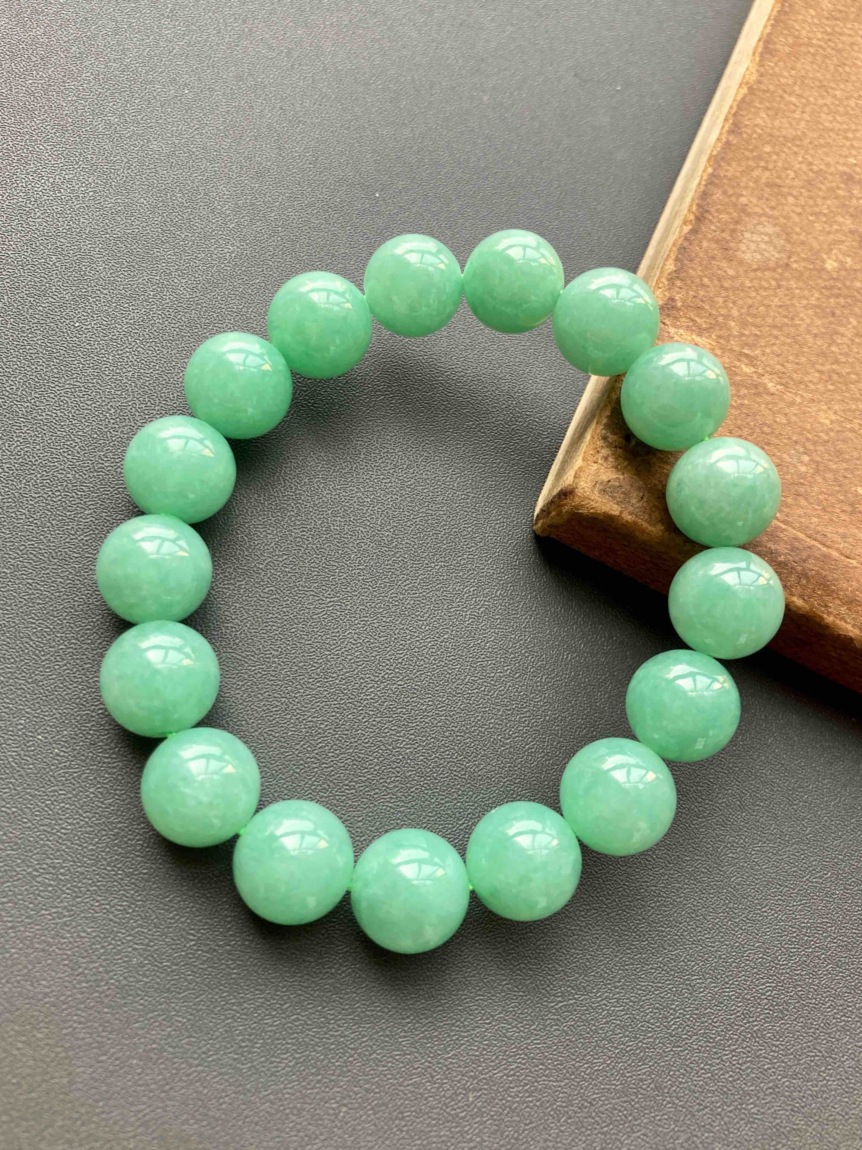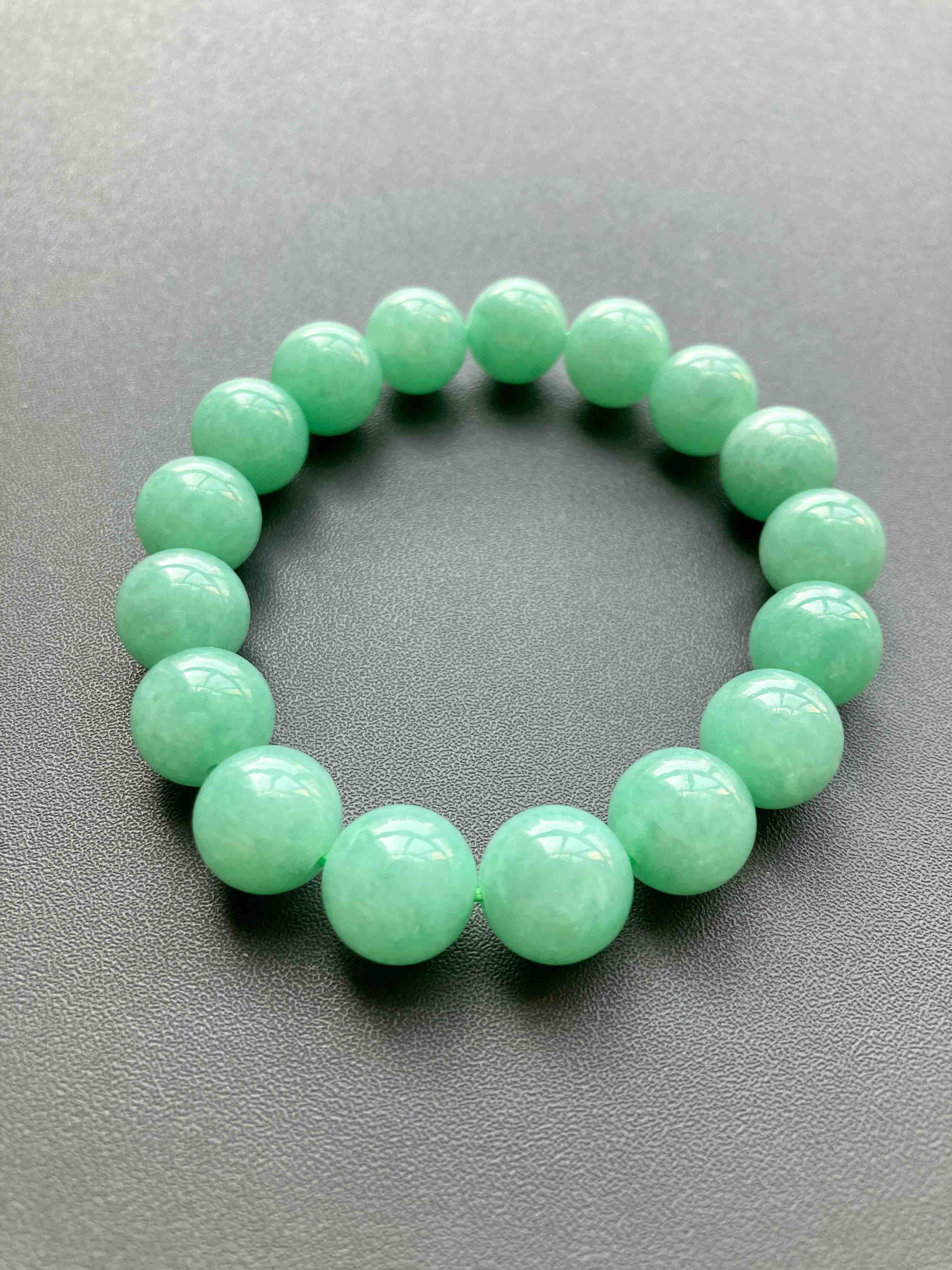 苹果绿大珠串,难得有种有色的大珠子,珠子大小11.9mm,有17颗,颜色漂亮,上手特好看,这珠子尺寸太好了,唯一一串,强烈推荐
