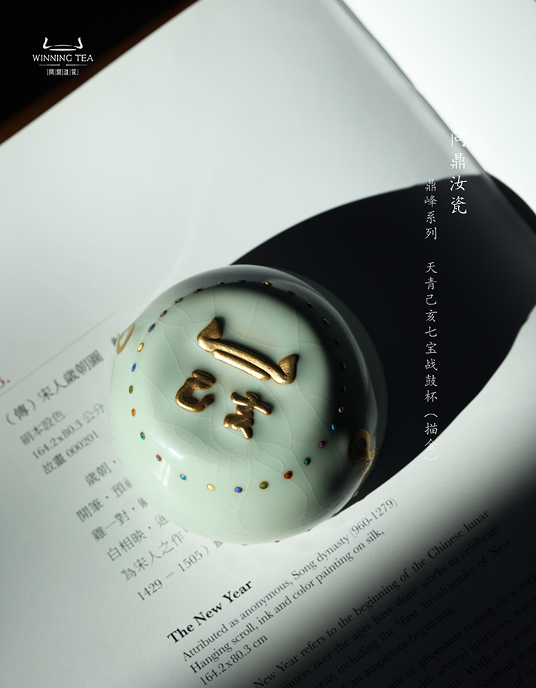 问鼎汝瓷鼎峰系列天青己亥七宝战鼓杯(描金)