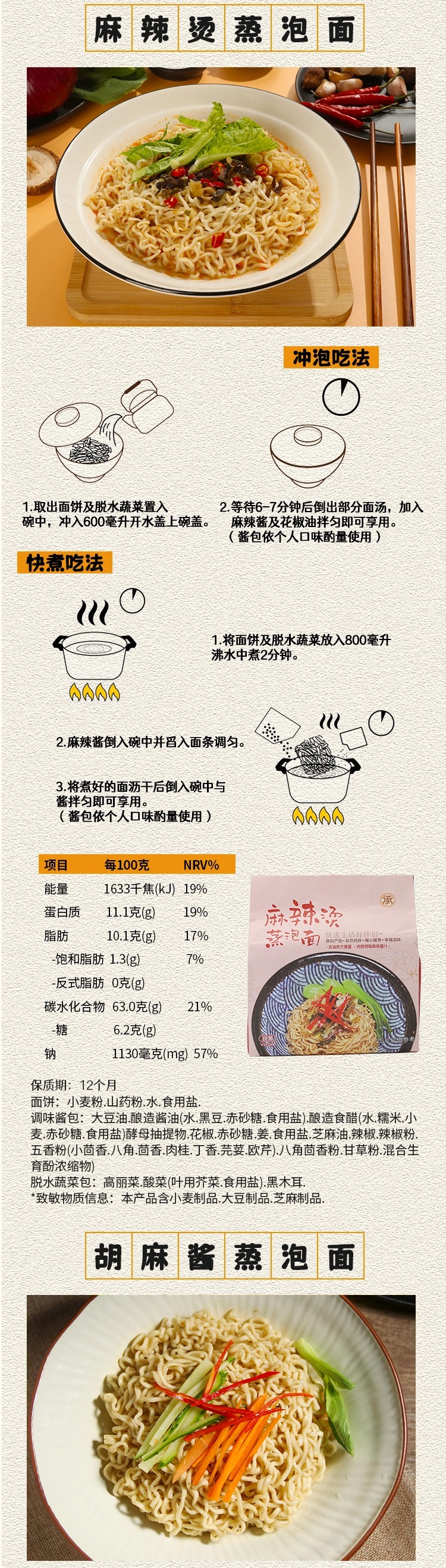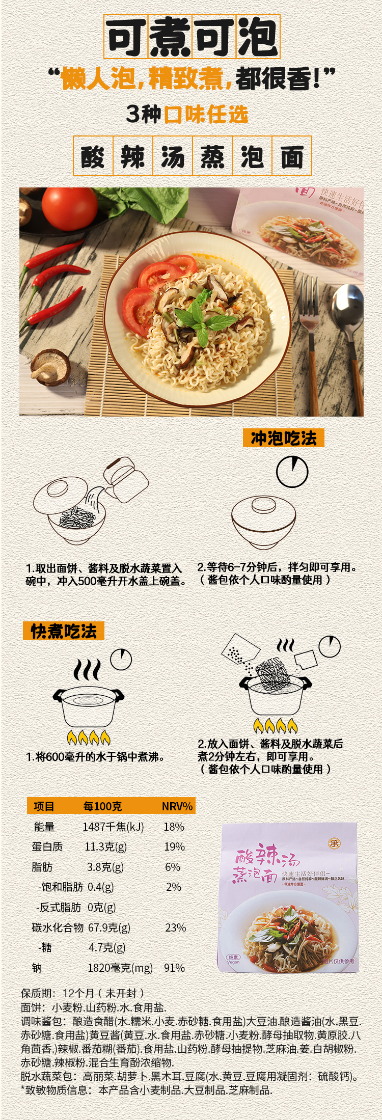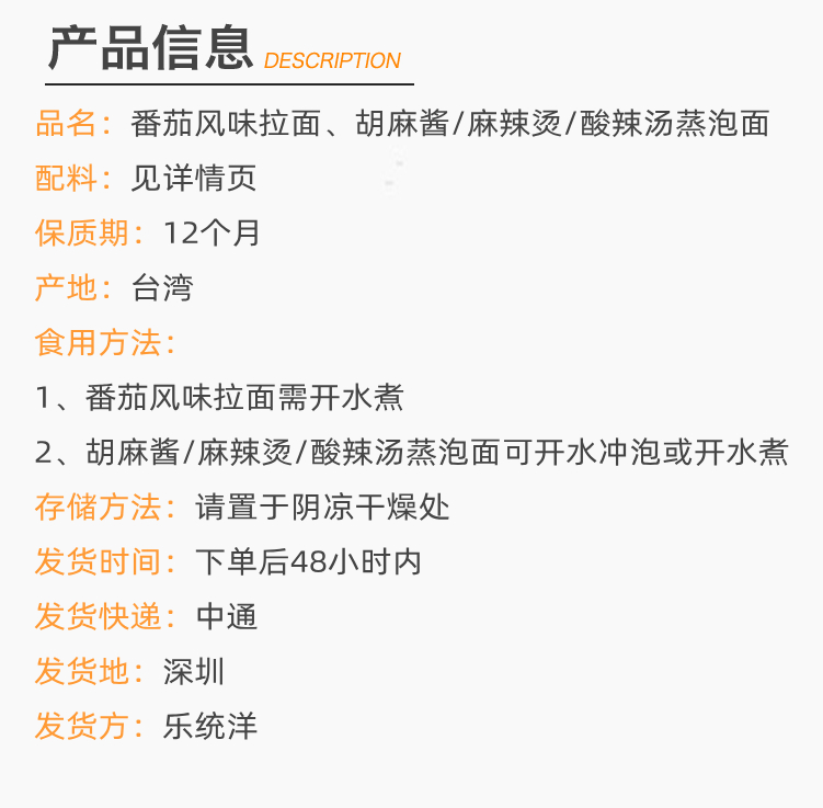台湾承昌番茄风味拉面 胡麻酱&麻辣烫&酸辣汤泡面方便面 420g/袋 (含4份)