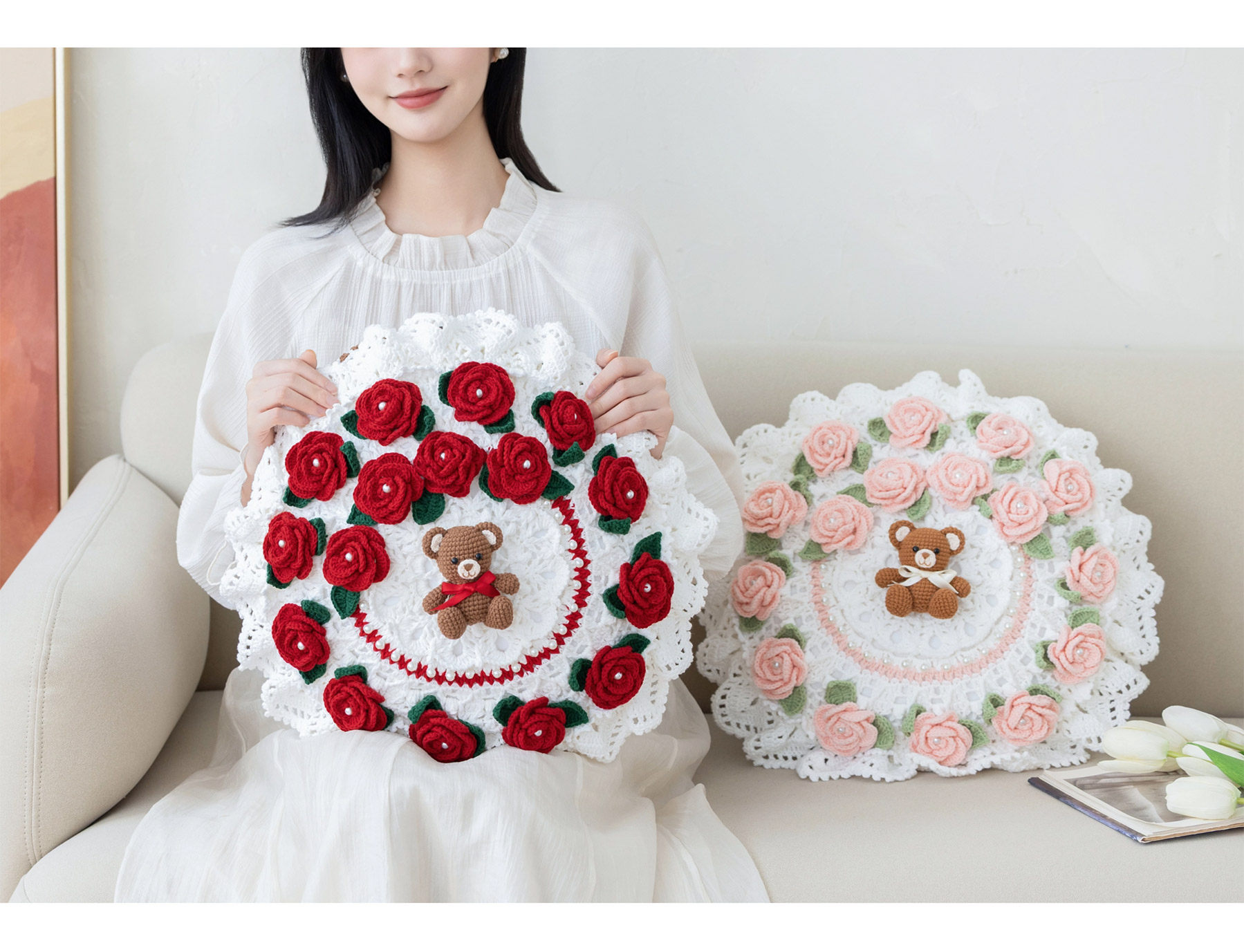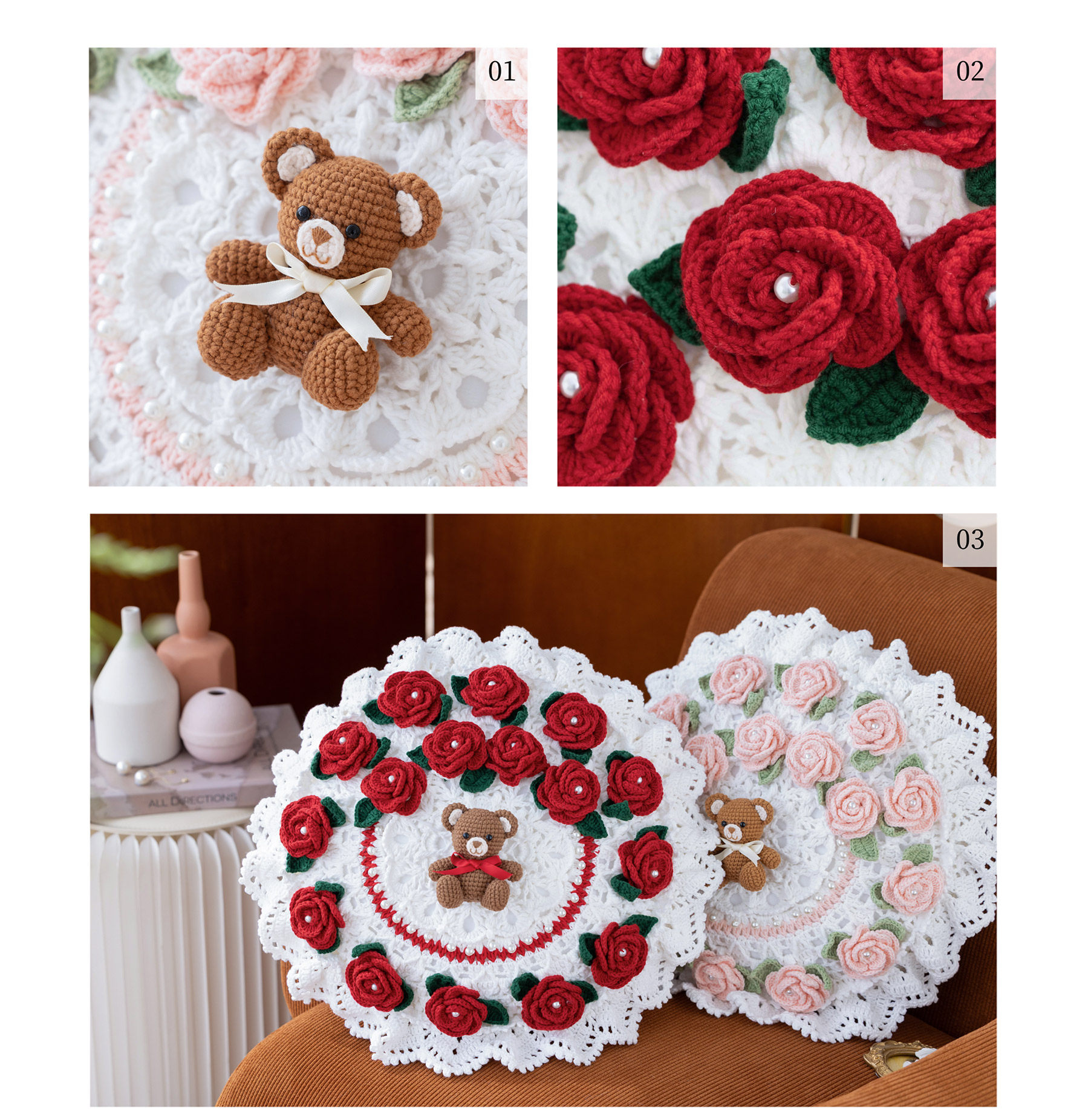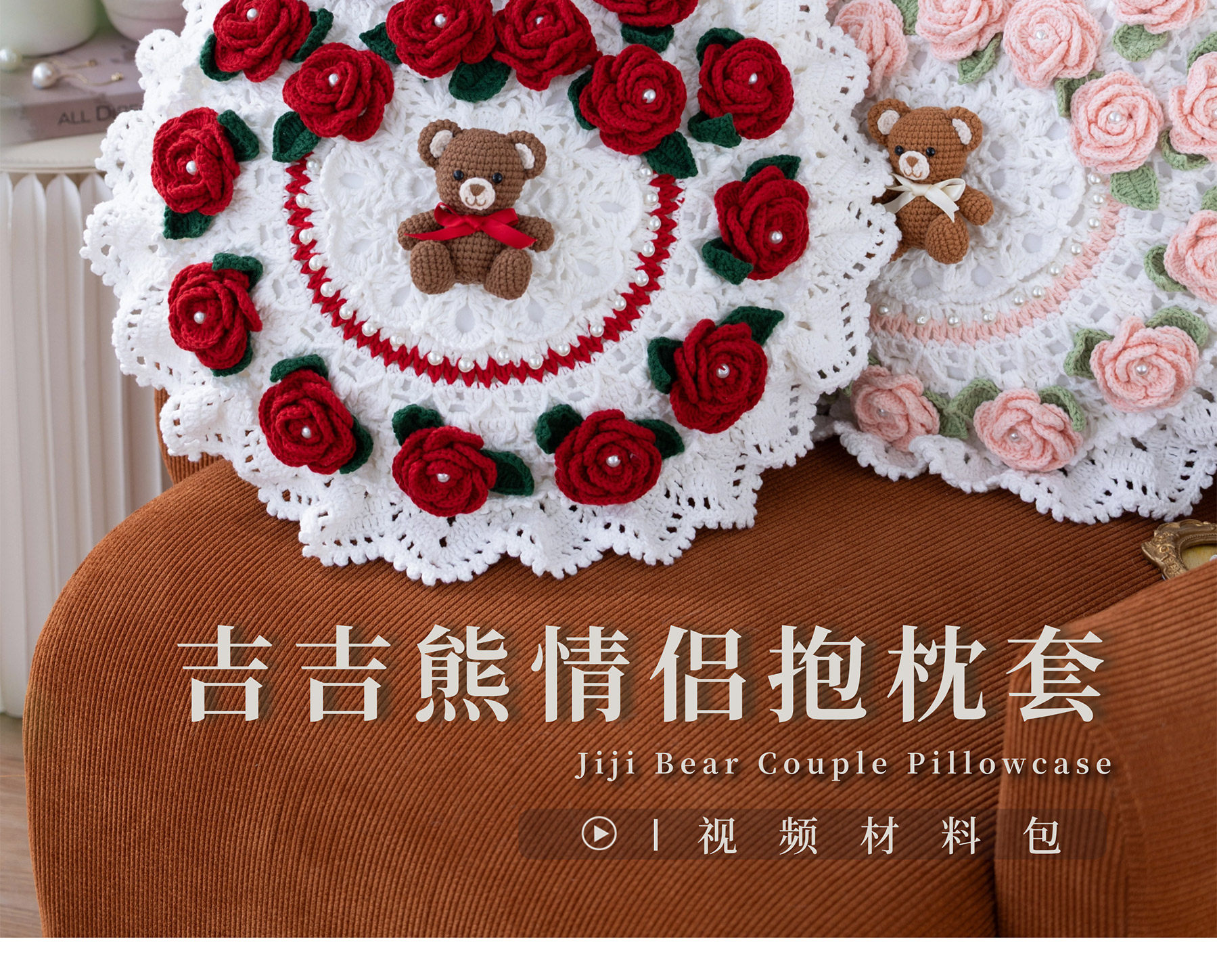 苏苏姐家吉吉熊情侣抱枕套手工DIY编织钩针牛奶棉毛线团材料包