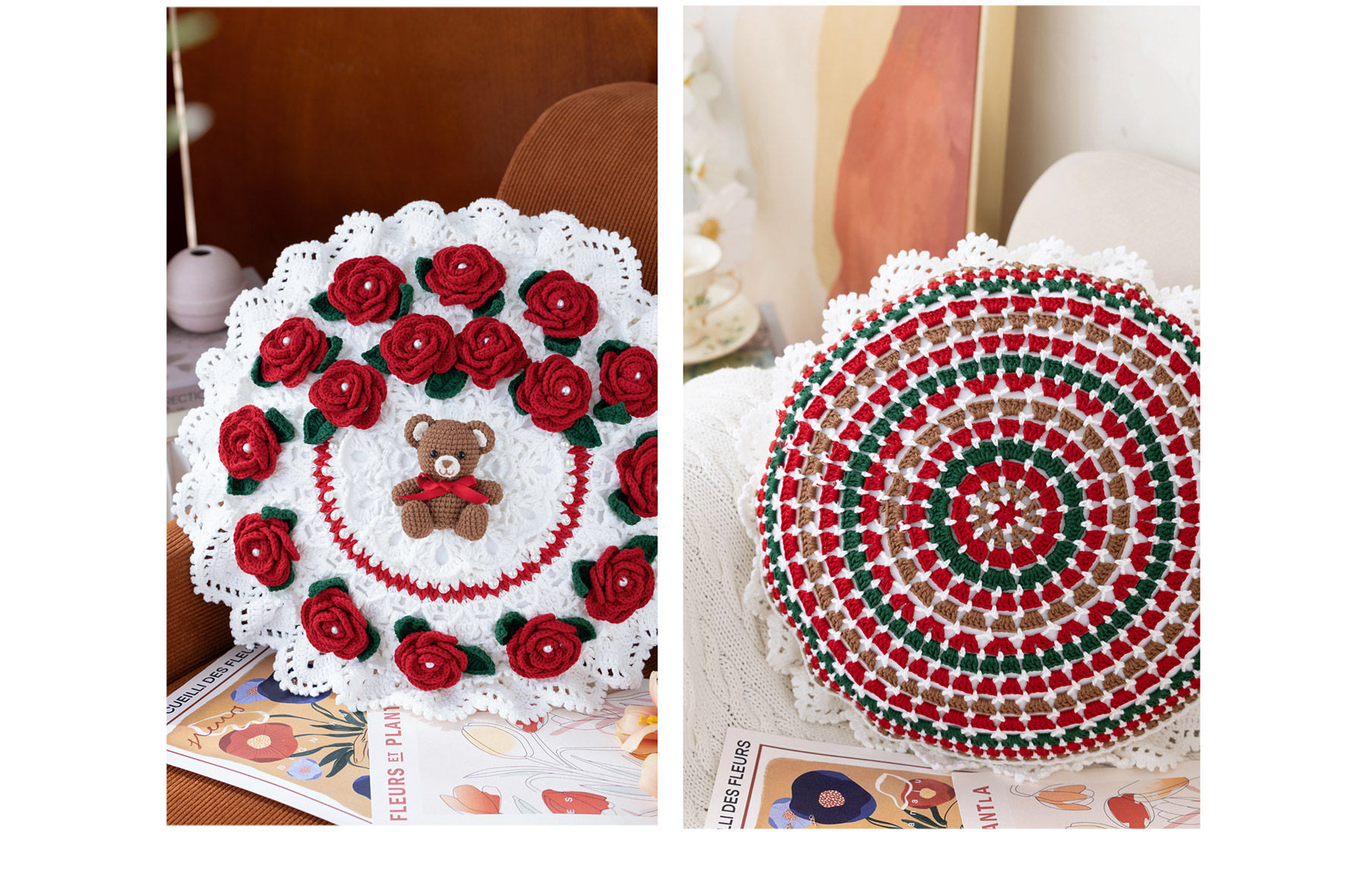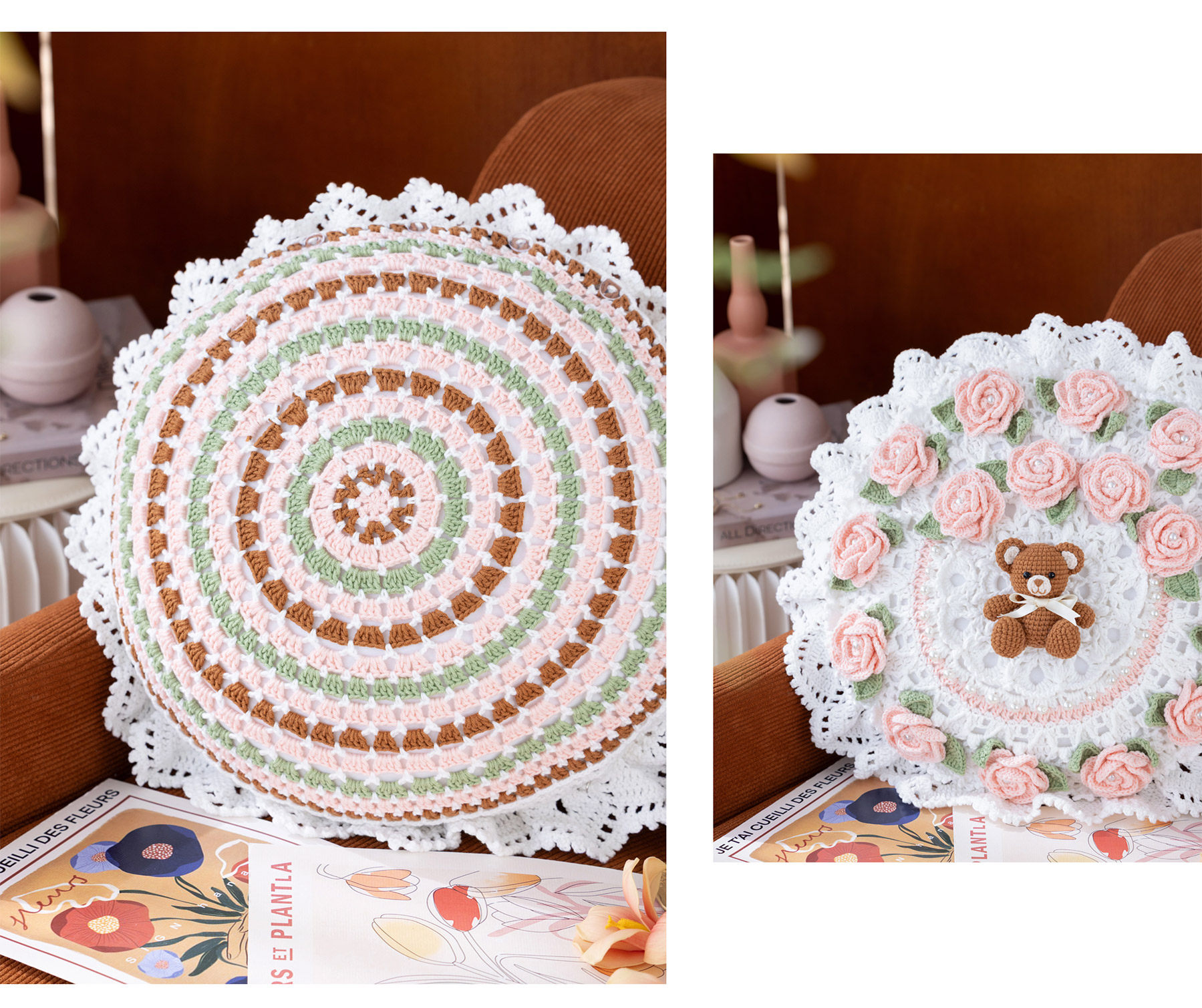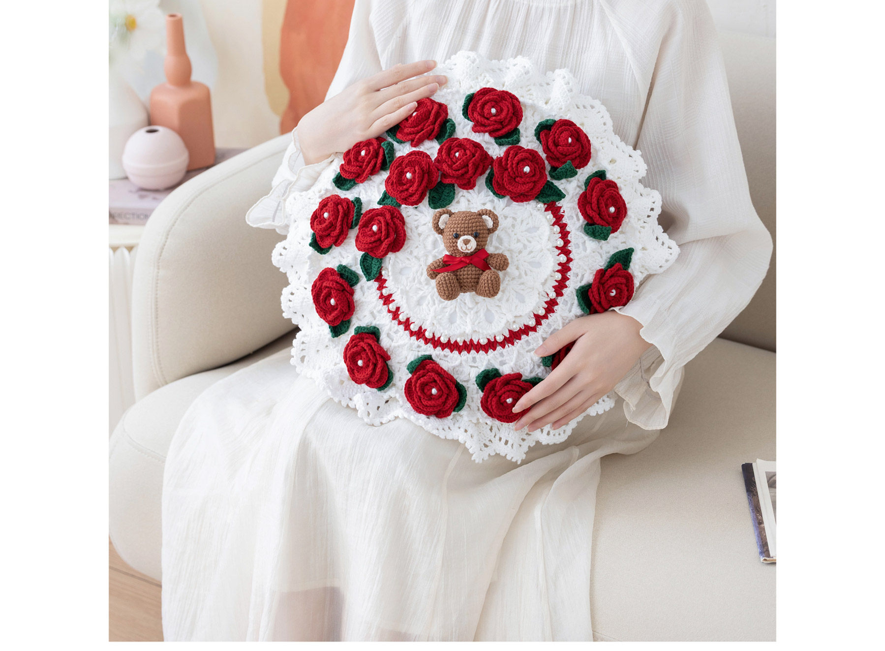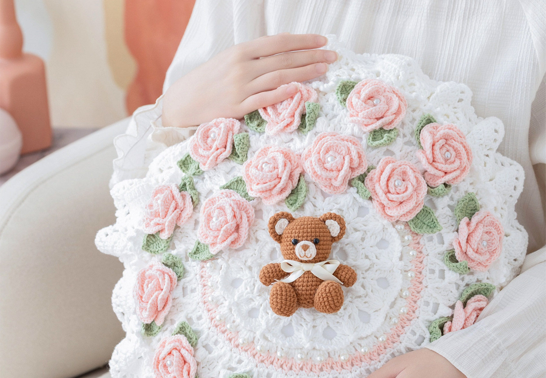 苏苏姐家吉吉熊情侣抱枕套手工DIY编织钩针牛奶棉毛线团材料包