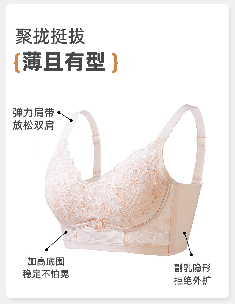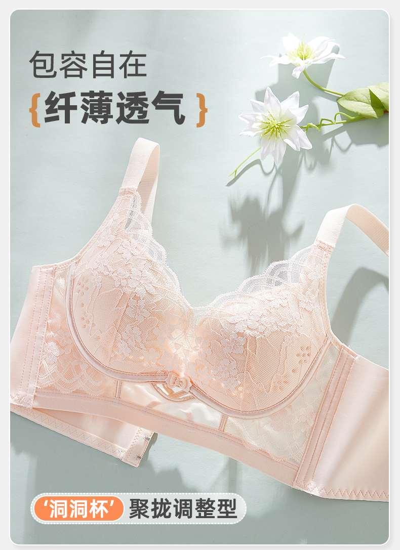 雅黛俪内衣女大胸显小胸收副乳聚拢调整型防下垂夏薄款透气文胸罩