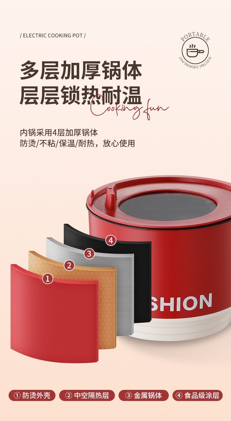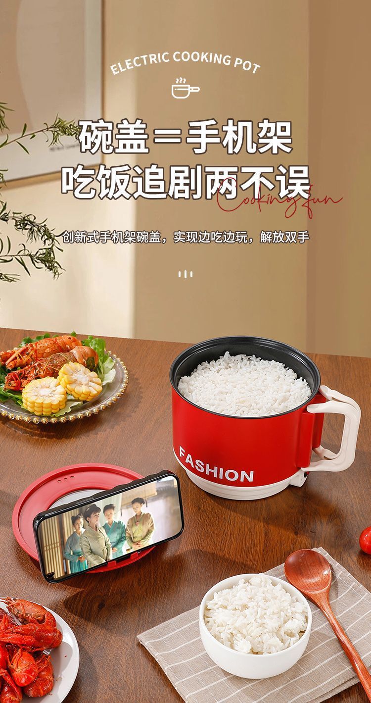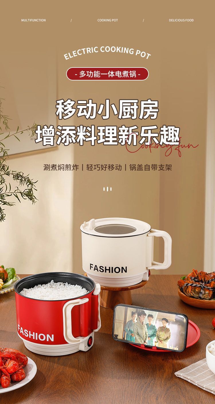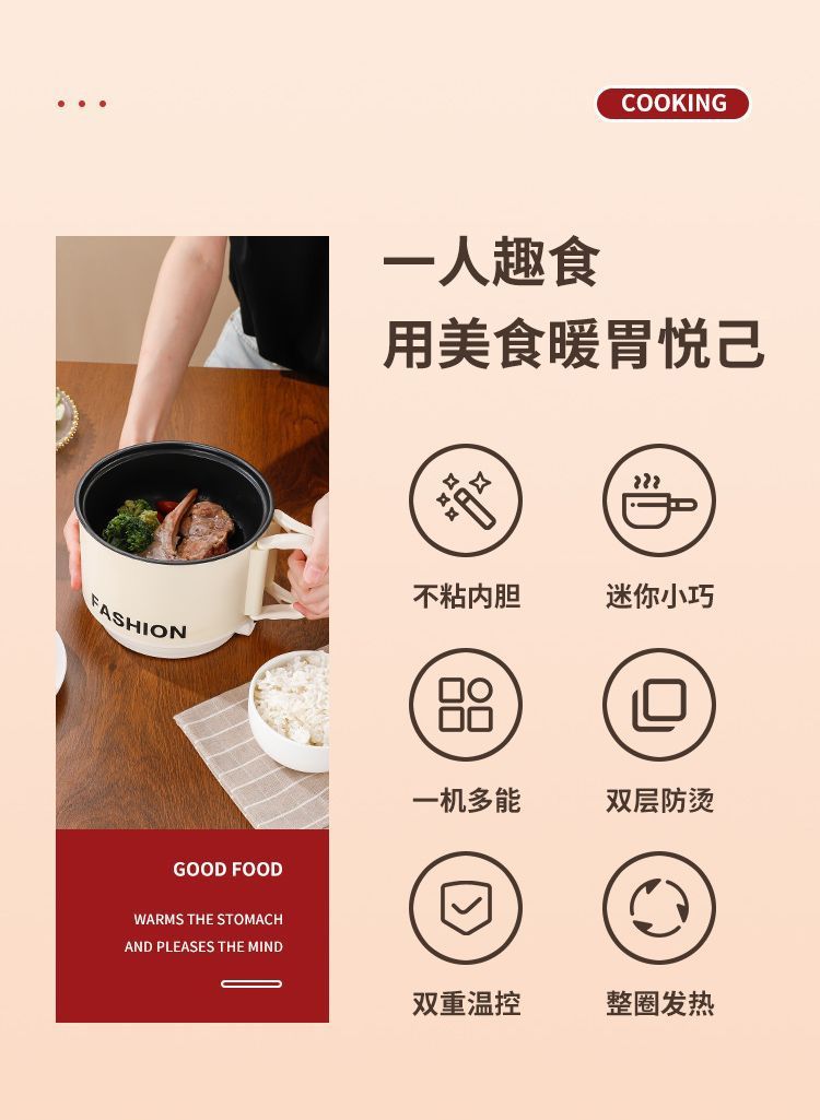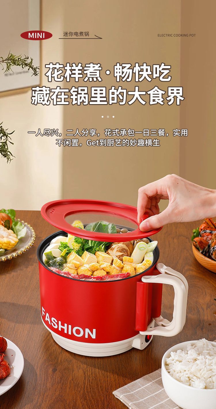 【移动小厨房❗️多功能一体电煮锅】花样煮「畅快吃」 藏在锅里的大食界,机械按钮设计,单档火力🔥一键控温,家用小电锅,小型学生煮面锅,便携电火锅迷你不粘锅L