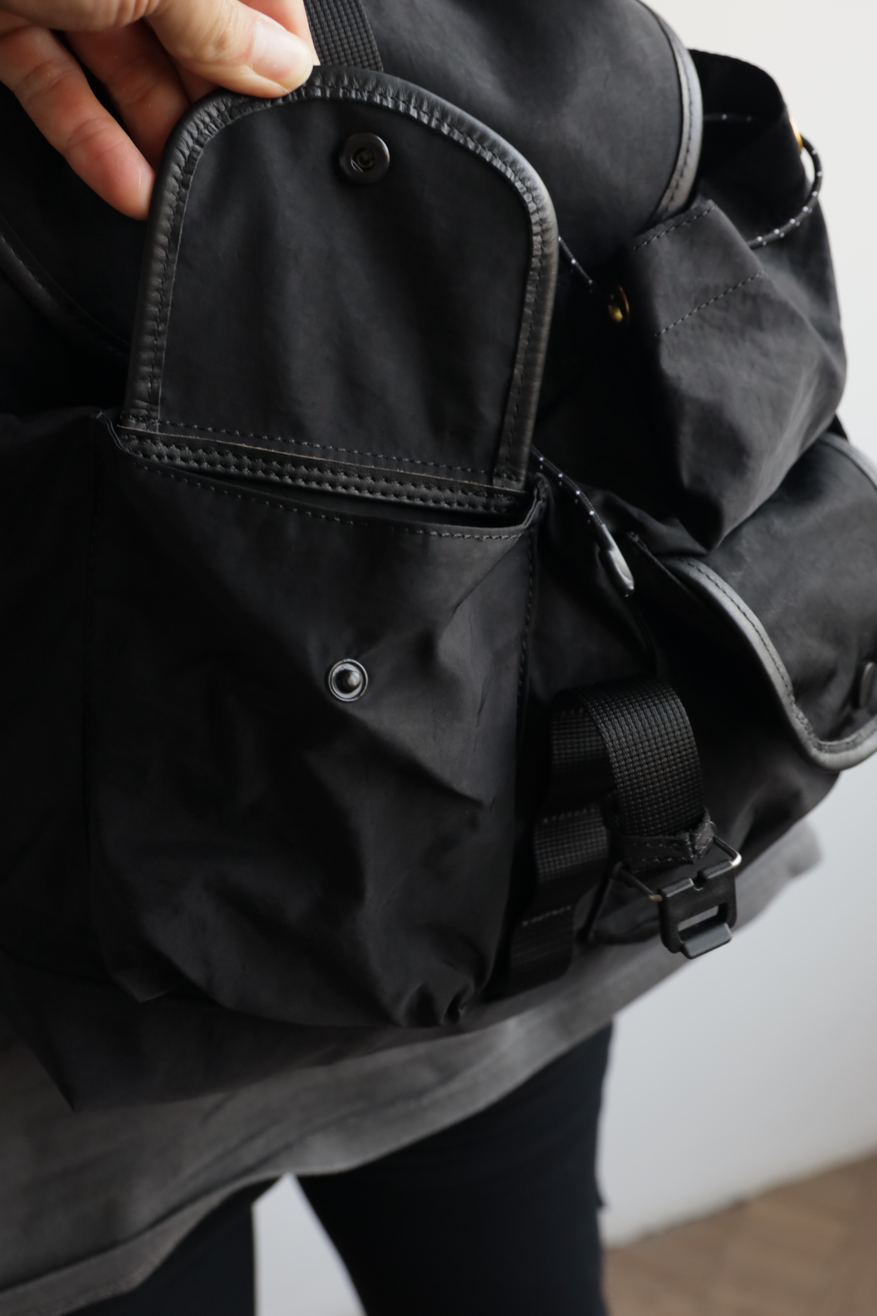 客供Cordura尼龙防水料,背部YKK拉链暗兜,辅料纳帕小牛皮