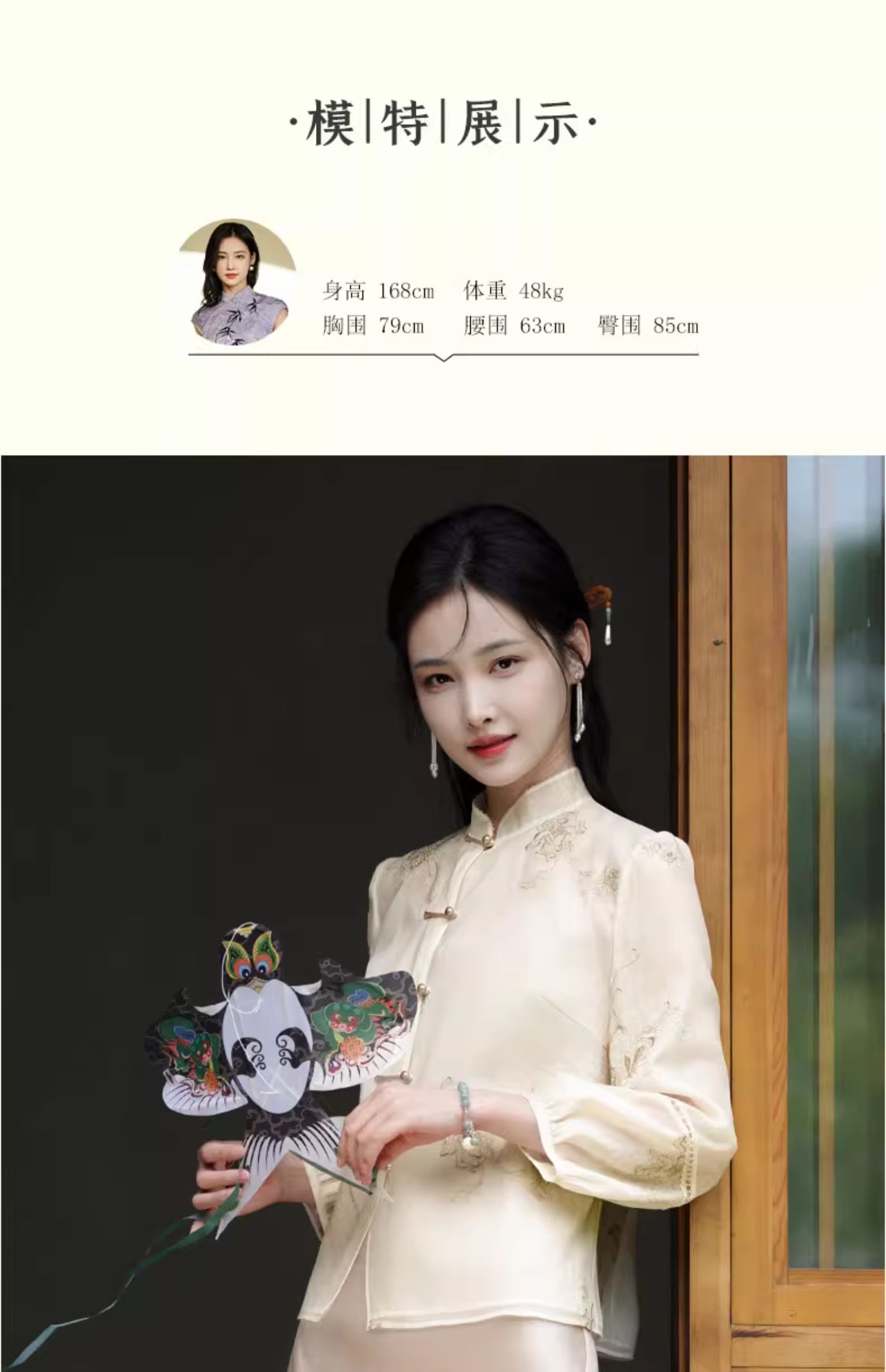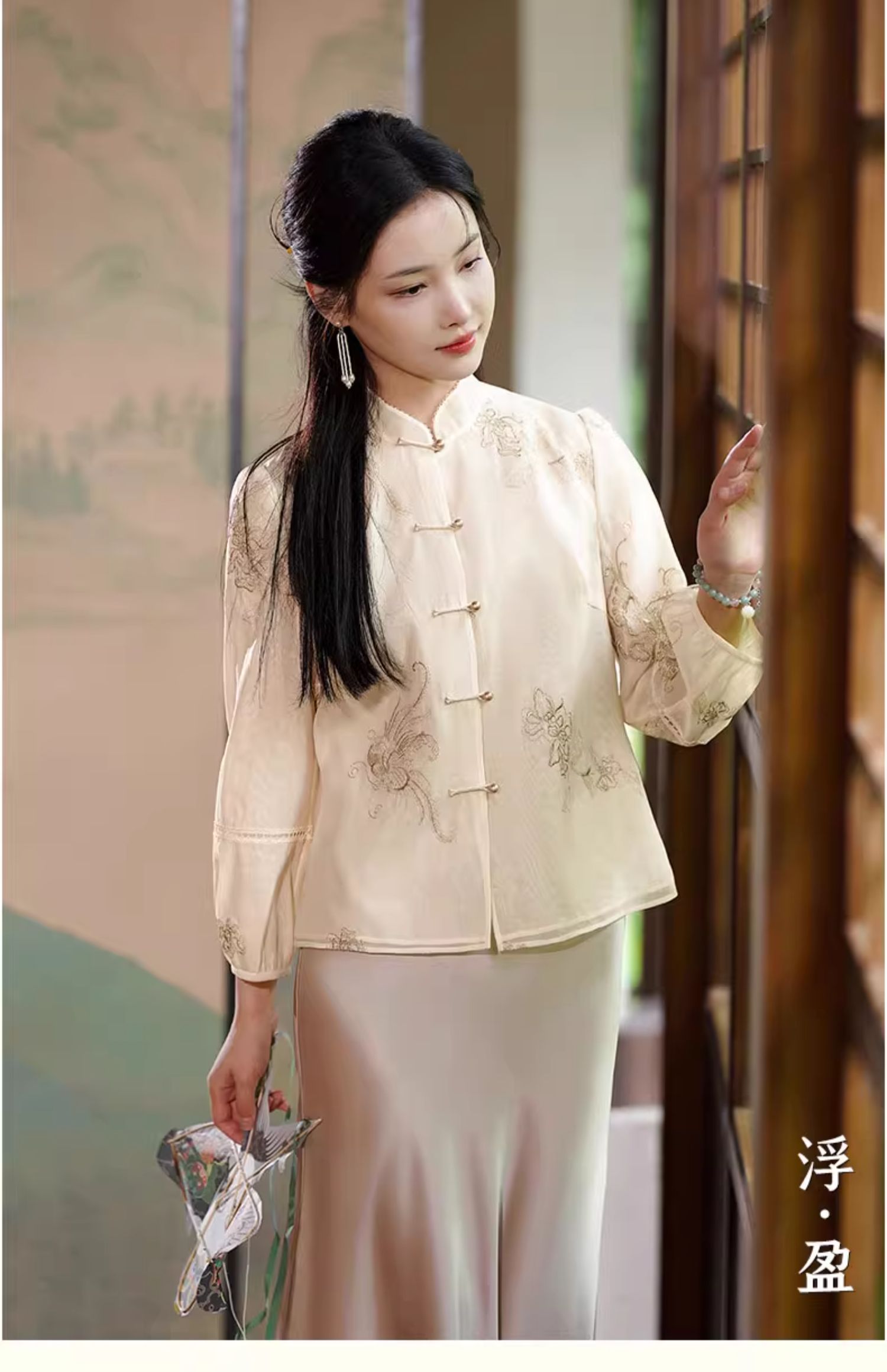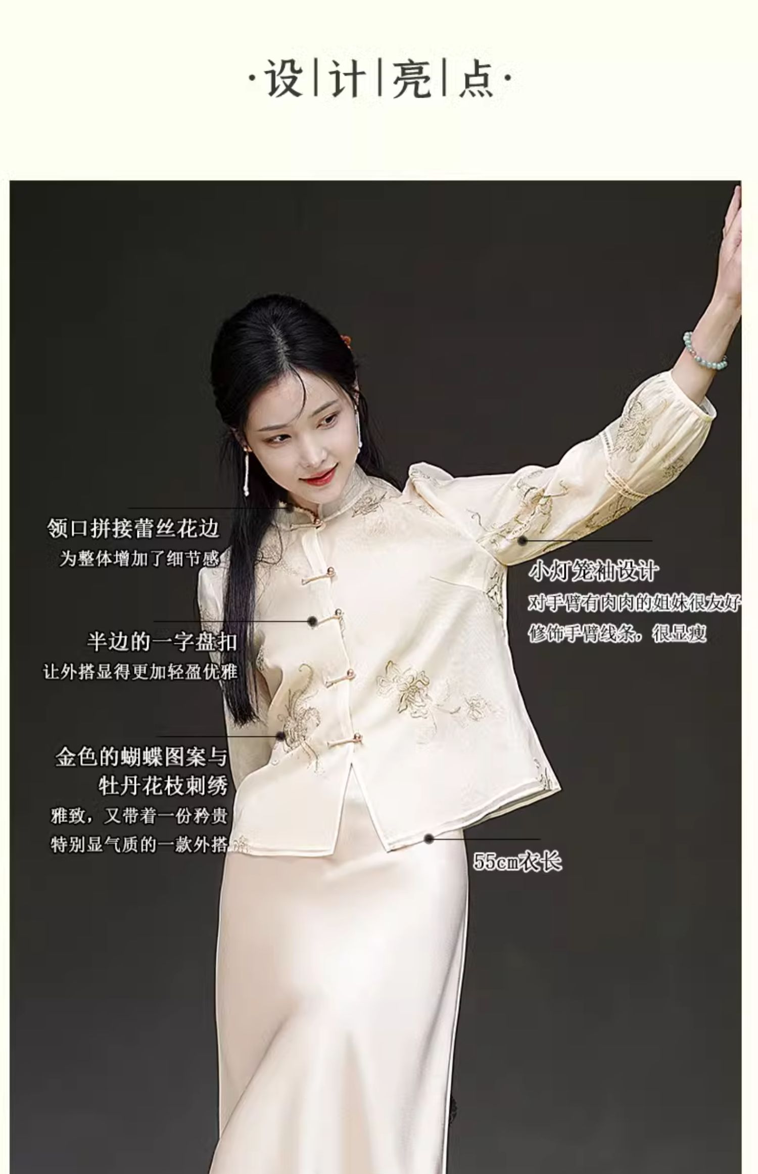 上海逸红颜浮盈2025年春装新品灯笼袖暗纹刺绣欧根纱新中式外套女