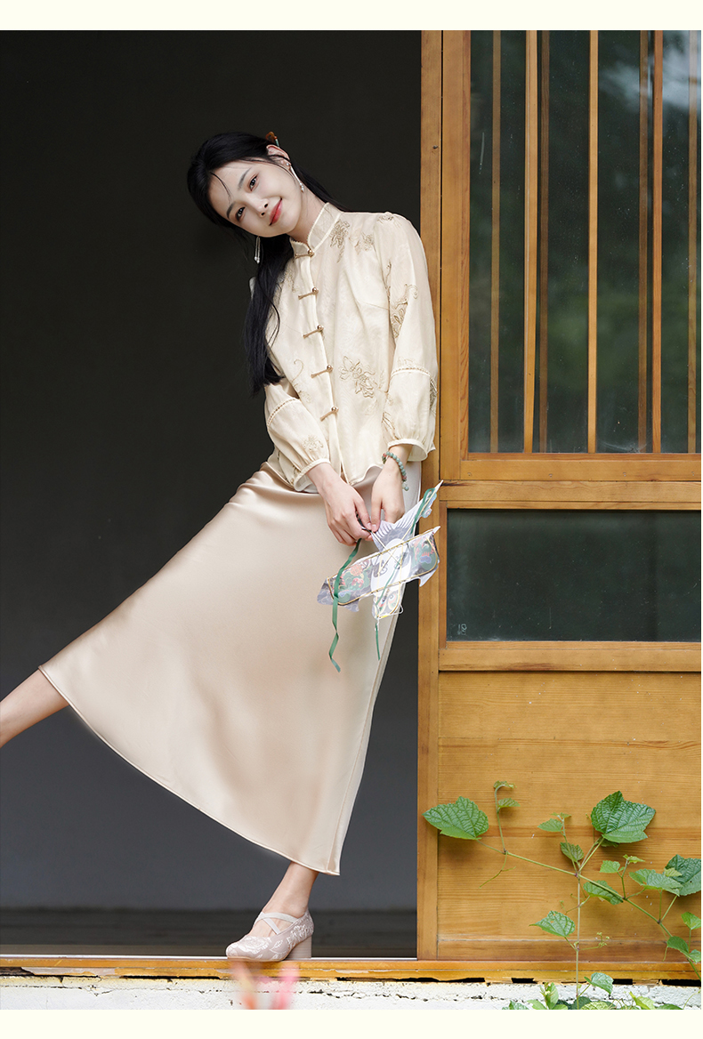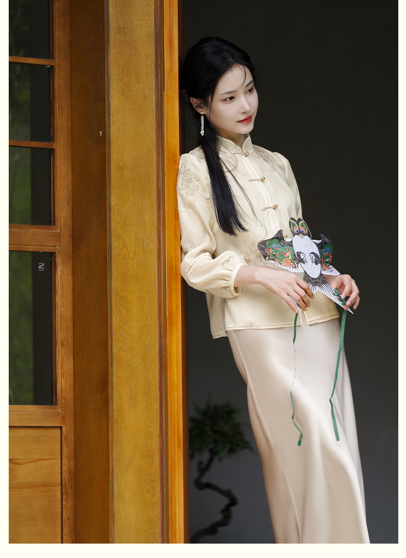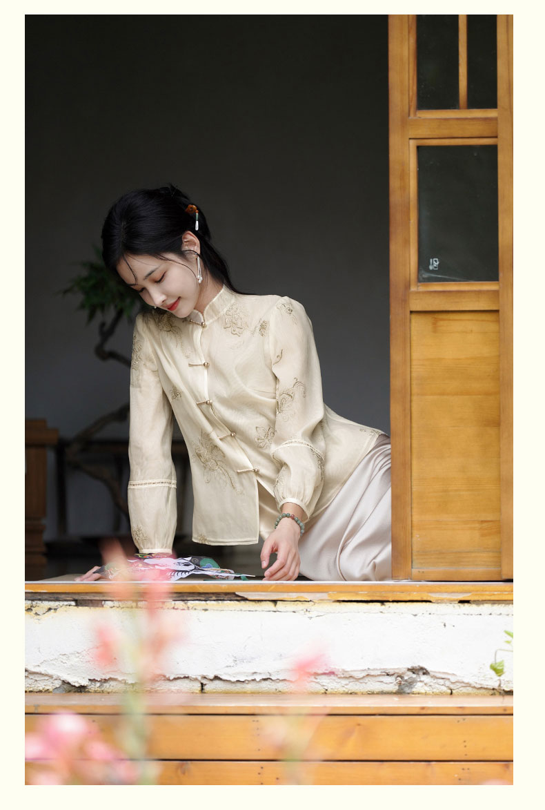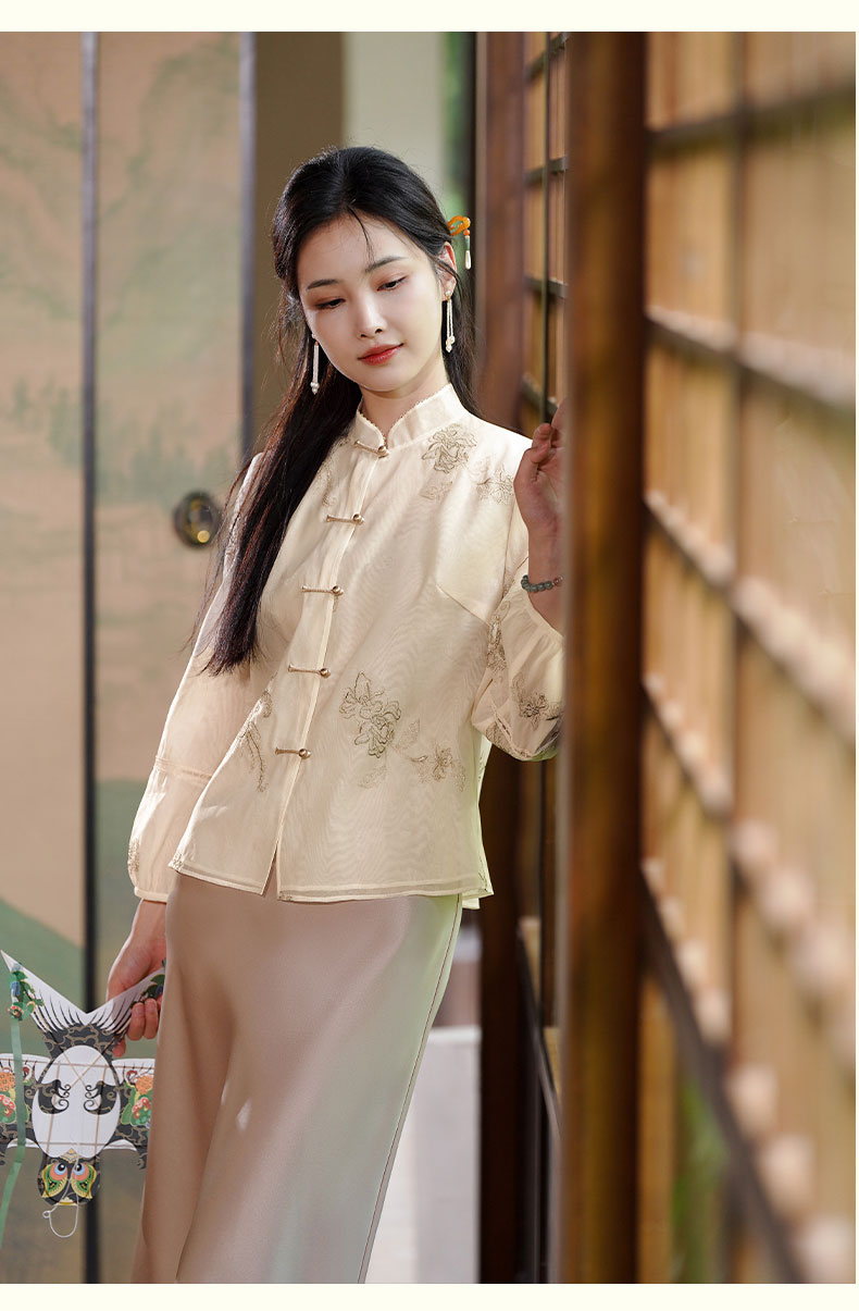上海逸红颜浮盈2025年春装新品灯笼袖暗纹刺绣欧根纱新中式外套女