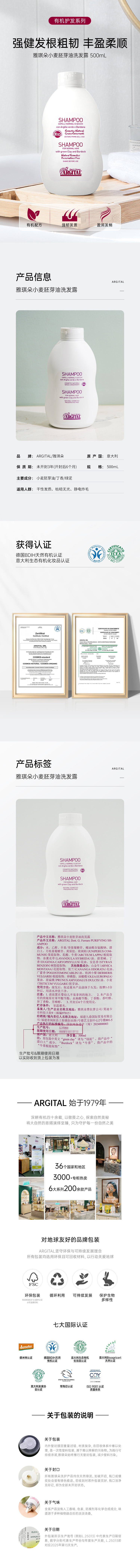 雅琪朵:天然绿泥小麦胚芽洗发水 精油洗发露 强韧发根防脱发控油柔顺