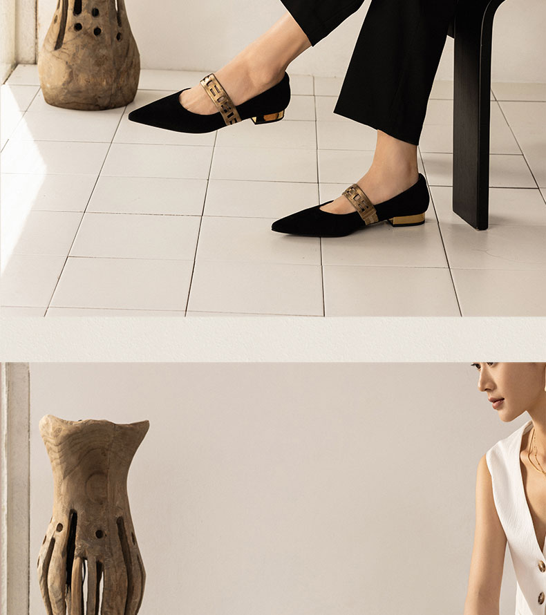 heelz设计师手工鞋履 |繁花系列几何条带尖头玛丽珍2公分