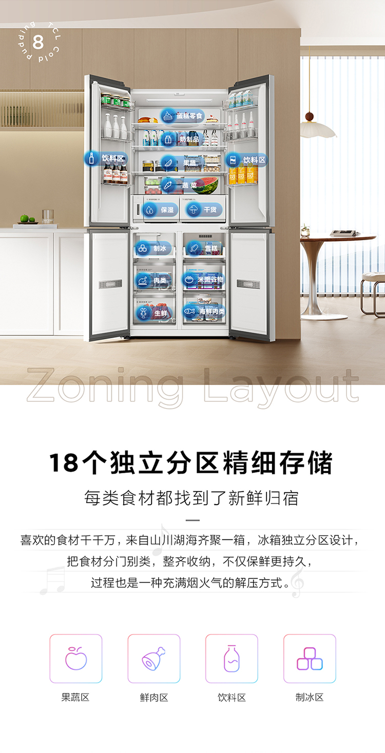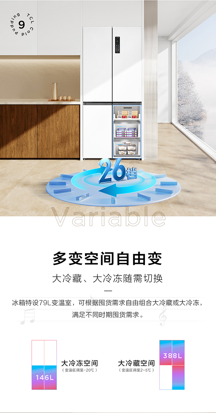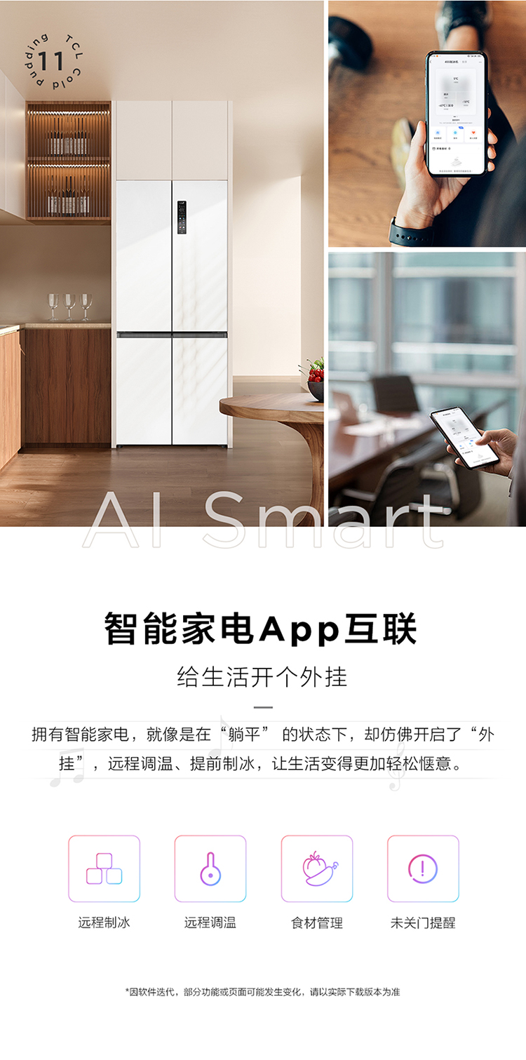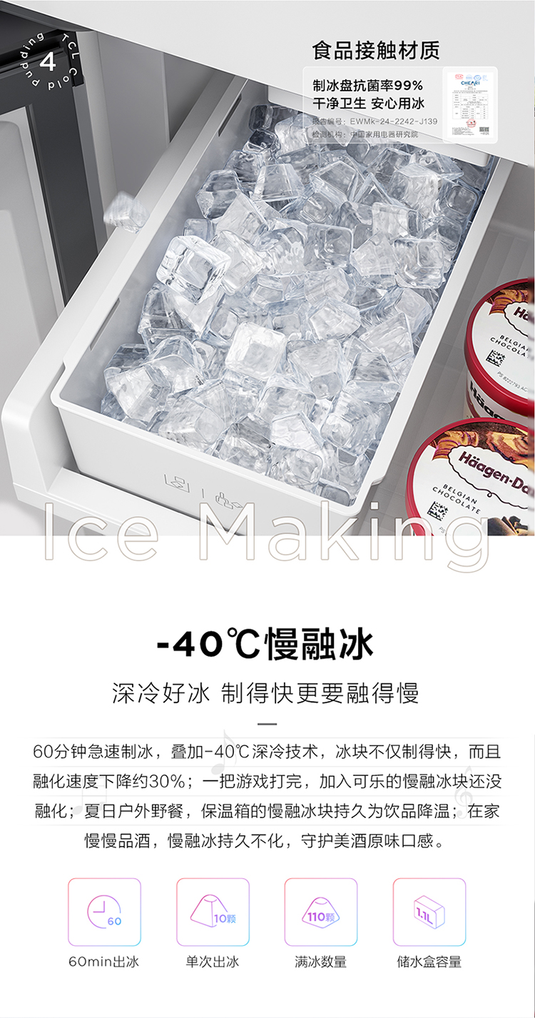 TCL冷布丁455升十字四开门58cm超薄零嵌全自动制冰-40度慢融冰冰箱R455T9-UQB