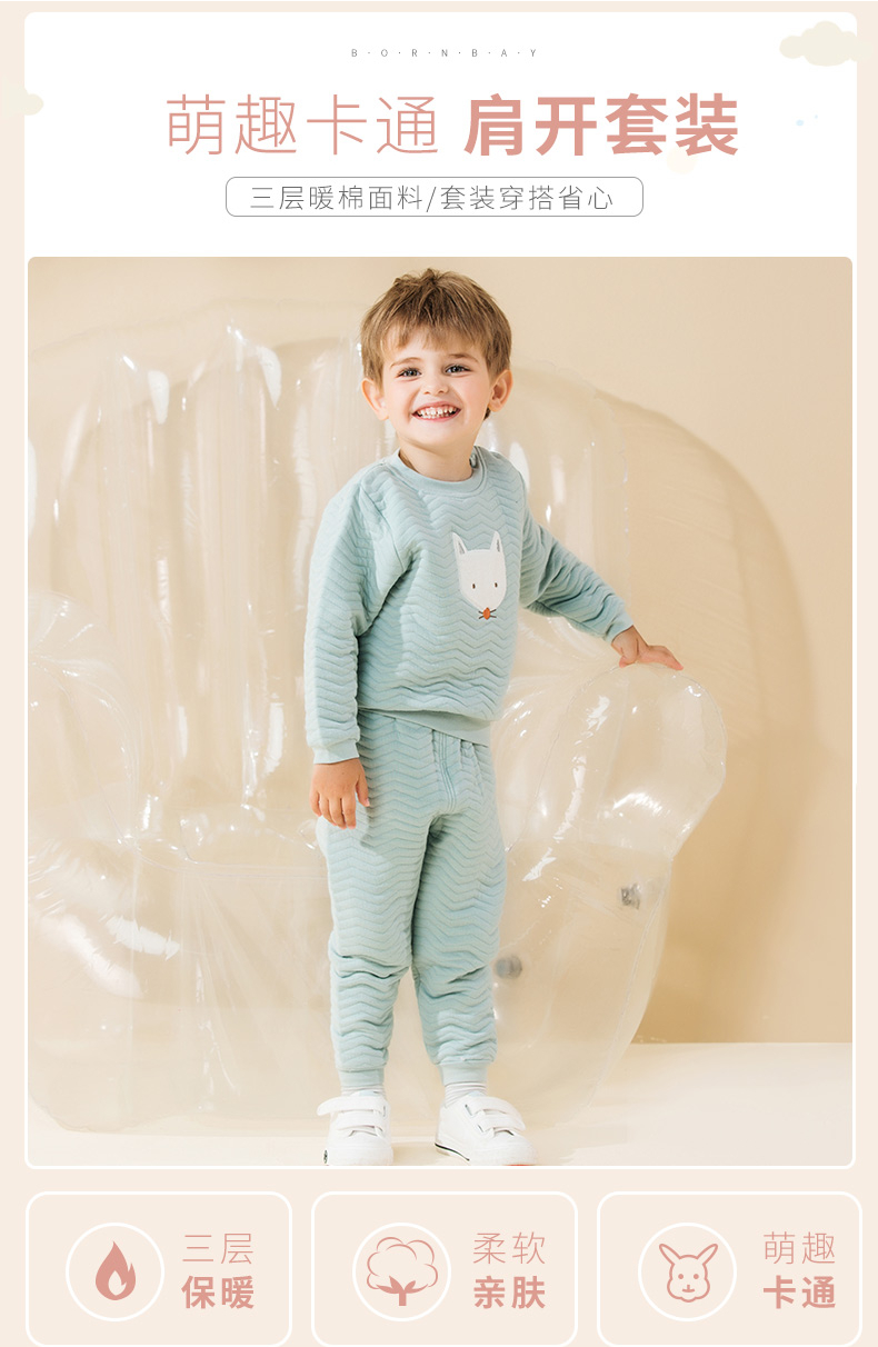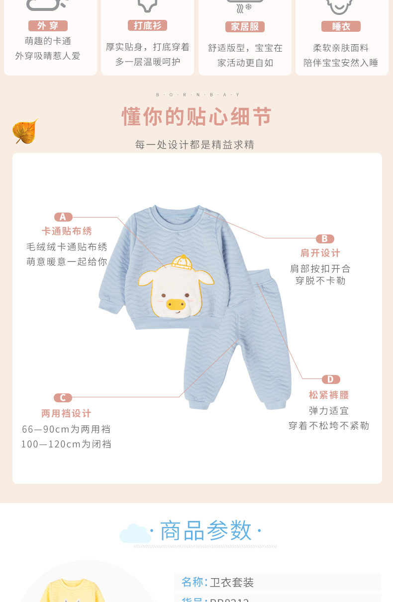 贝贝怡宝宝秋冬加厚保暖套装家居服BB8212