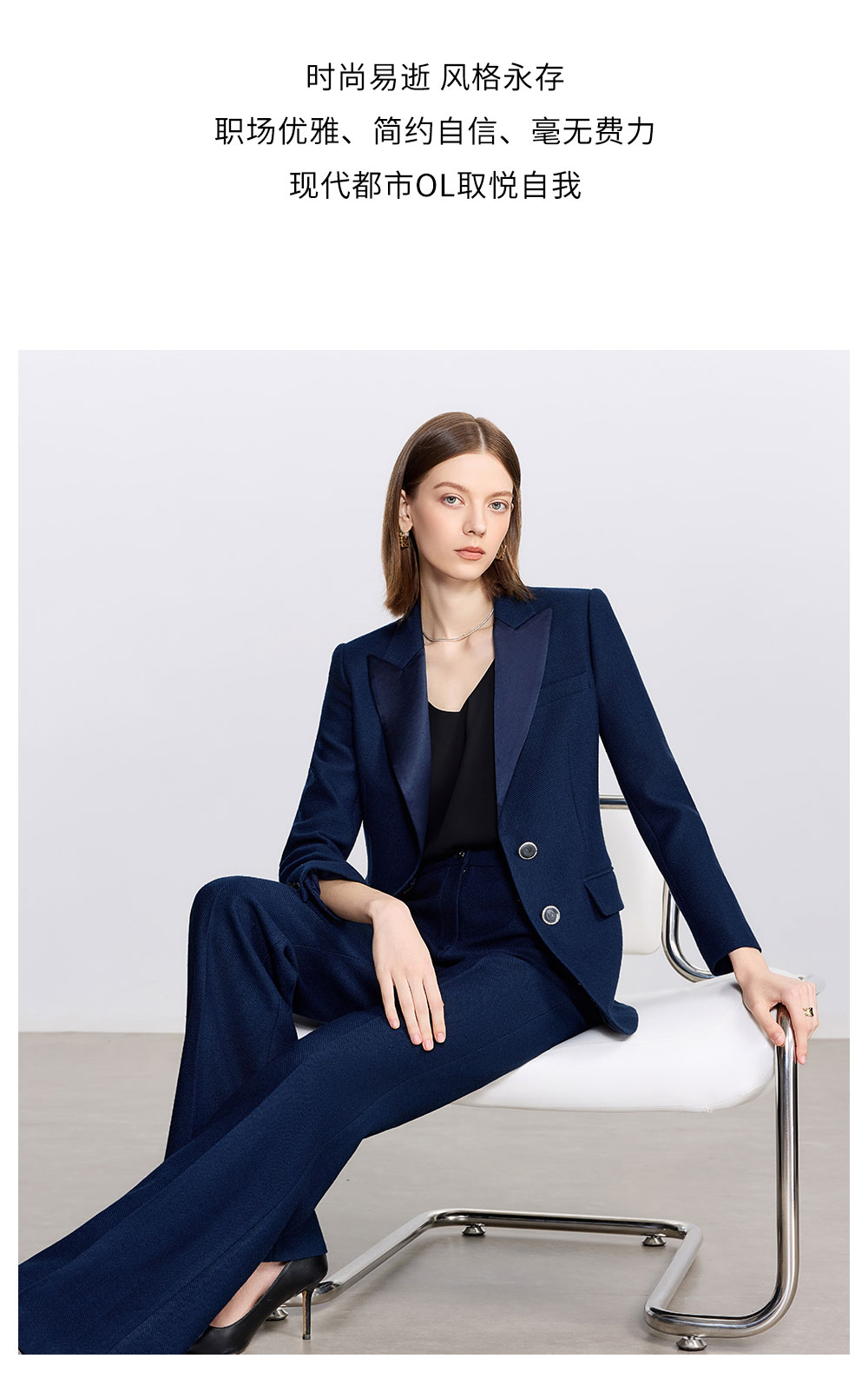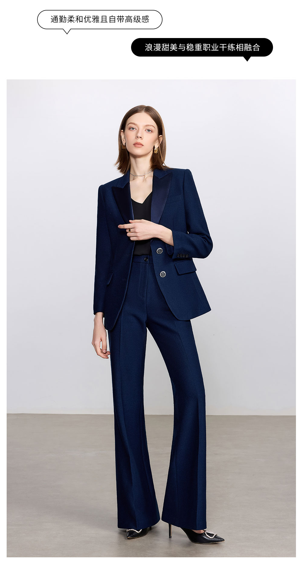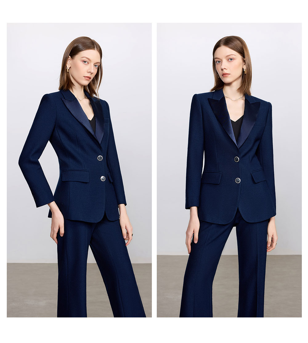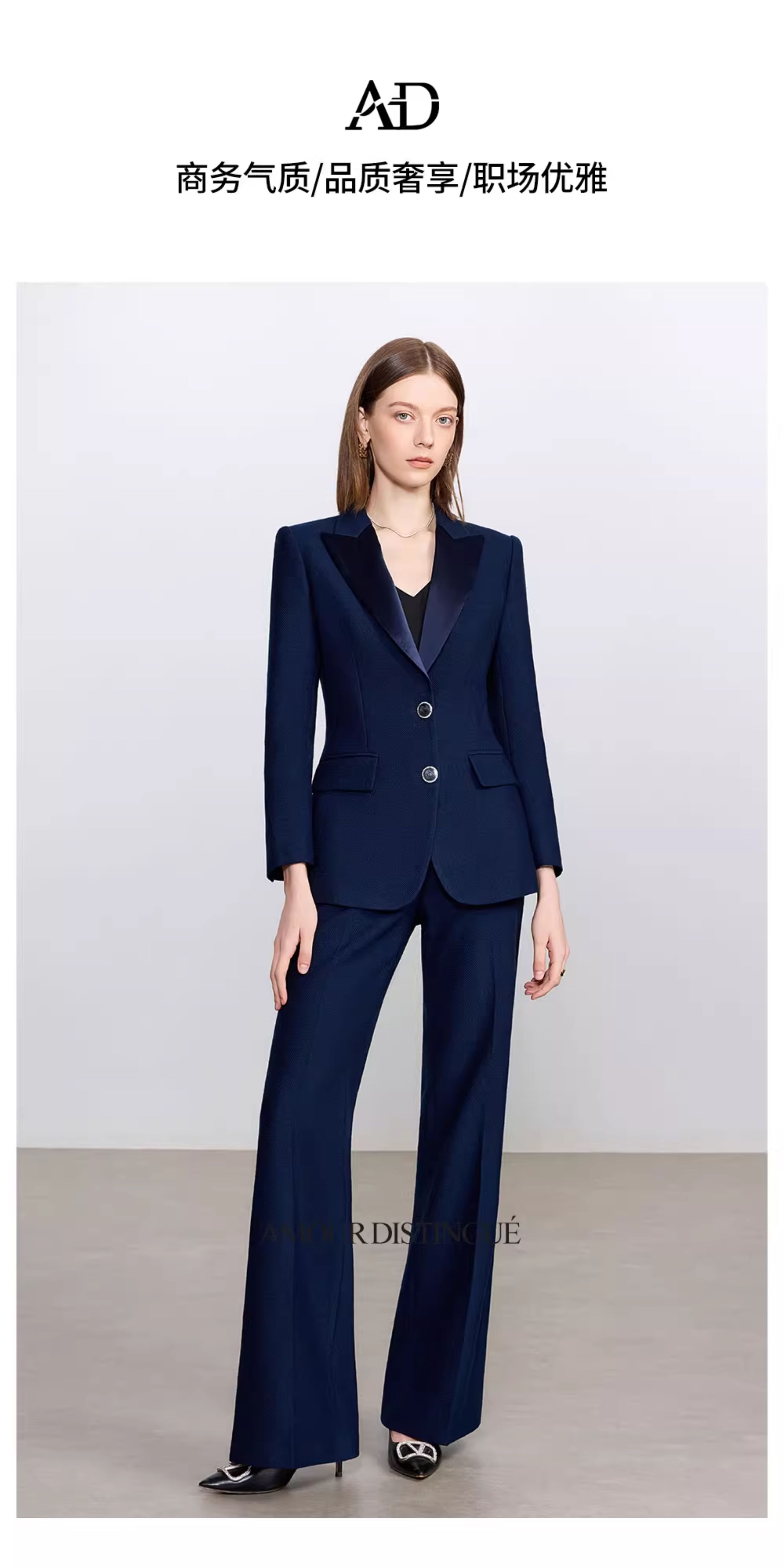 AD藏青色西装套装女高级感气质英伦风阔腿裤总裁正装加厚醋酸西服