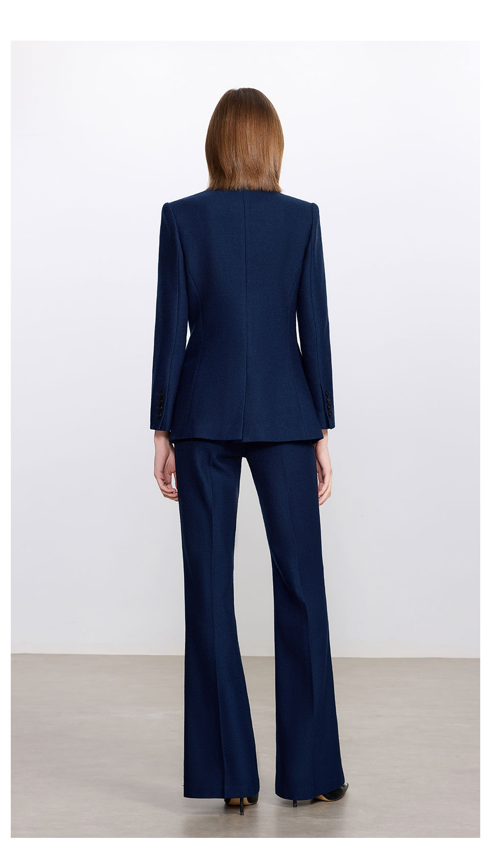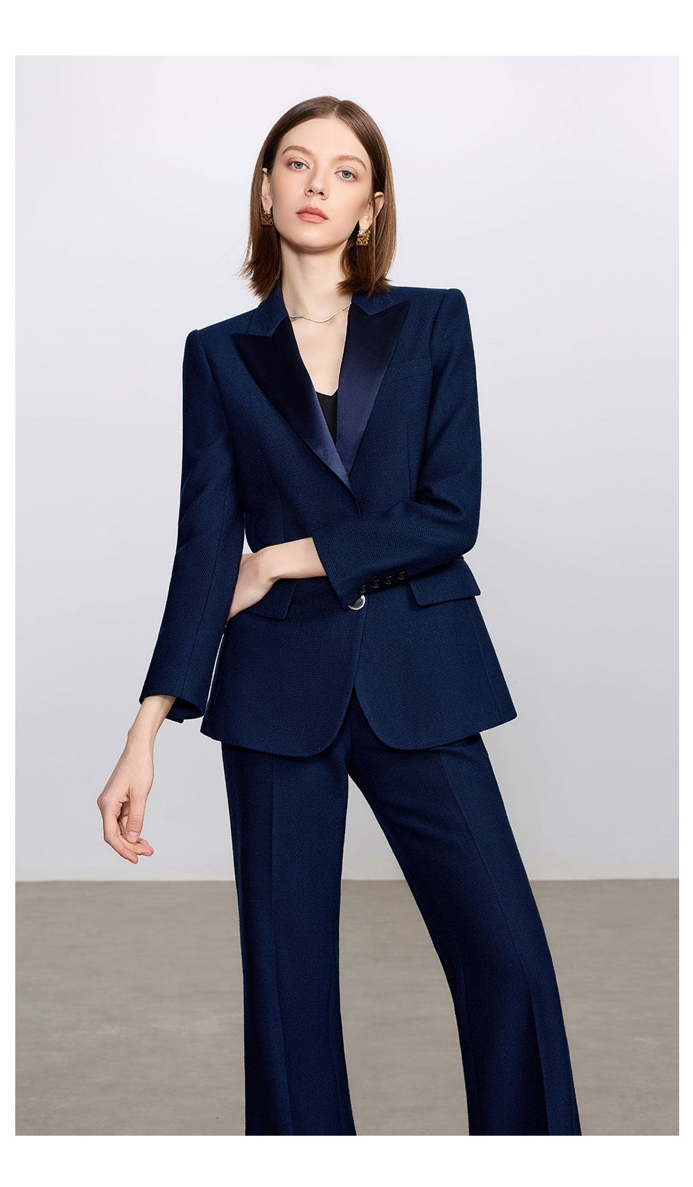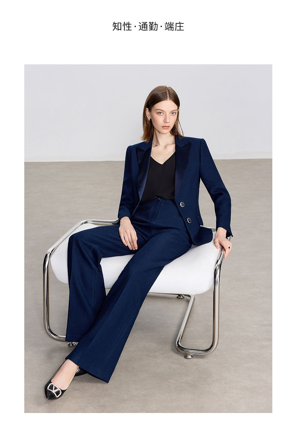 AD藏青色西装套装女高级感气质英伦风阔腿裤总裁正装加厚醋酸西服