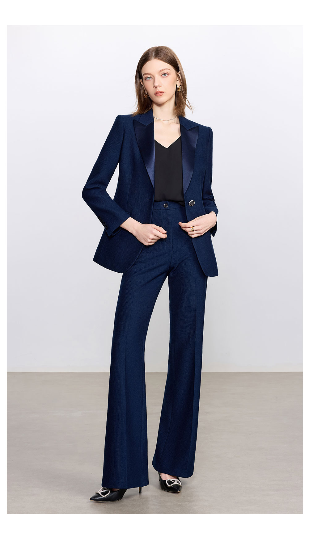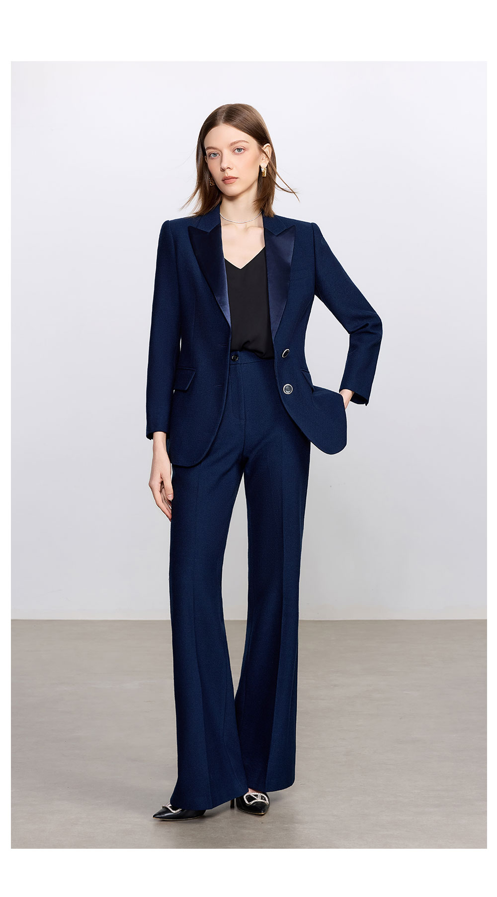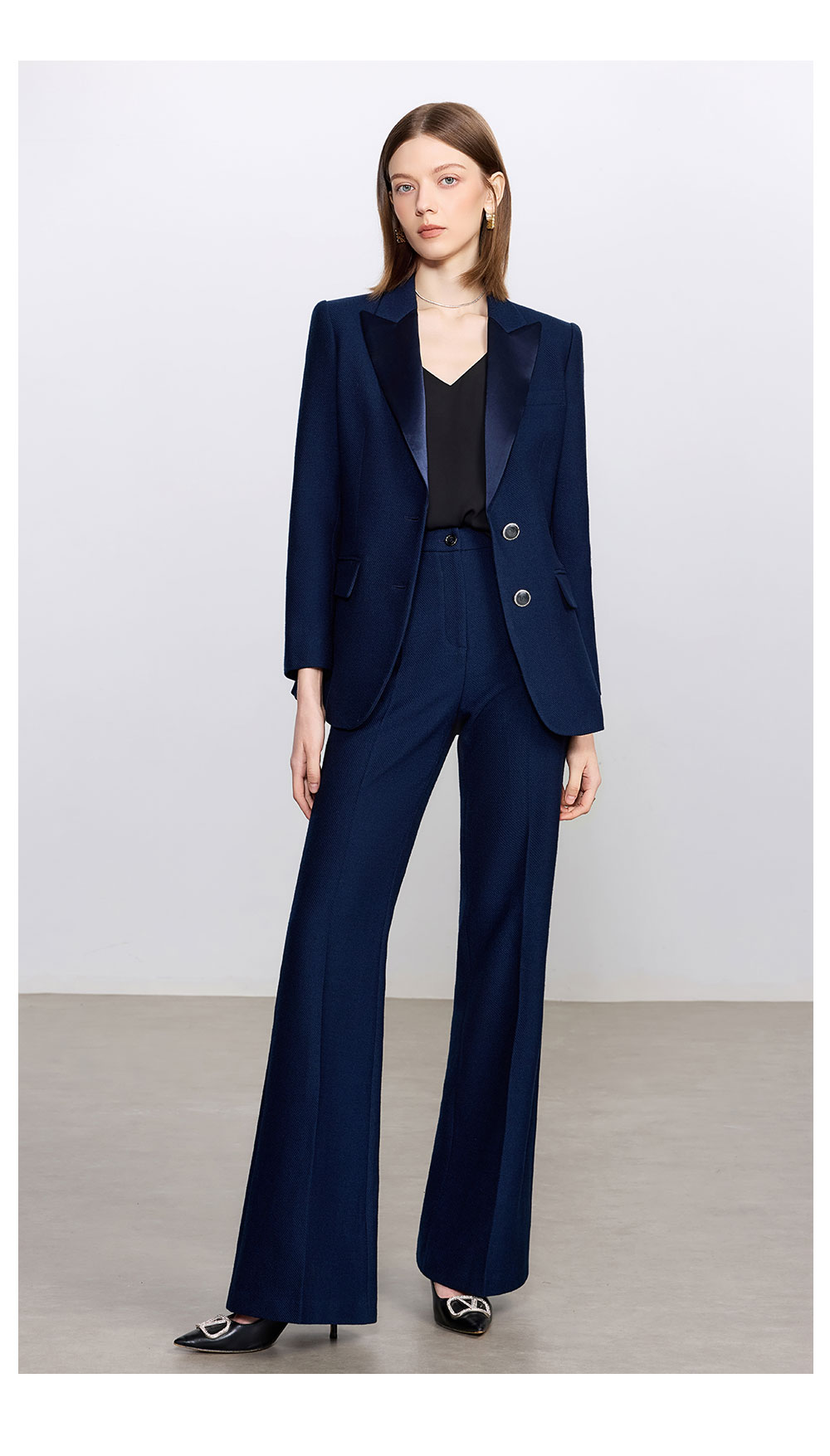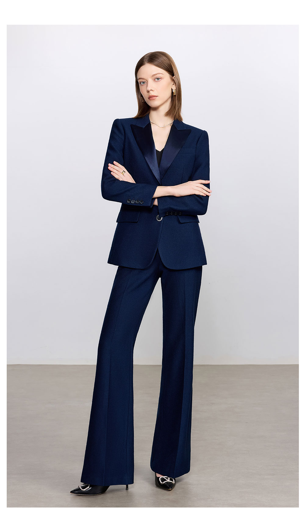 AD藏青色西装套装女高级感气质英伦风阔腿裤总裁正装加厚醋酸西服