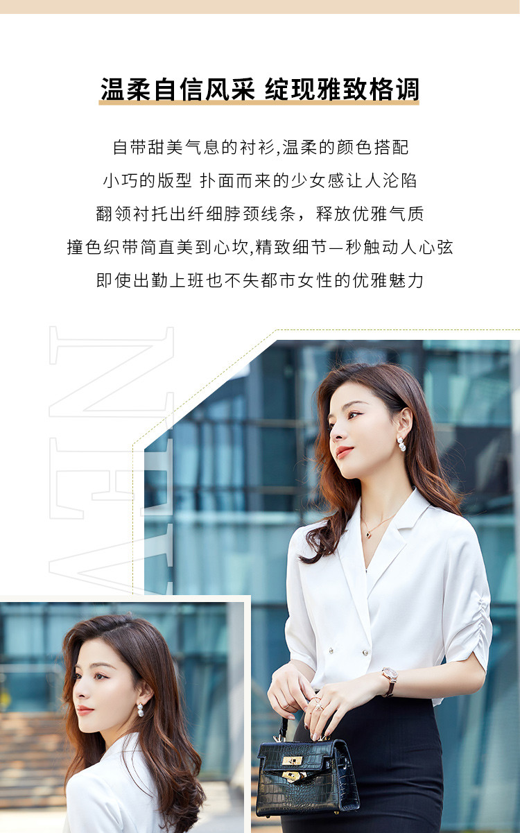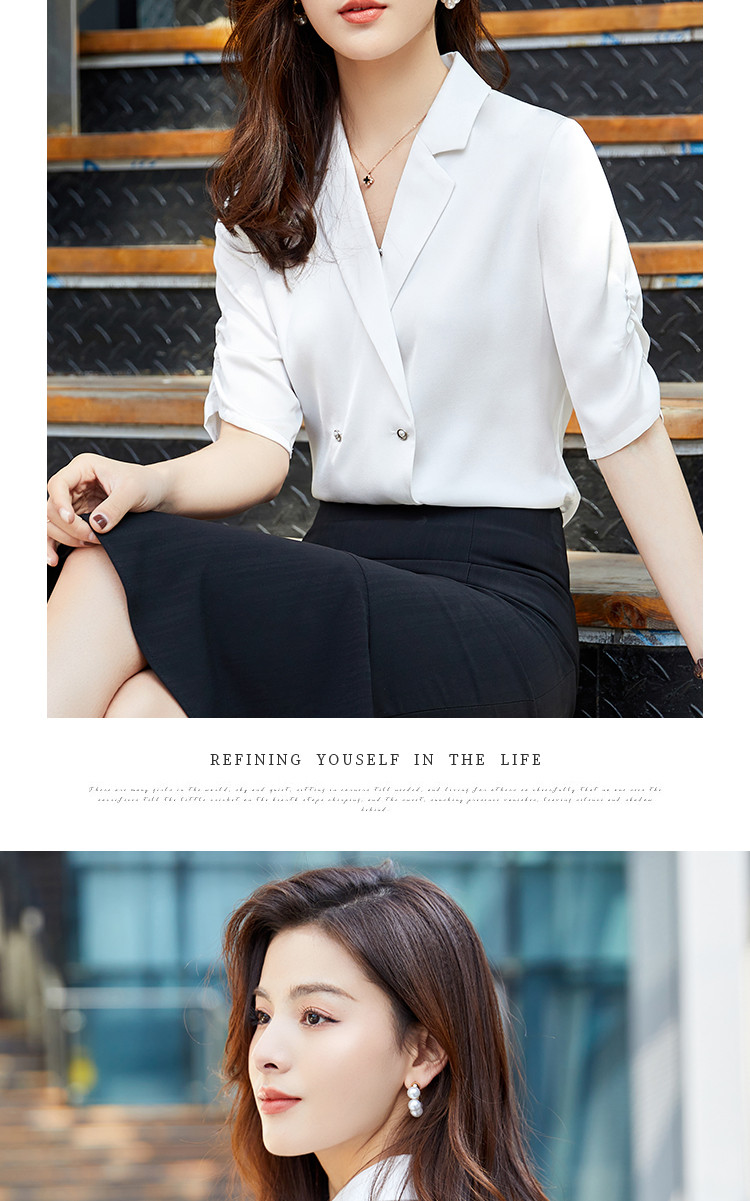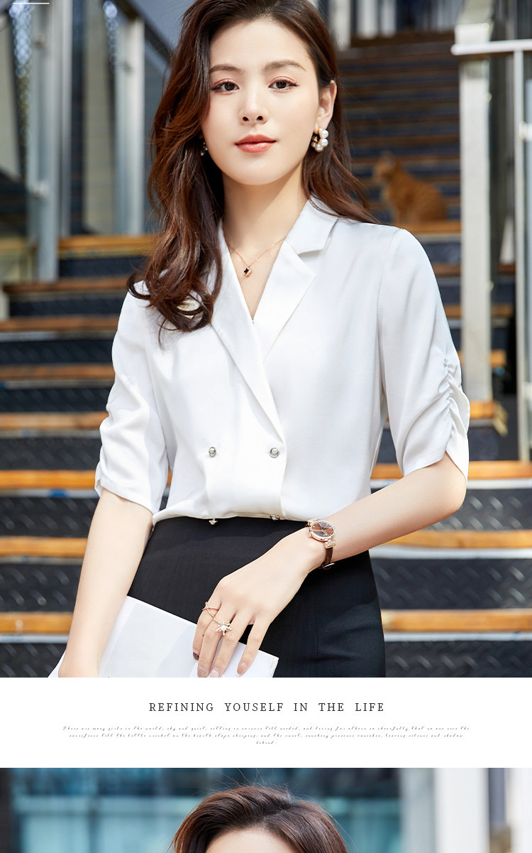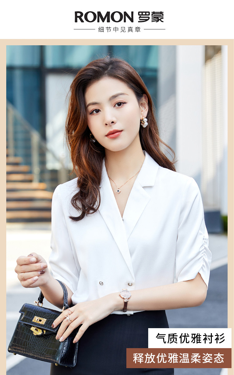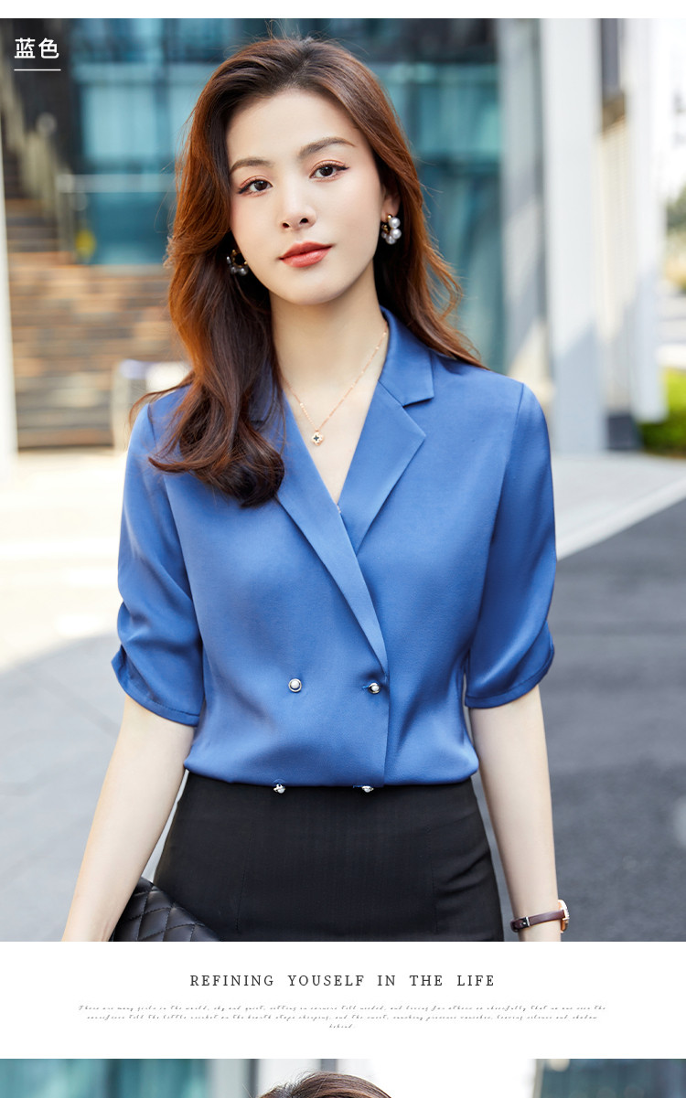 罗蒙衬衫女短袖夏季薄款西装领双排扣通勤气质女士衬衣