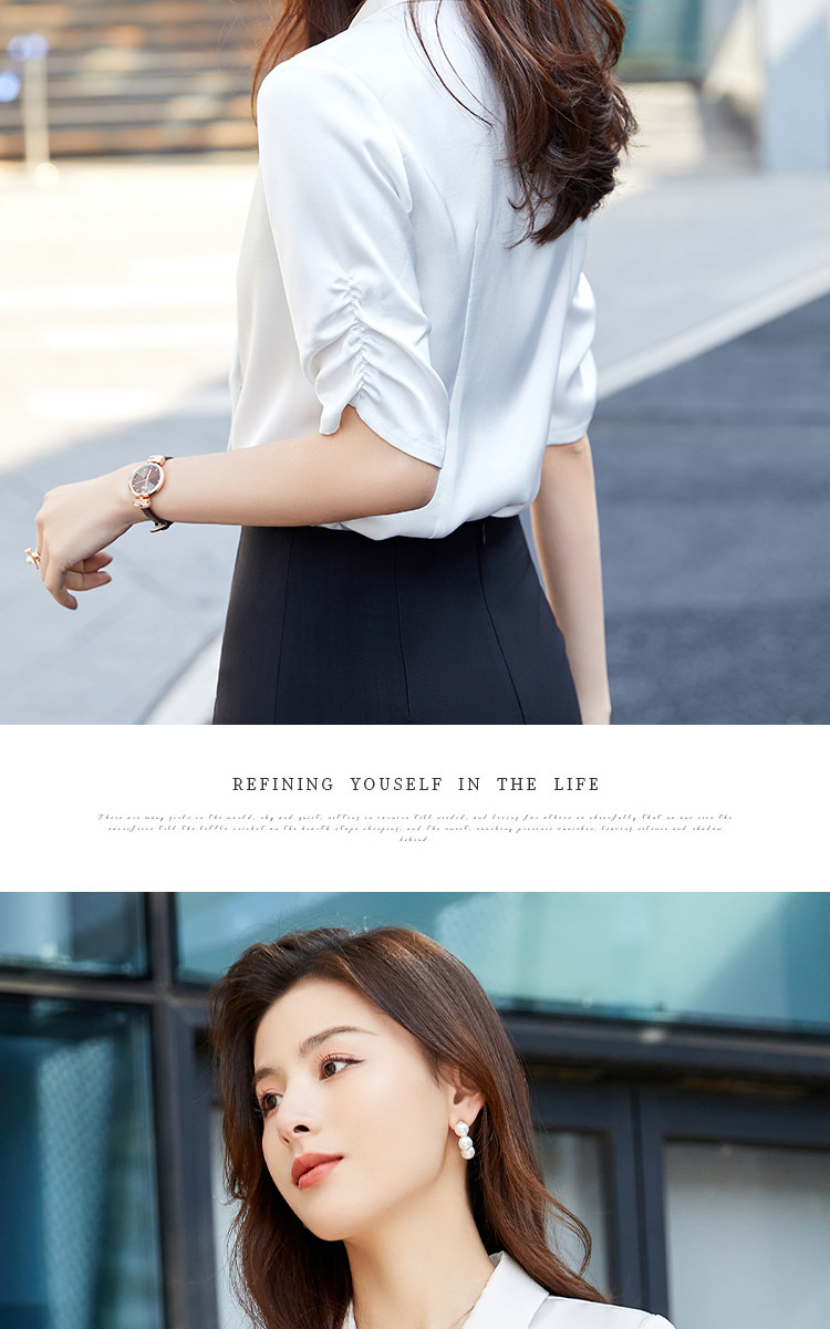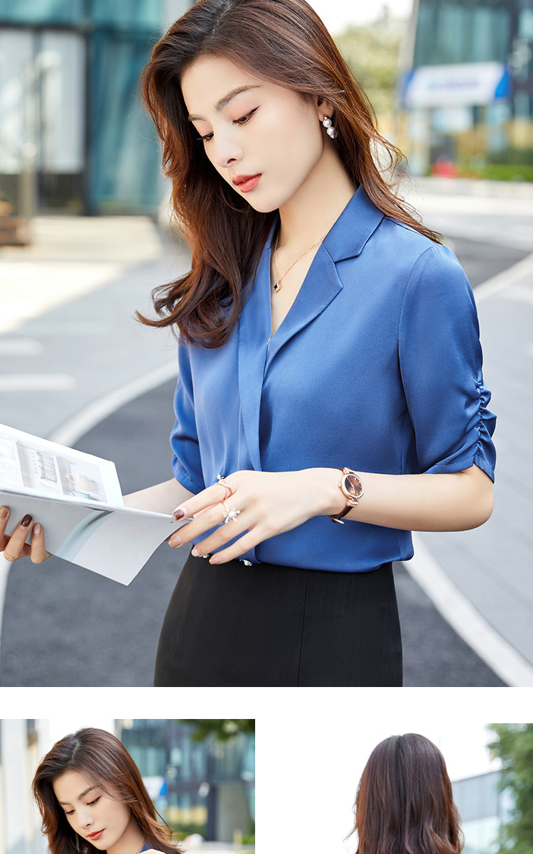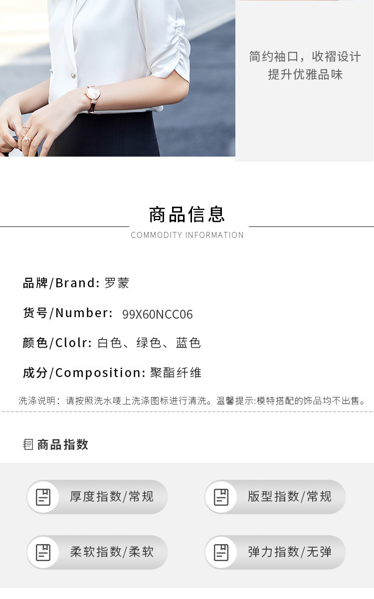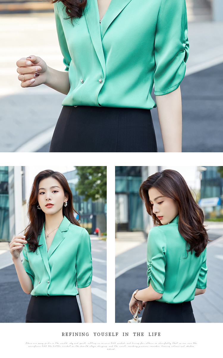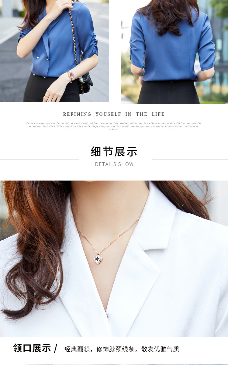 罗蒙衬衫女短袖夏季薄款西装领双排扣通勤气质女士衬衣