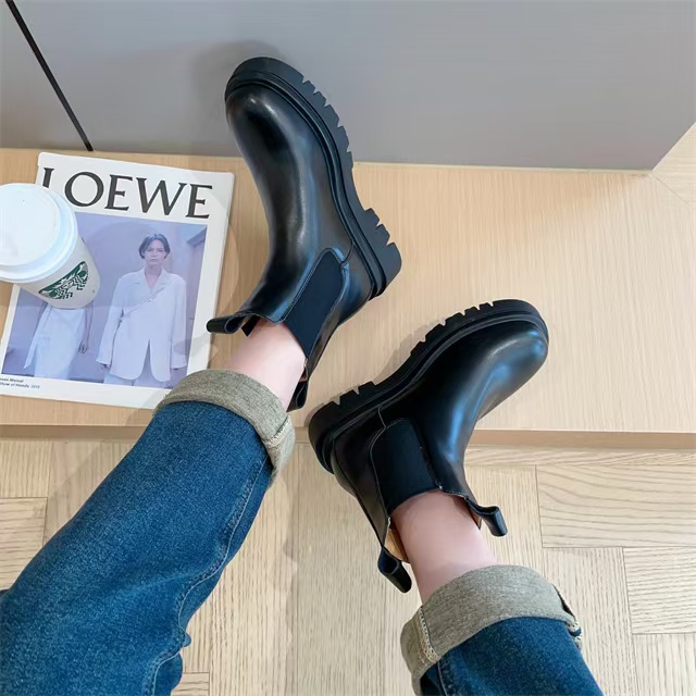 一双没有多余装饰,干净利落,自带增高,拉长比例切尔西靴~