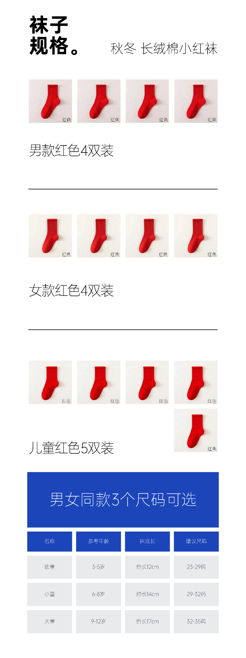袜尖尖 新年小红袜 男士/女士/儿童 不勒脚不脱落 柔软舒适