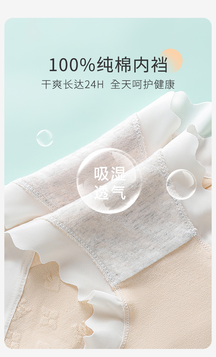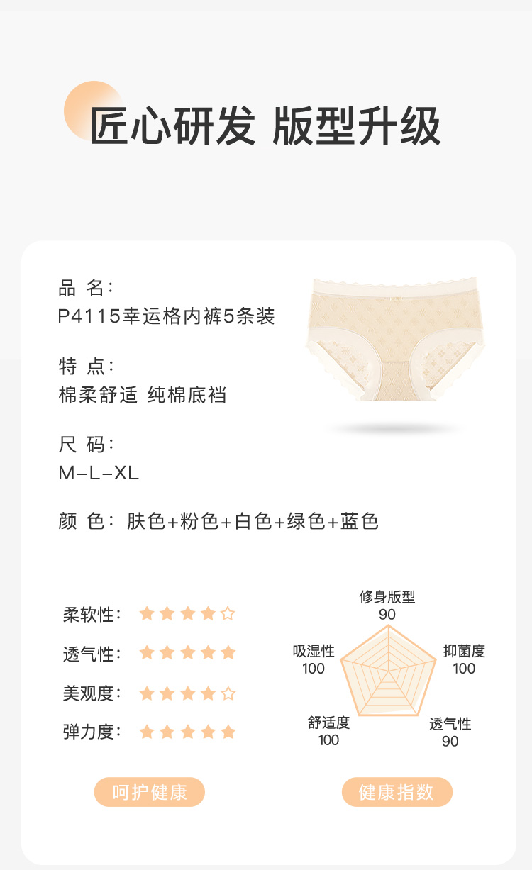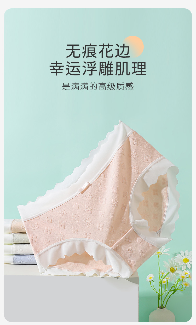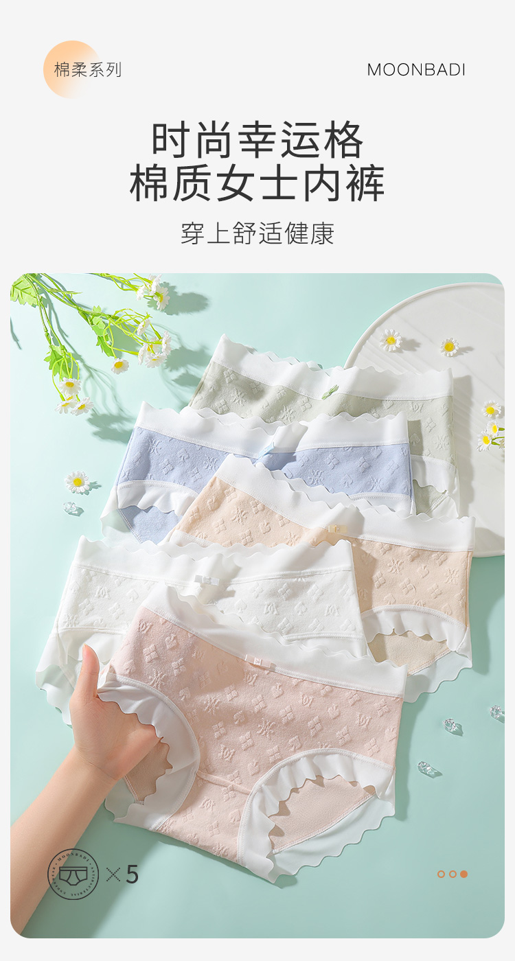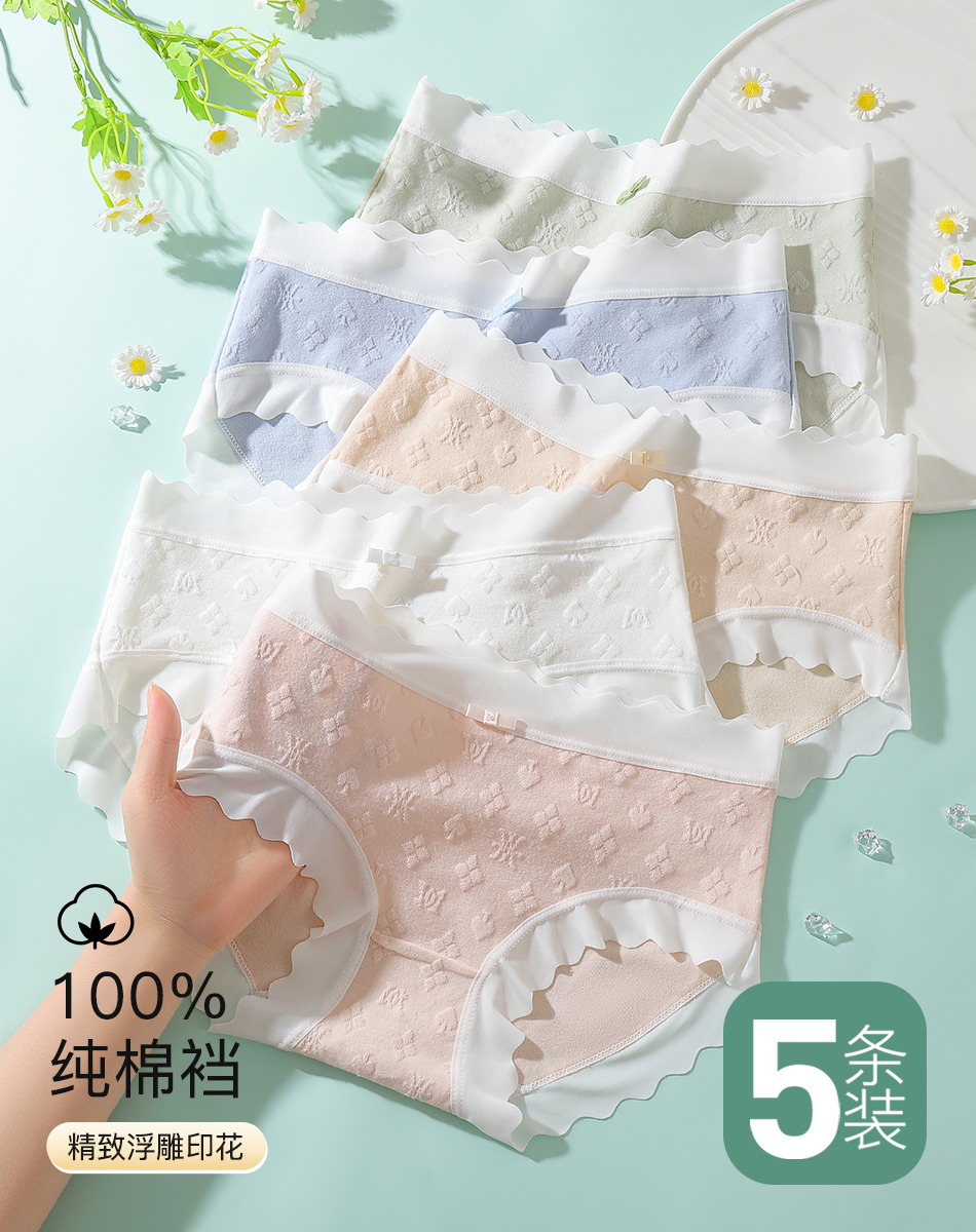 7A抑菌【5条装】内裤女舒适透气100%棉裆高弹舒适不夹臀P4115幸运格内裤