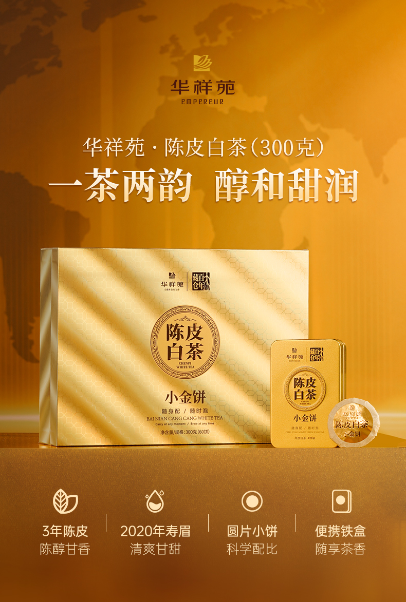 华祥苑-300g陈皮白茶小金饼