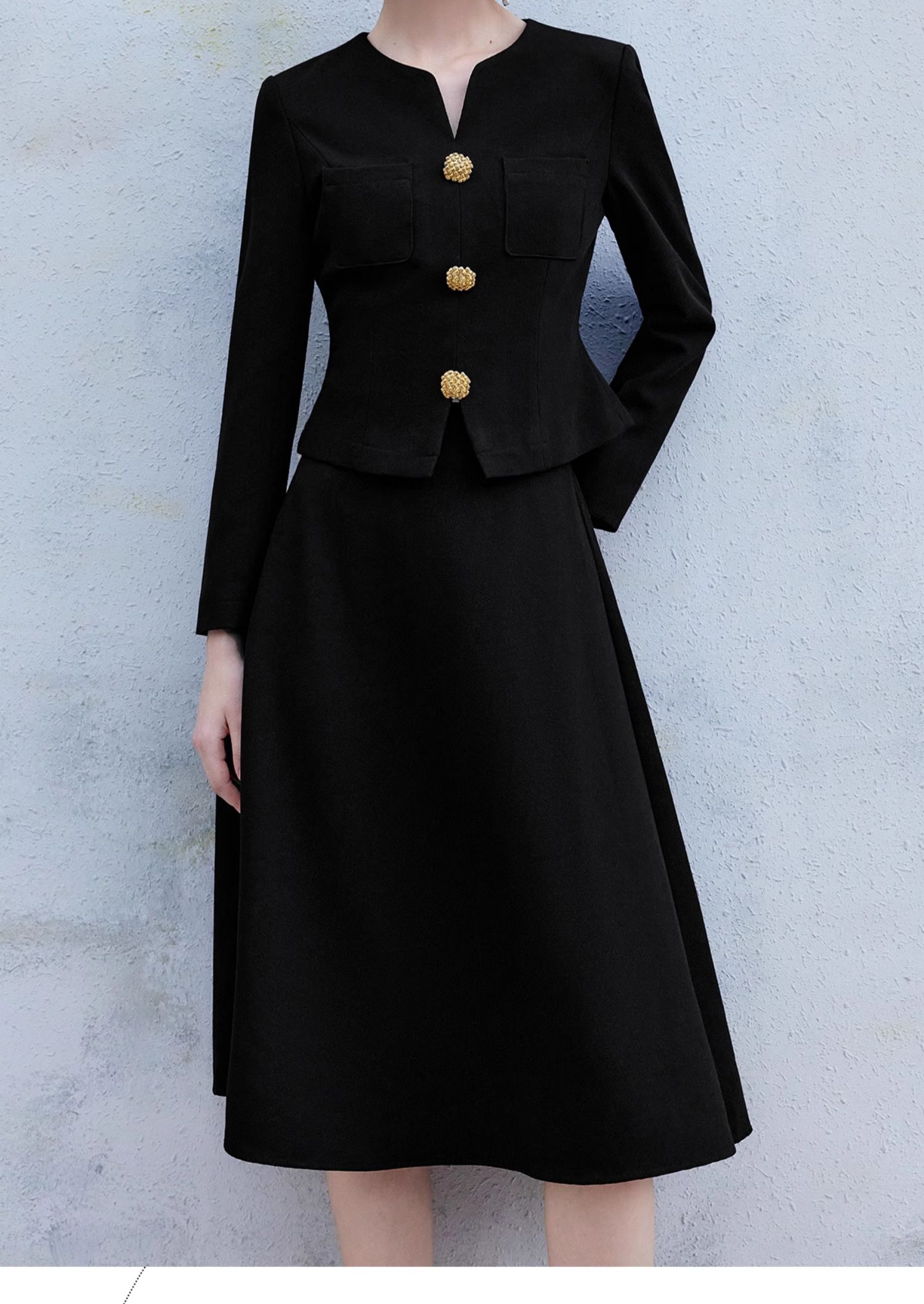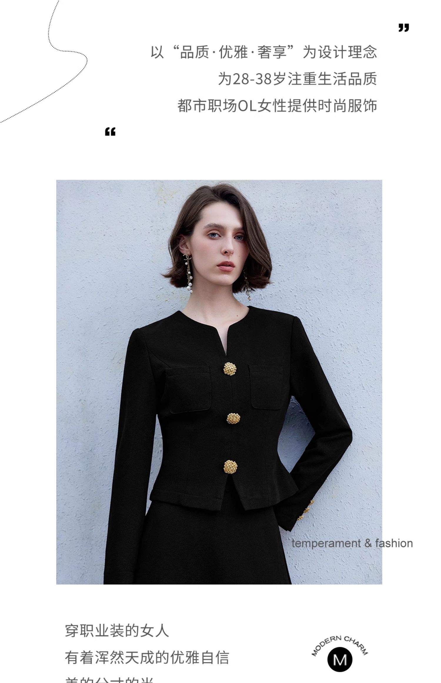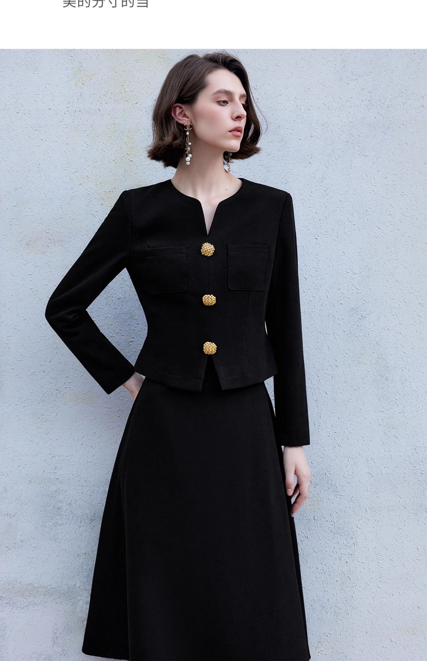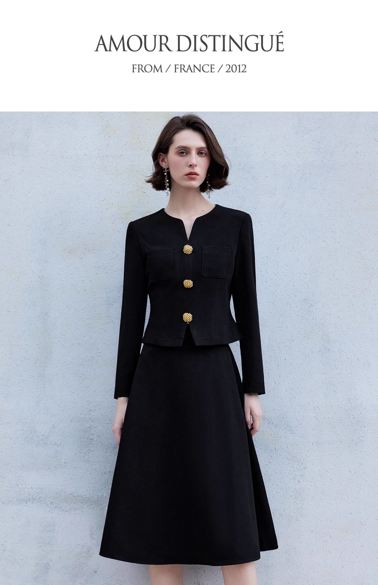 AD高级感小V领西装套装裙女2024新款短外套收腰西服裙子两件套秋