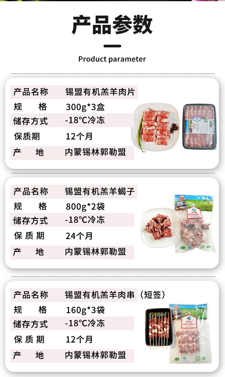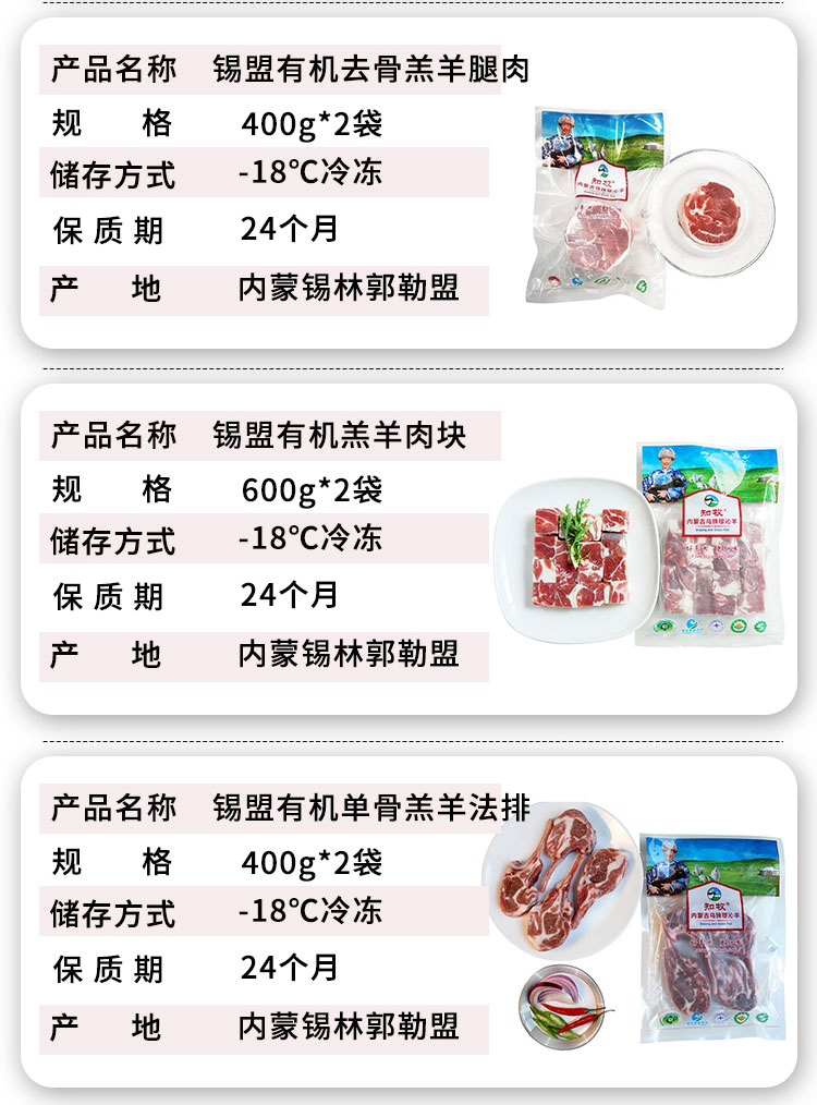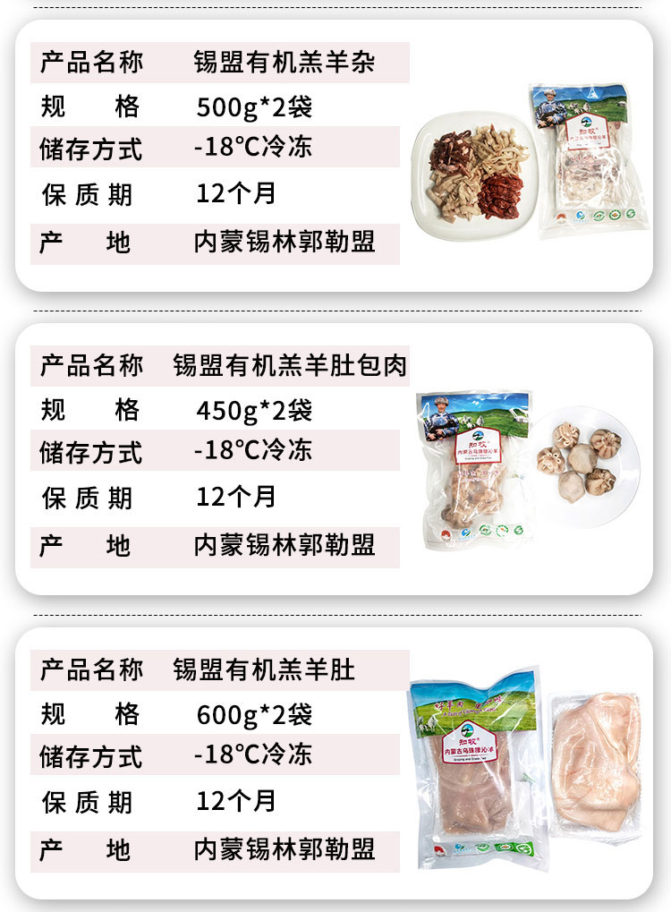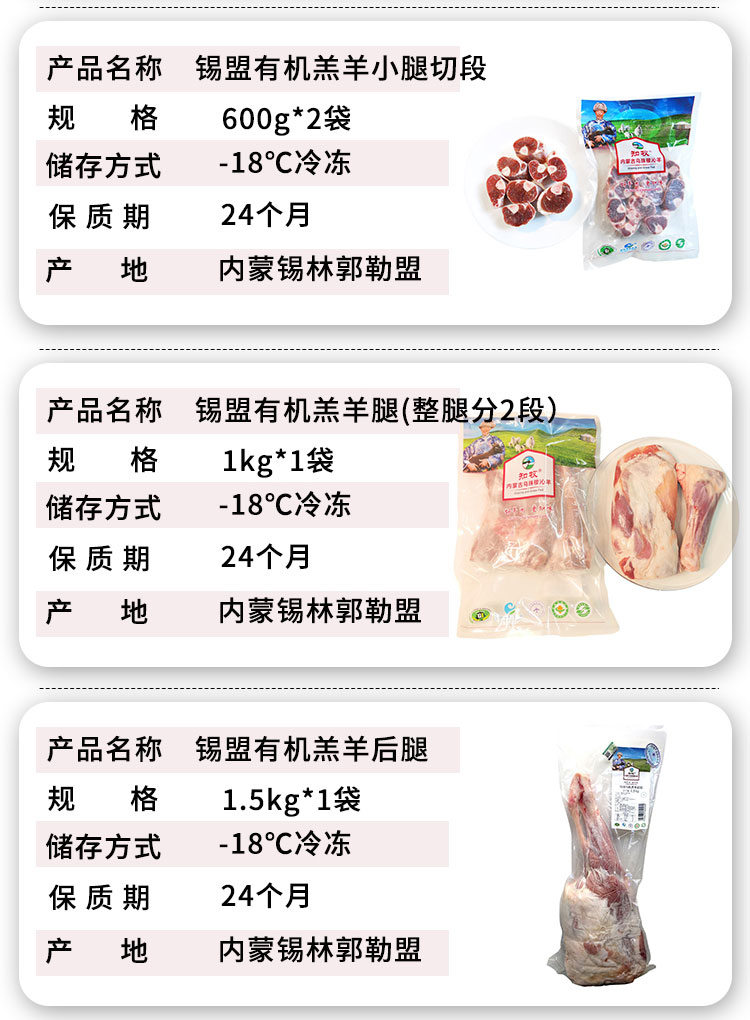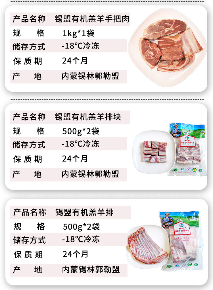 【厂商直发】锡盟有机羔羊肉片多部位可选手把肉羊排肉馅羊腿羊肝羊肚蝎子包邮