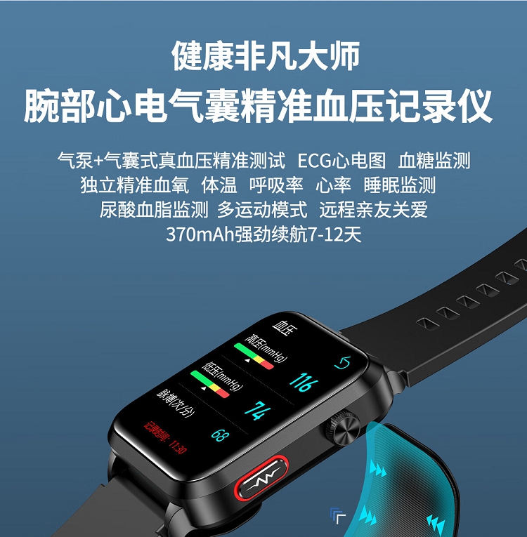 Lefit 气泵加压式血压心率智能手表腕部记录仪手表高精准监测量仪老人血压健康男女通用S11