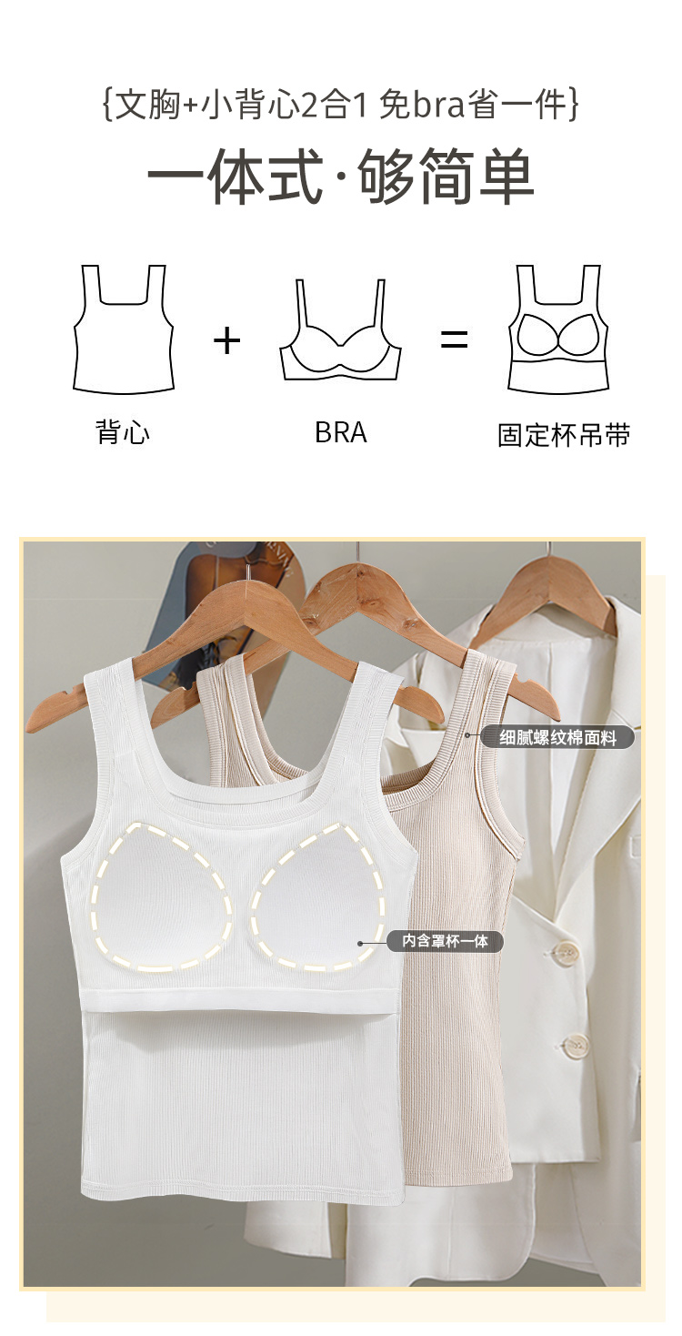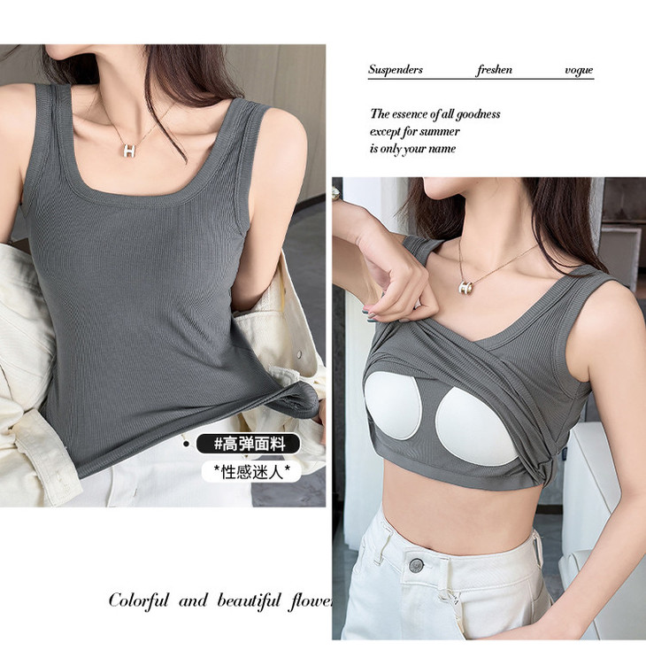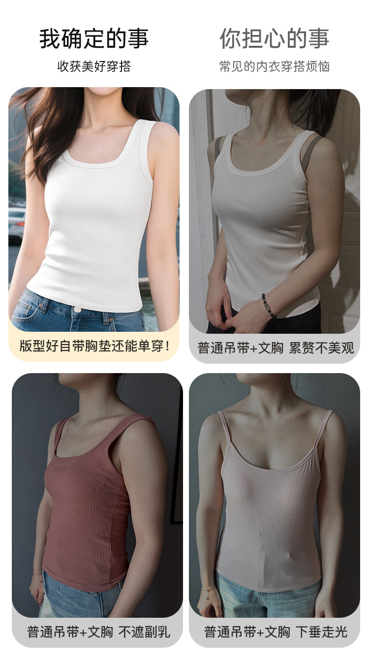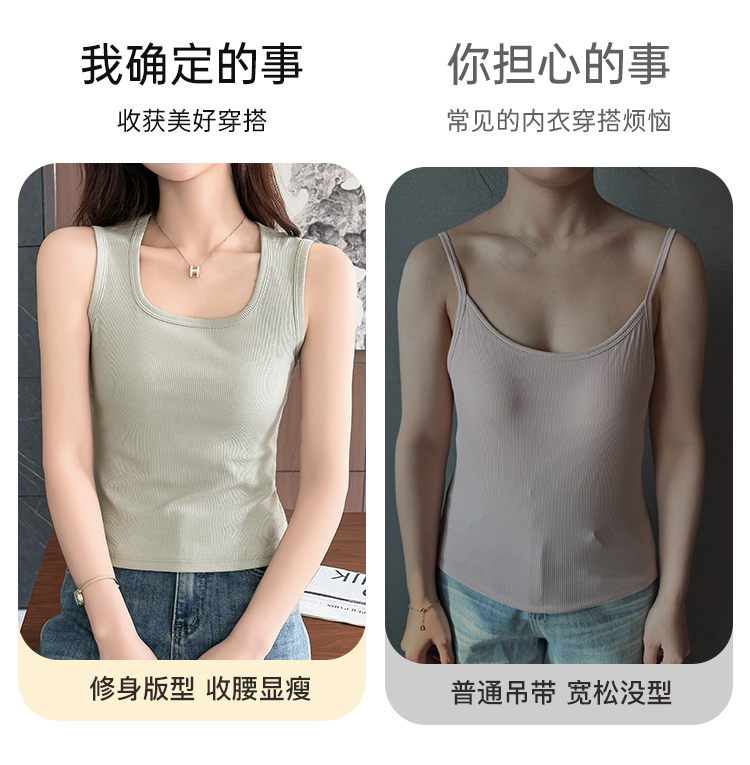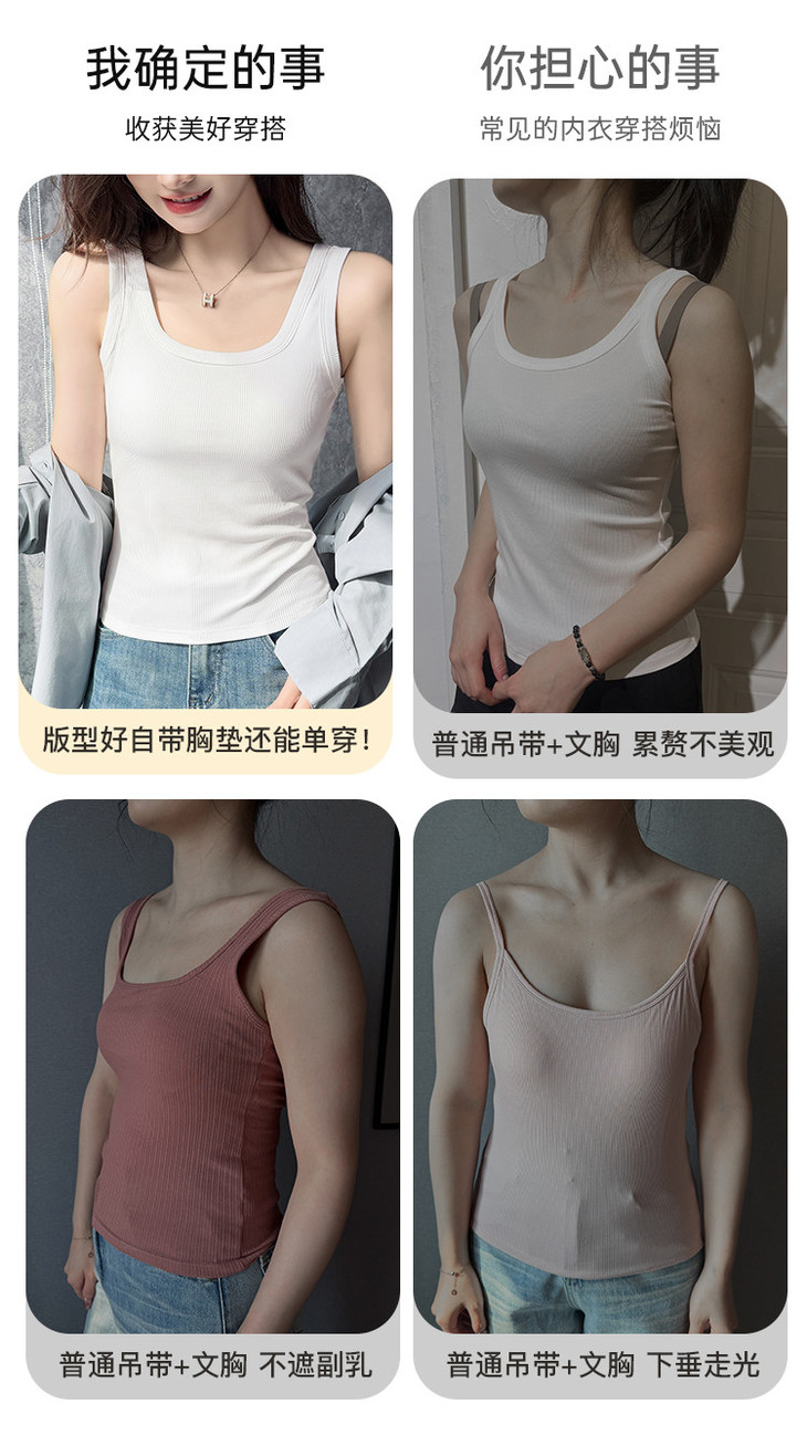 C2-【文胸背心二合一 带胸垫】时尚百搭显瘦打底背心女士吊带可外穿 淑清雅致+雨后青提