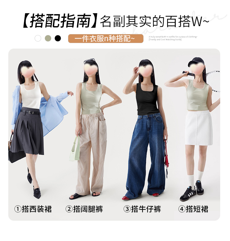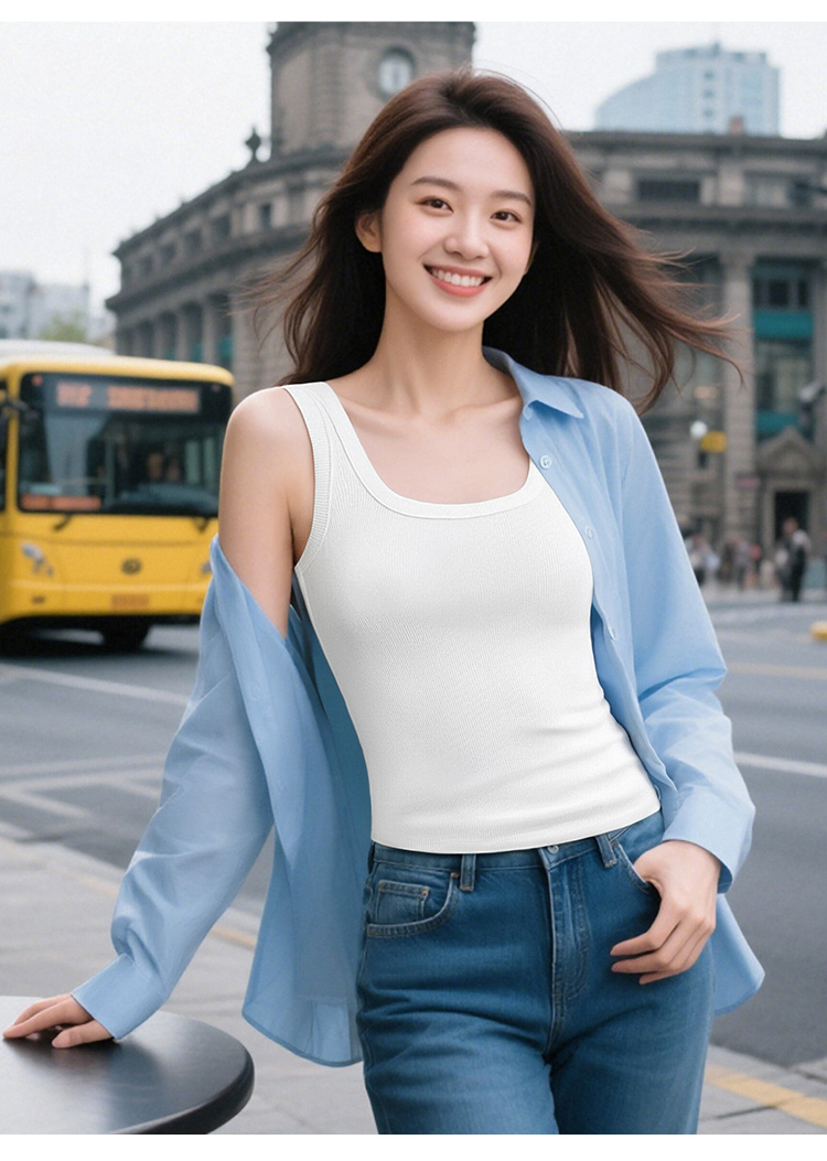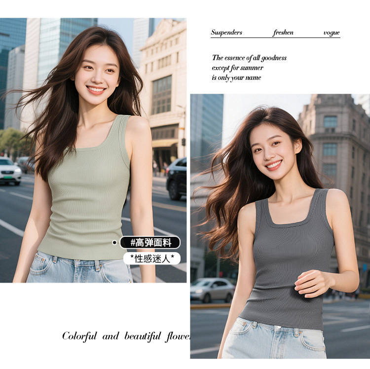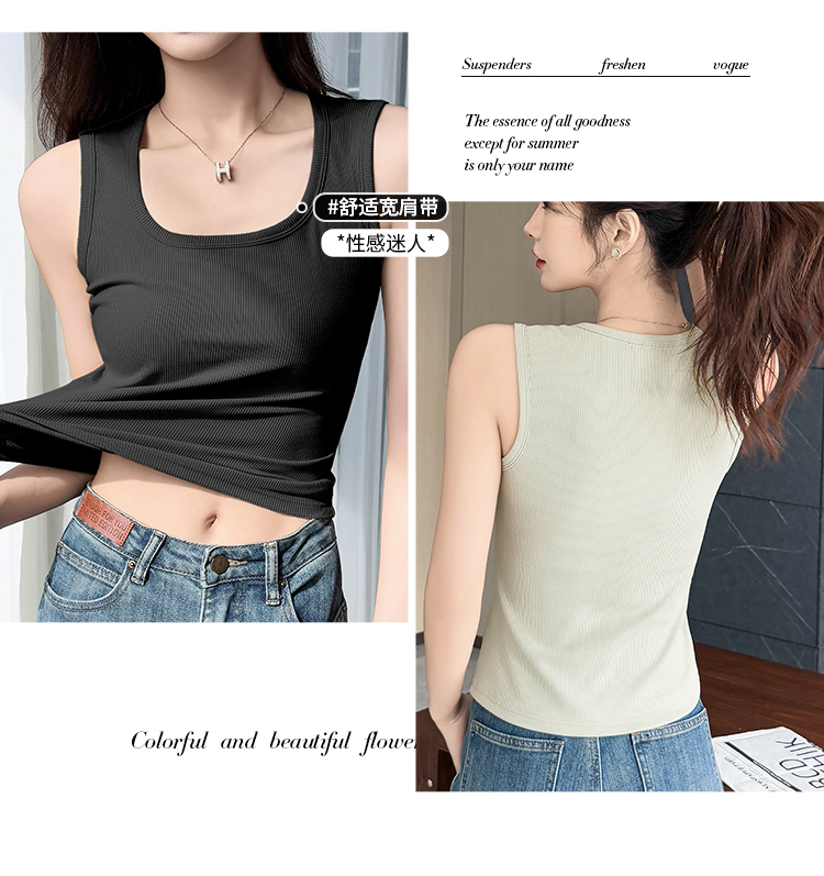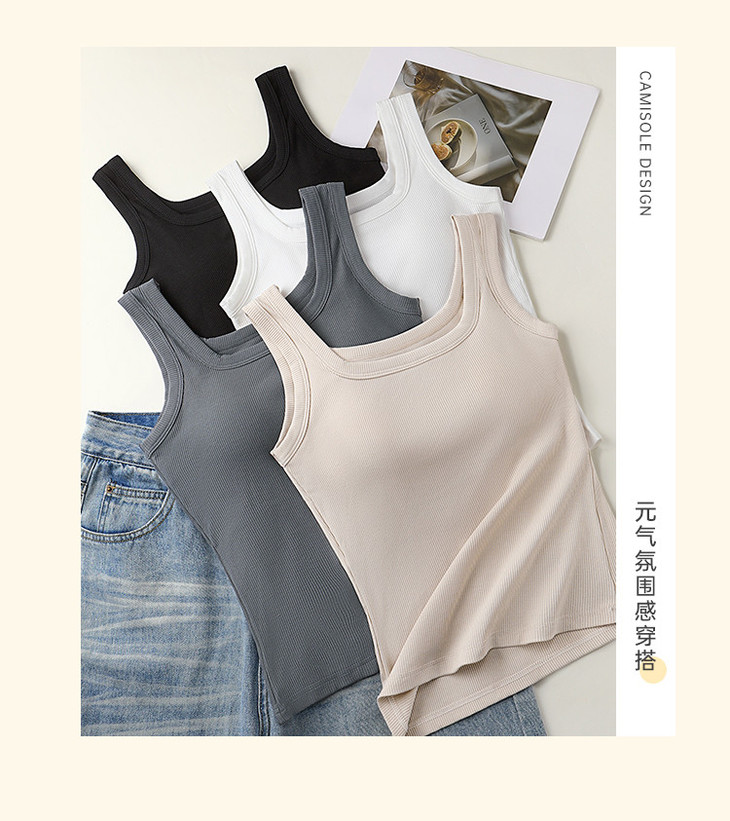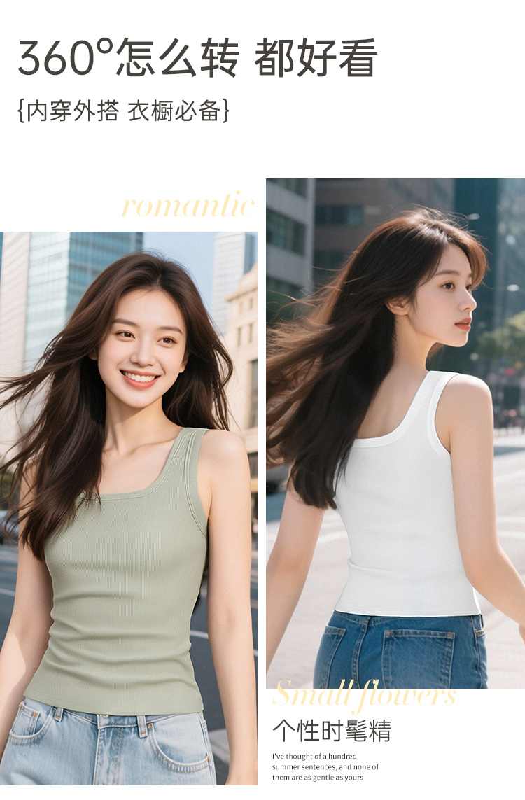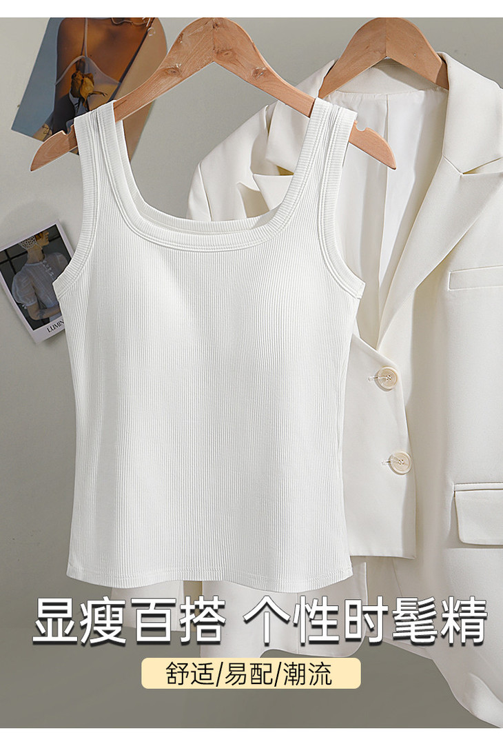 C2-【文胸背心二合一 带胸垫】时尚百搭显瘦打底背心女士吊带可外穿 淑清雅致+雨后青提