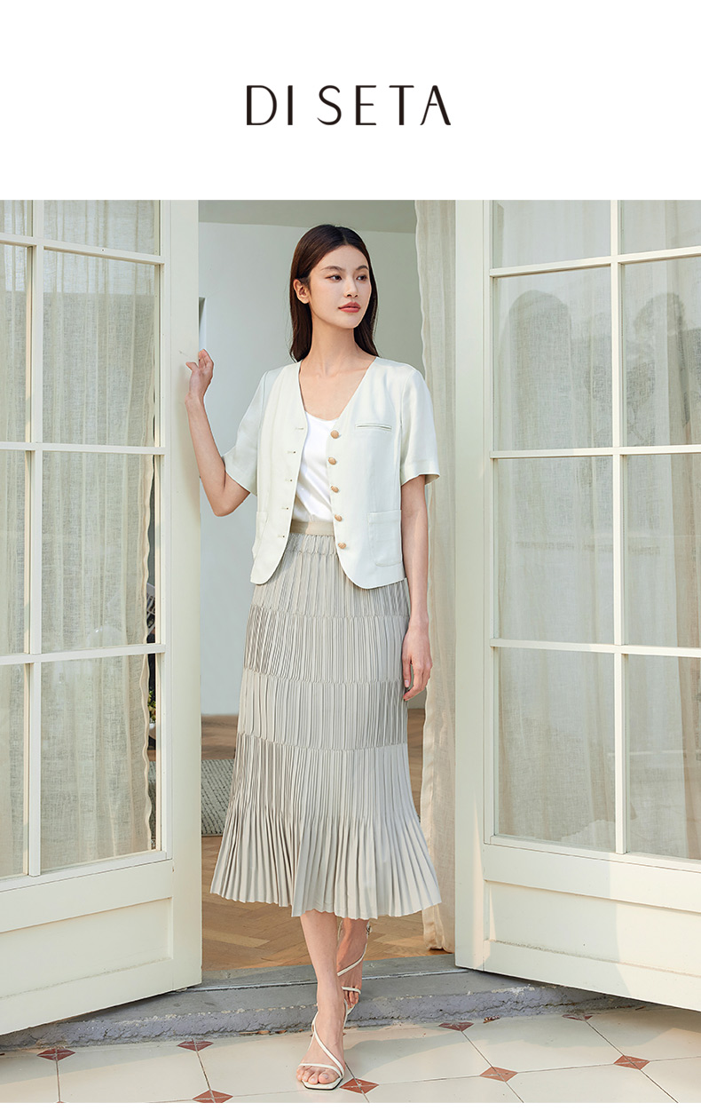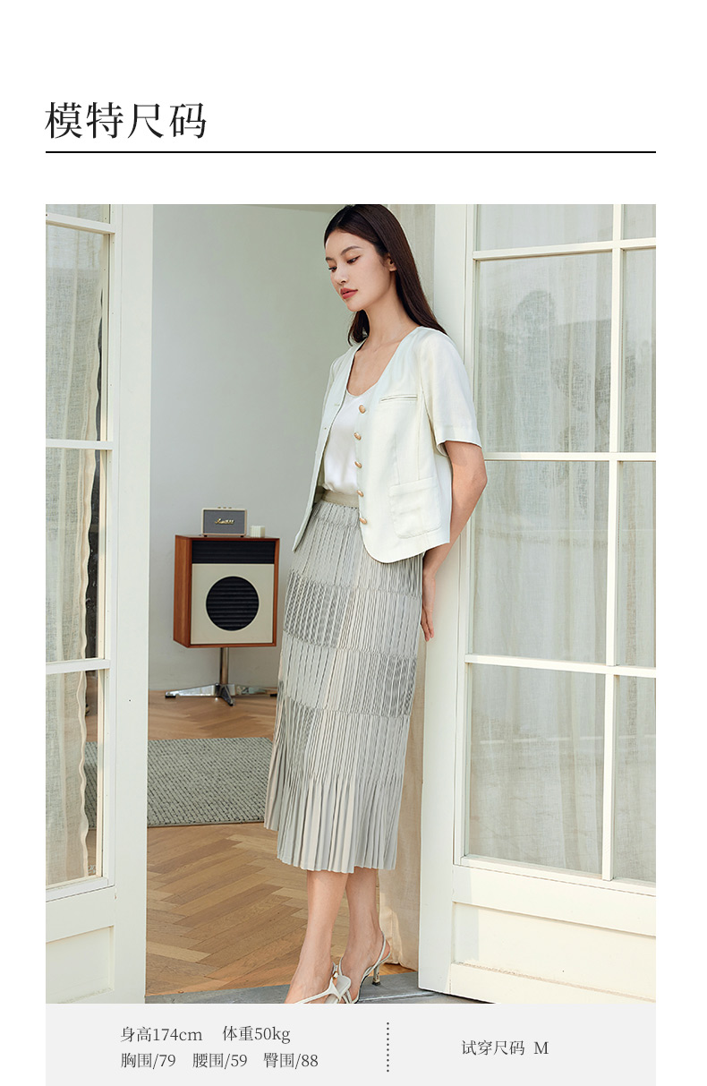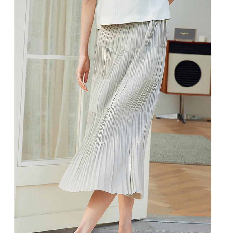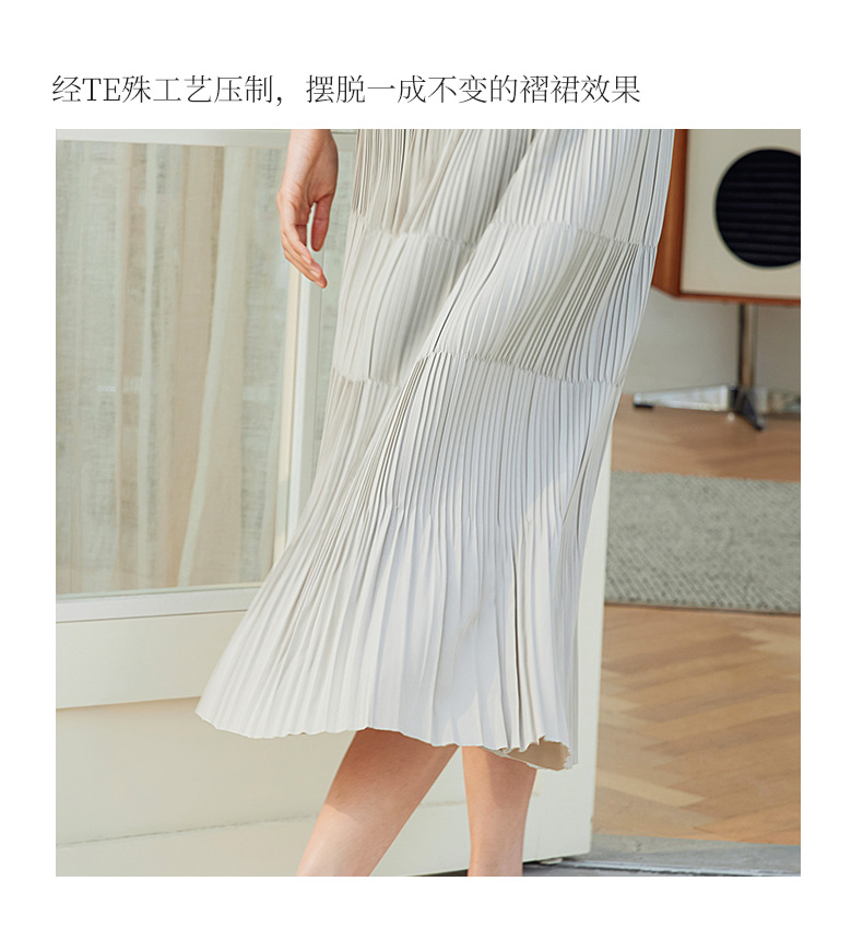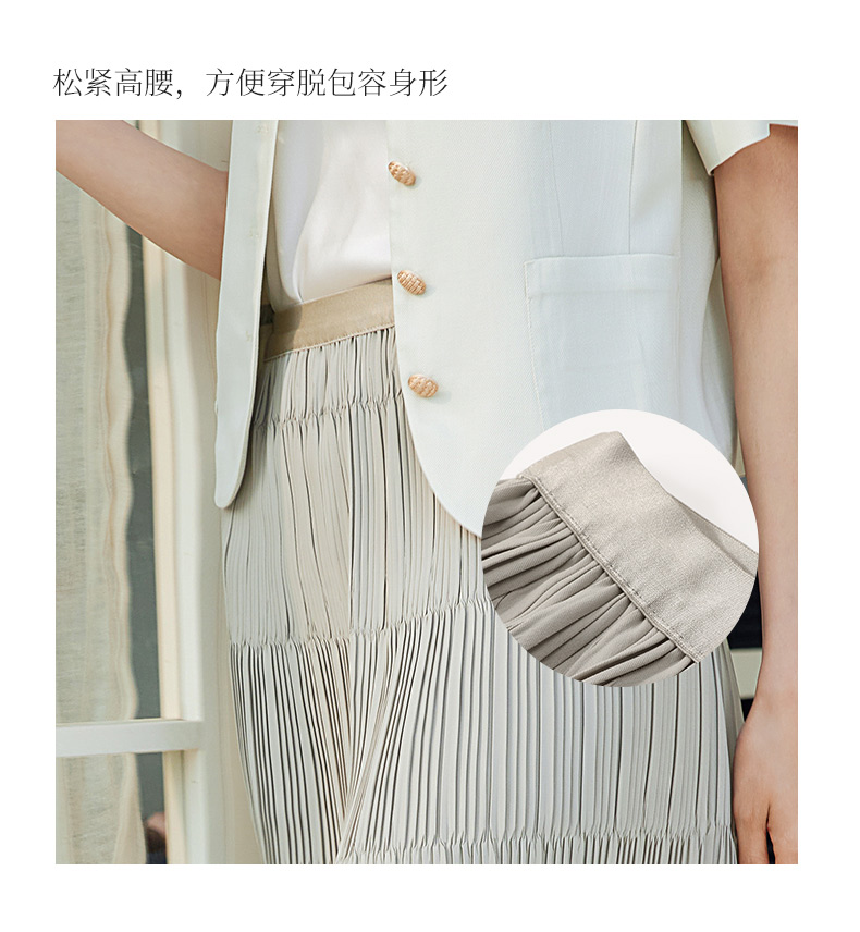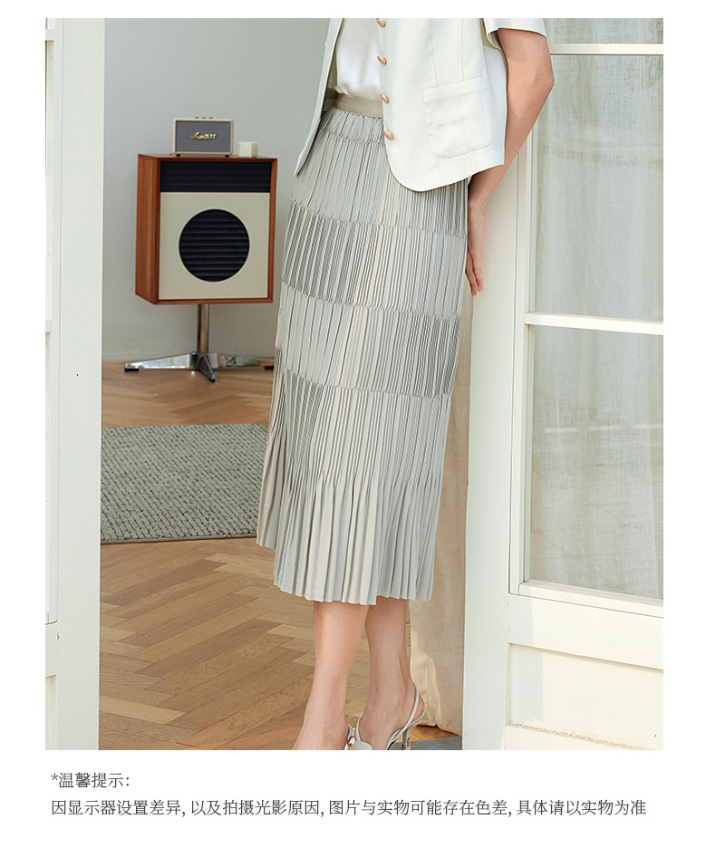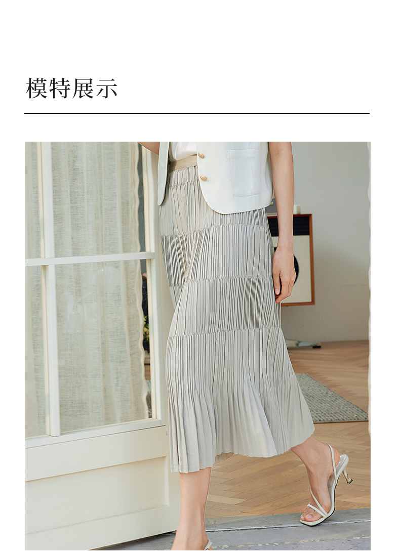 玳莎松紧腰百褶裙女2024春季新款时尚简约拼接设计感A字裙半身裙 EA34302