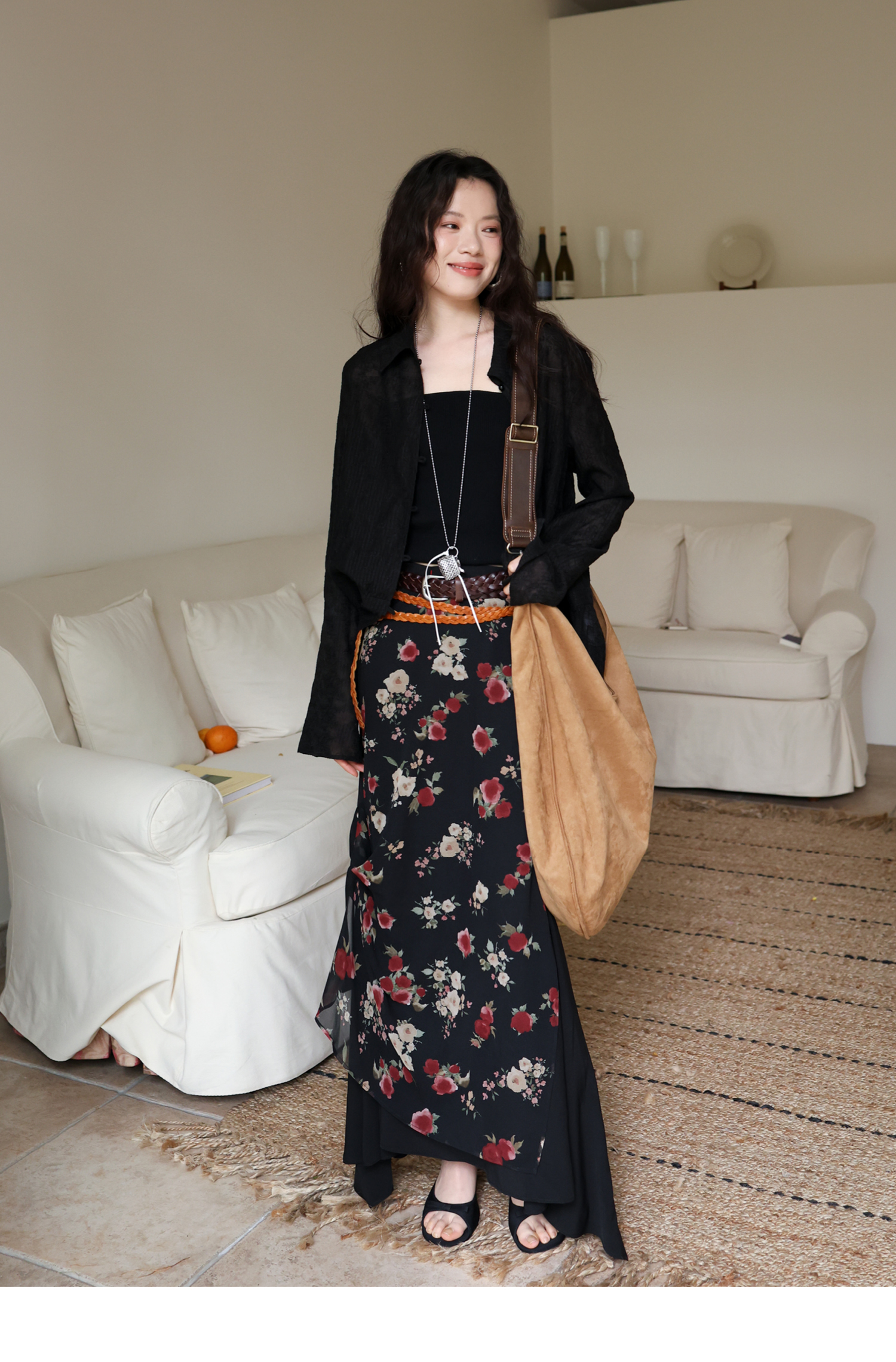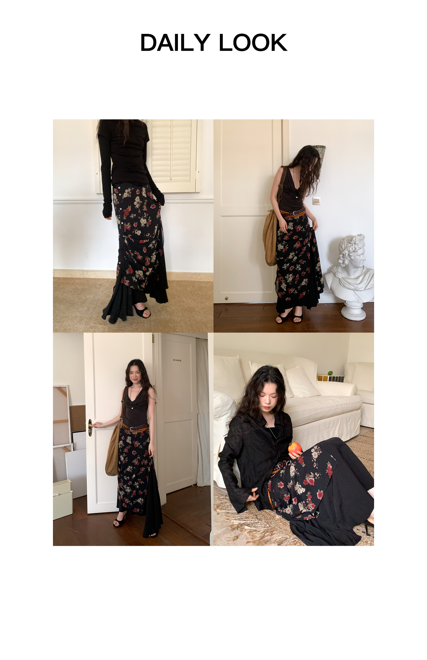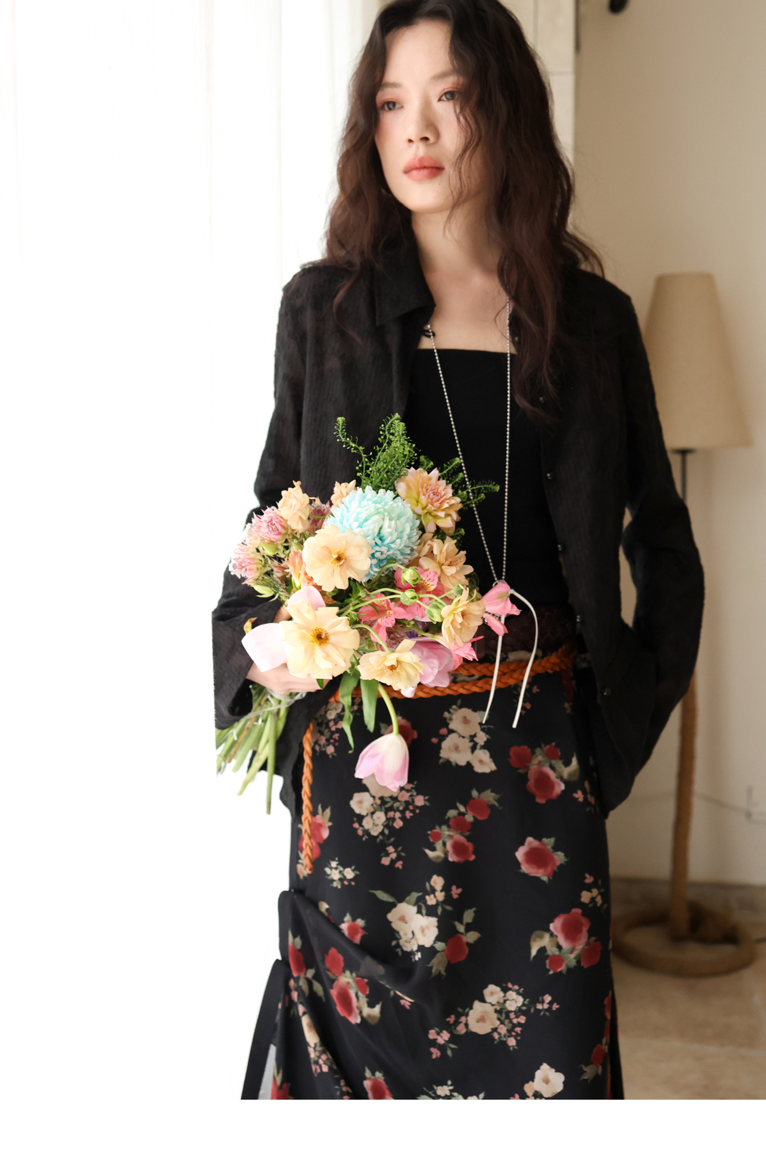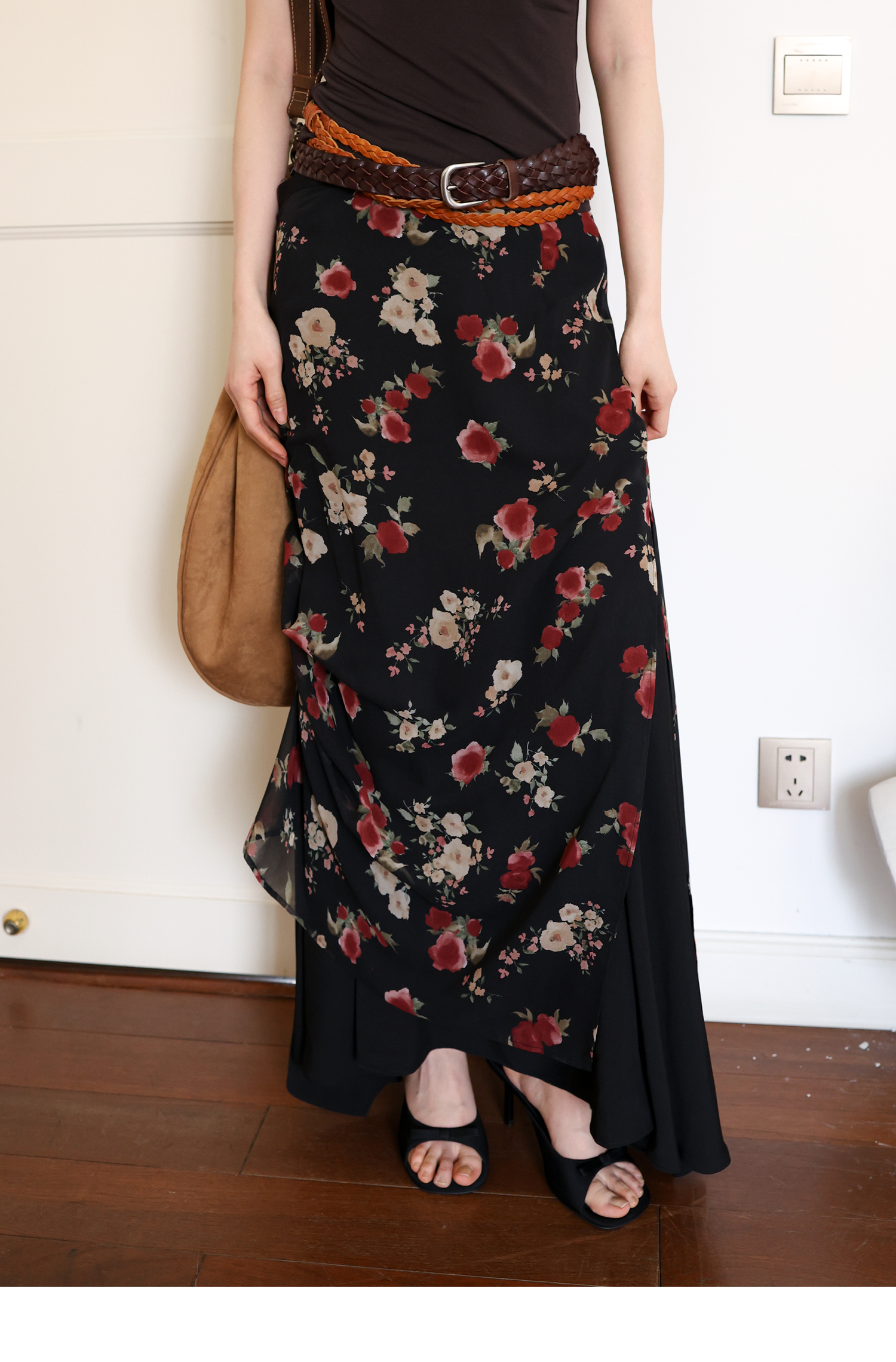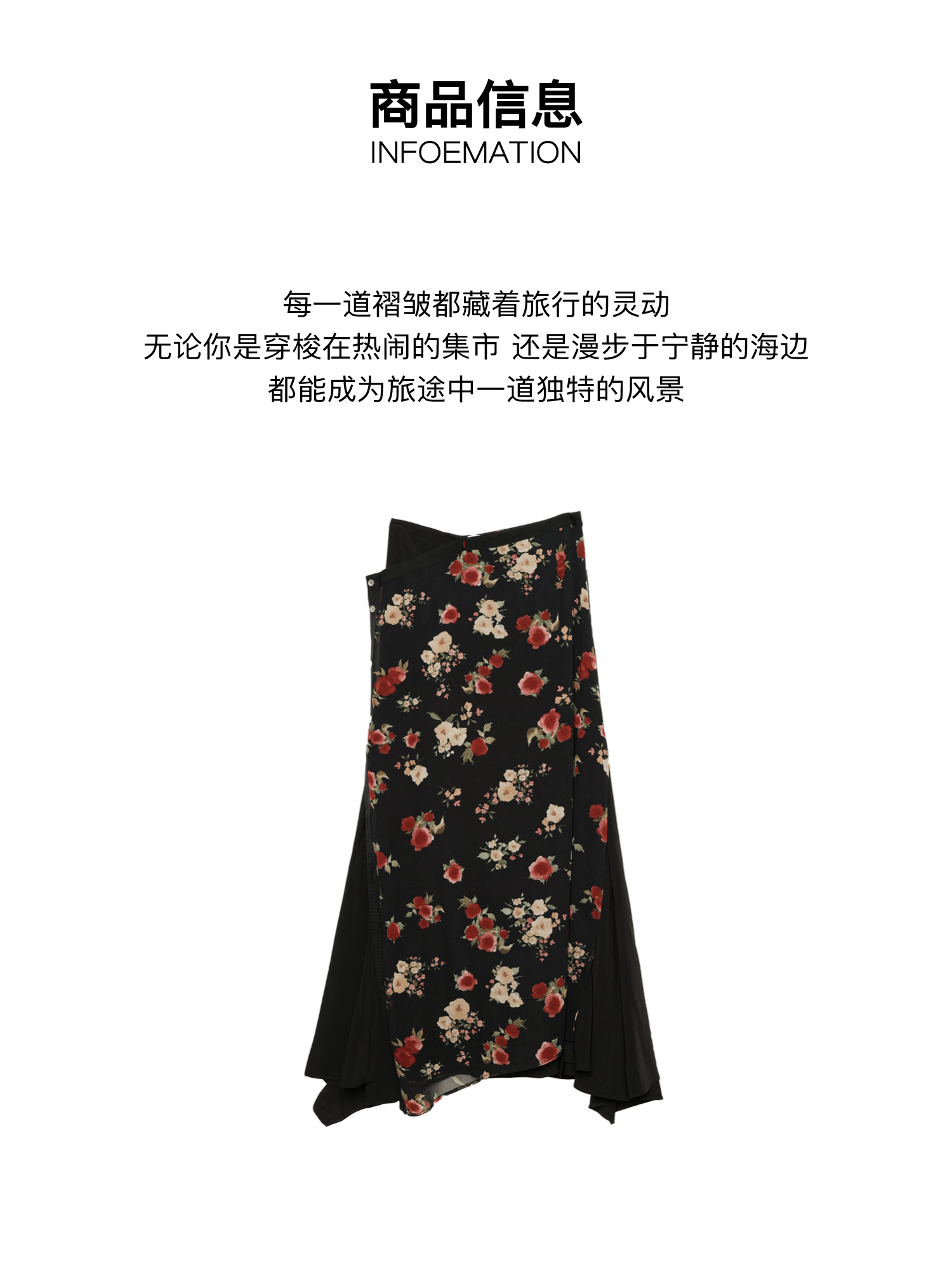 素舶 透气雪纺轻盈垂感玫瑰印花褶皱大裙摆长半裙SUPERSCAPE